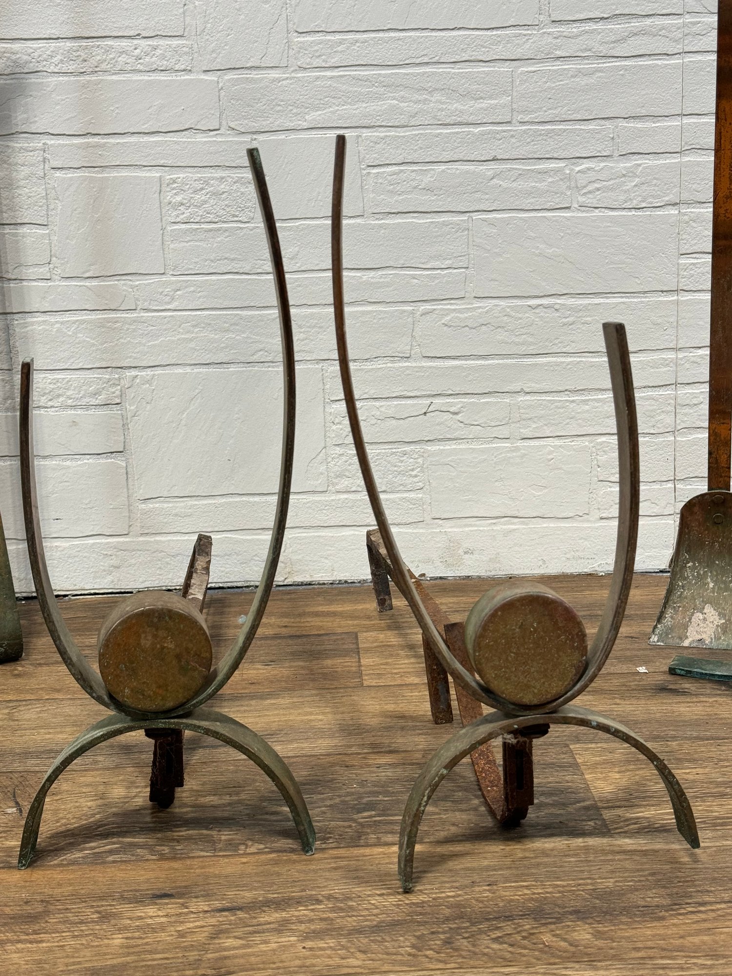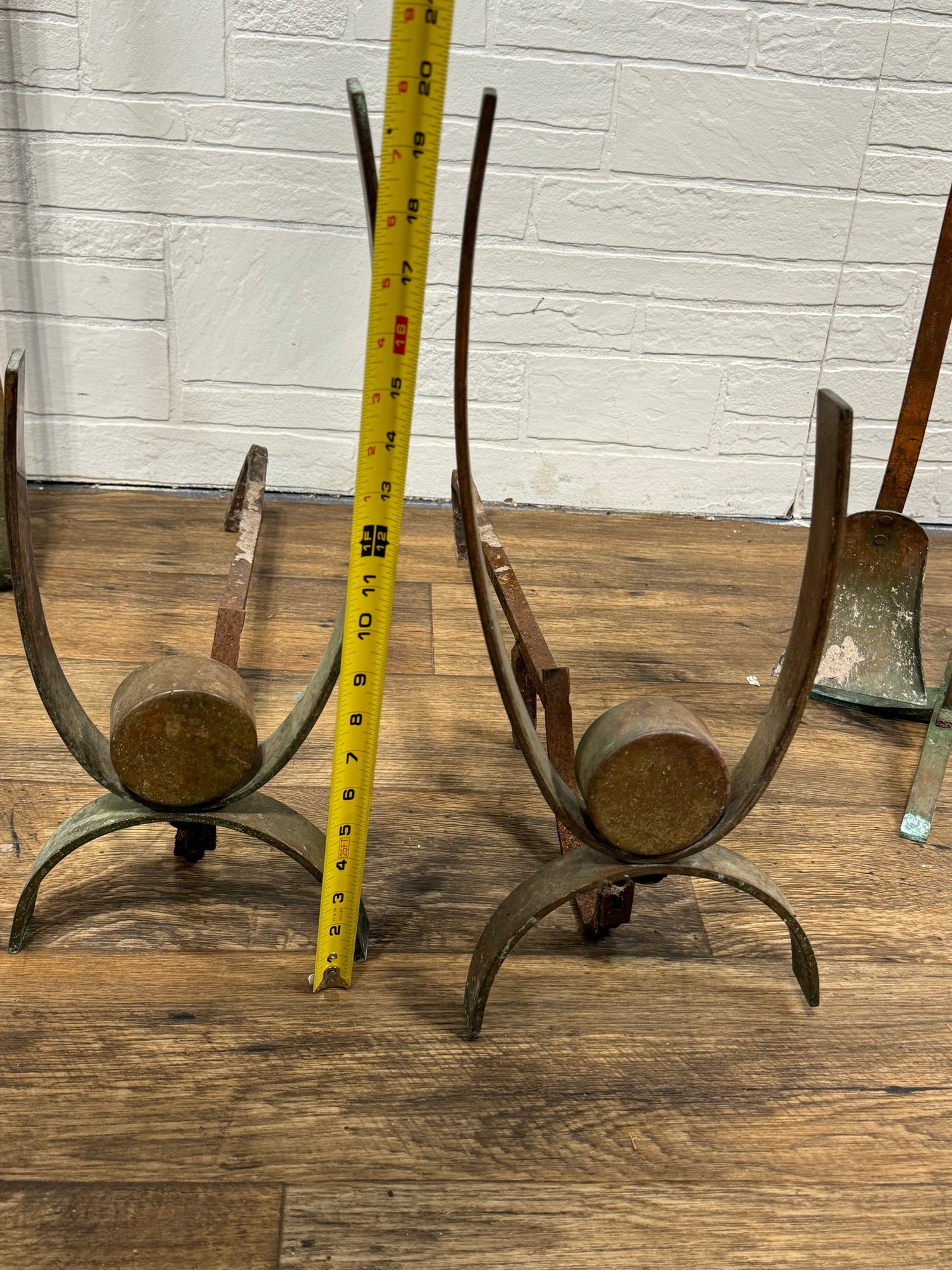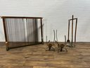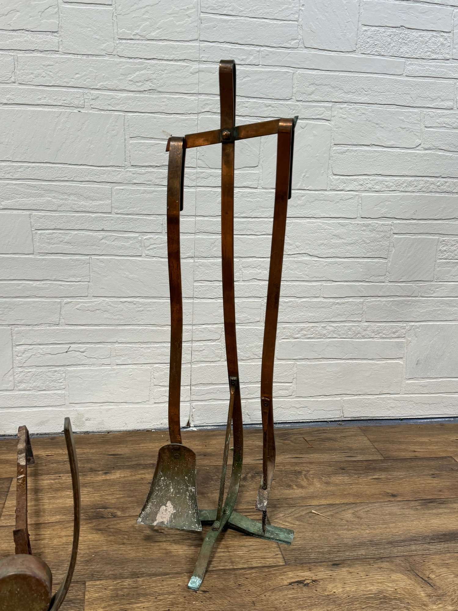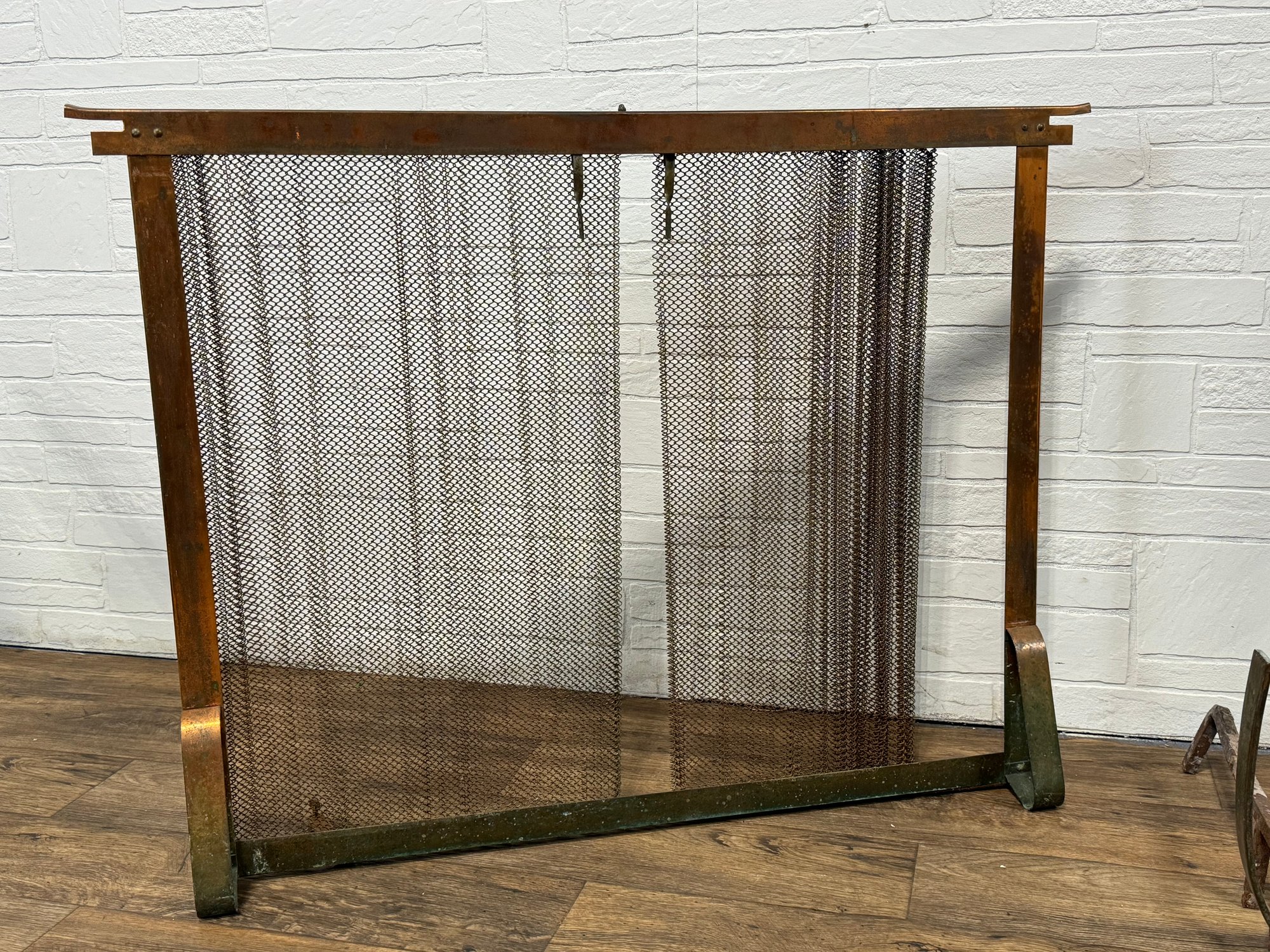 Mid Century Copper Fireplace Tool Andiron Screen Set