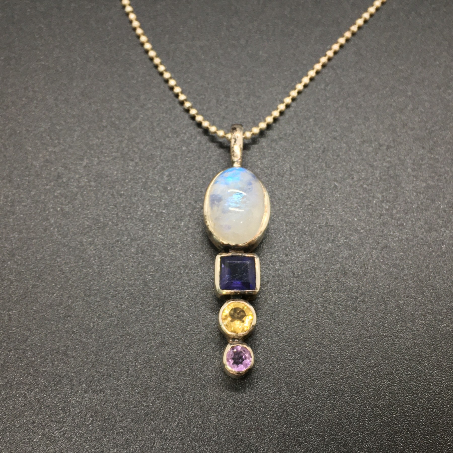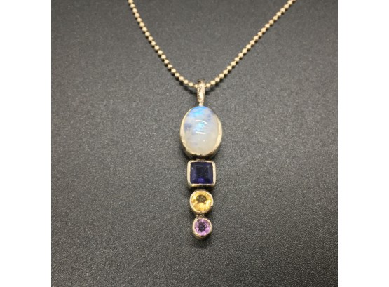 Moonstone And Multi Stone Pendent On Chain Sterling Silver