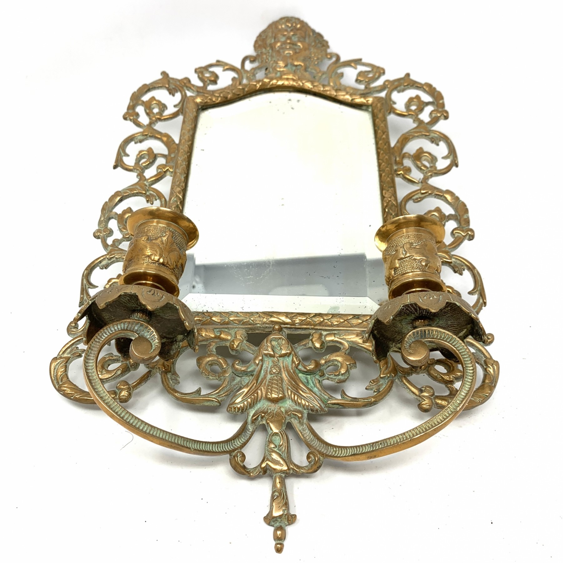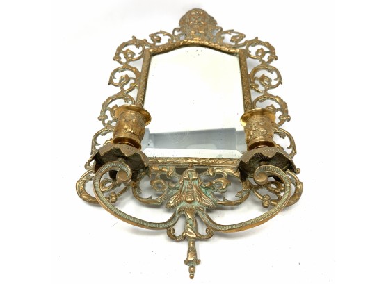 Ornate Vintage Brass Mirror Sconce