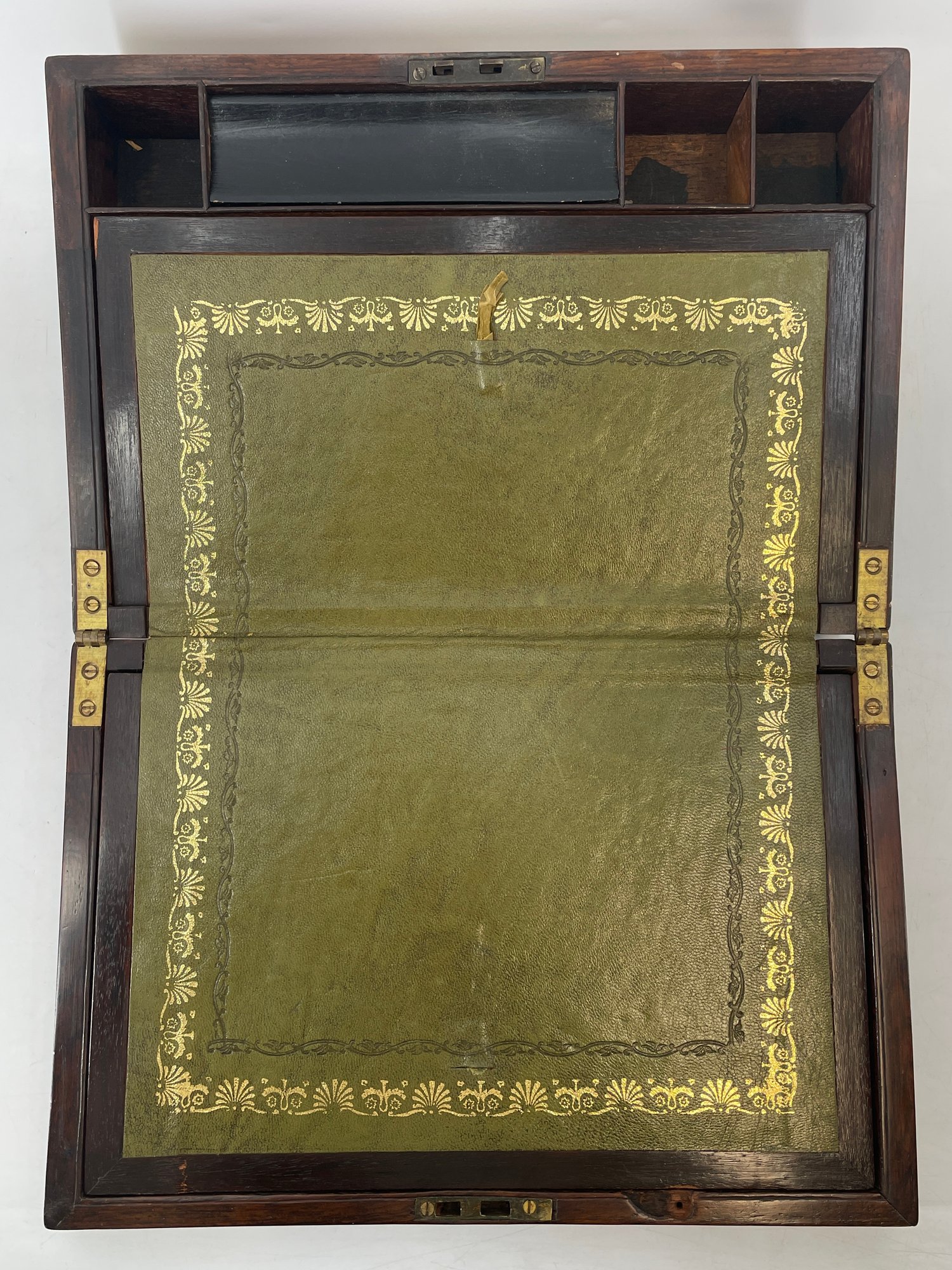 Regency Rosewood Writing Slope Box With Intricate Brass Inlay