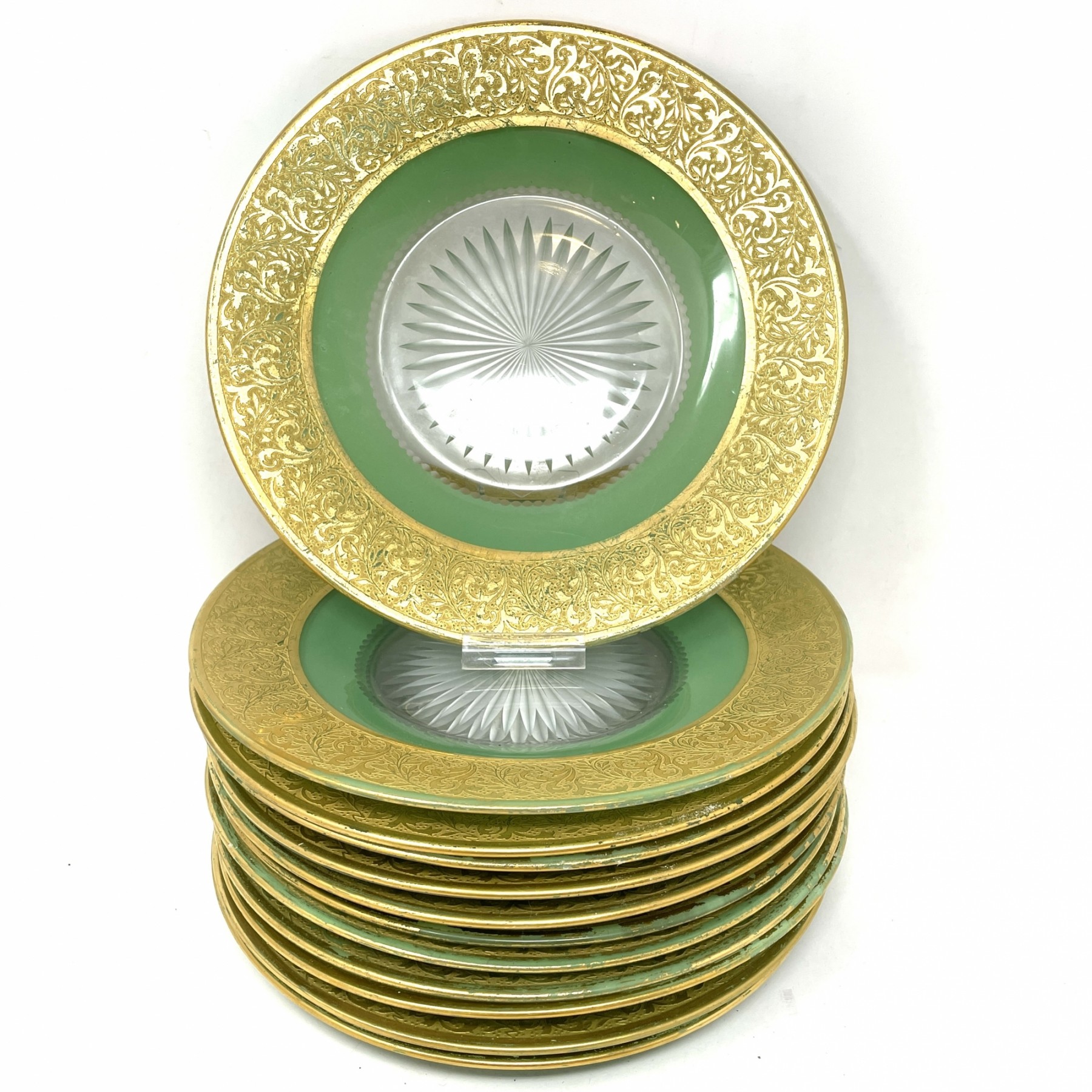 Set Of 12 Luncheon Plates With Gold Trim