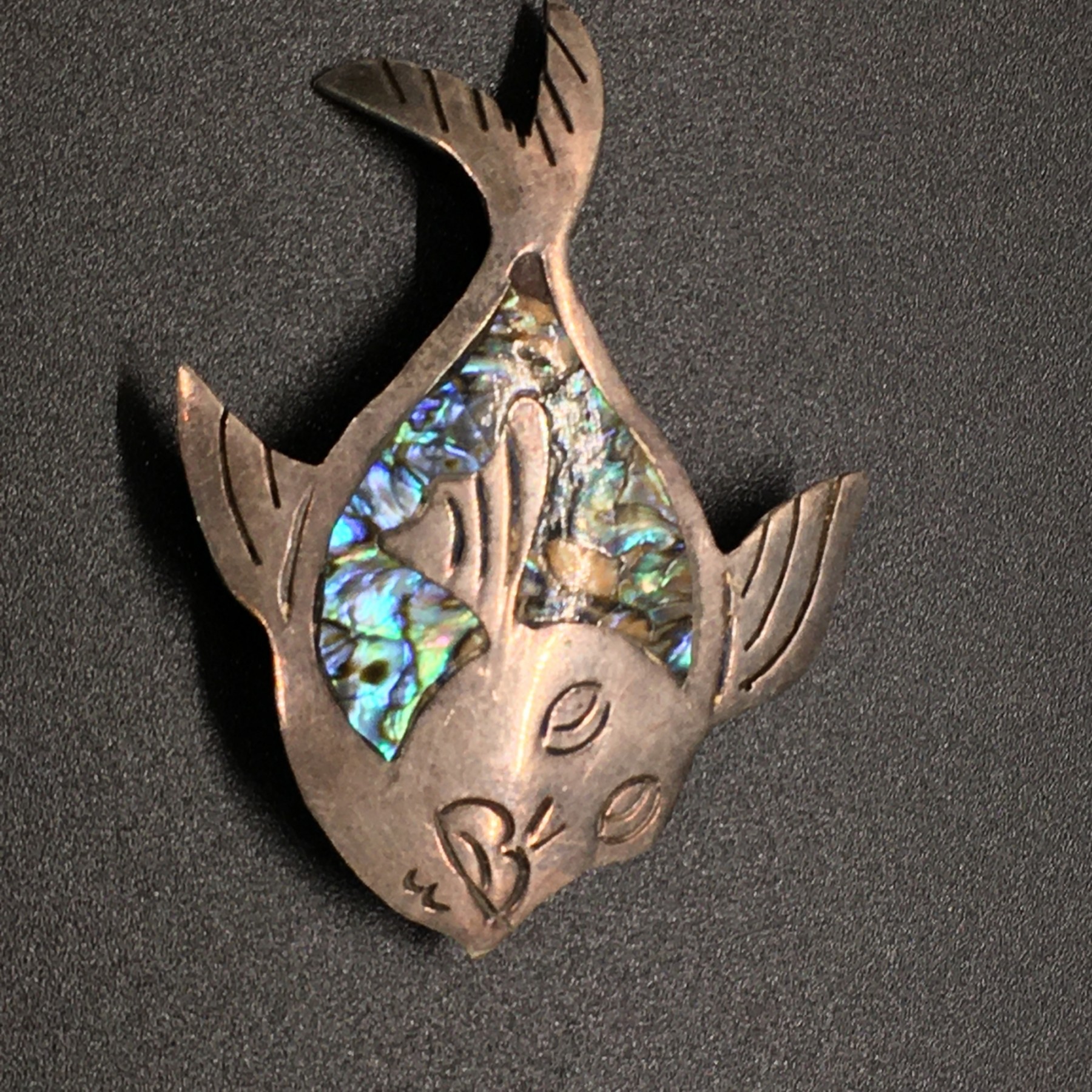 Sterling Silver Abalone Fish Brooch Pin