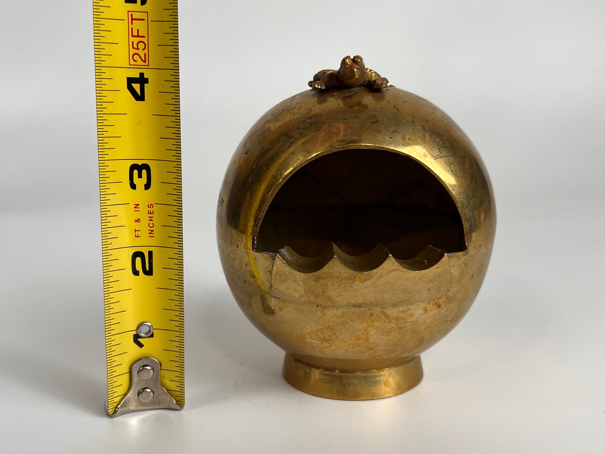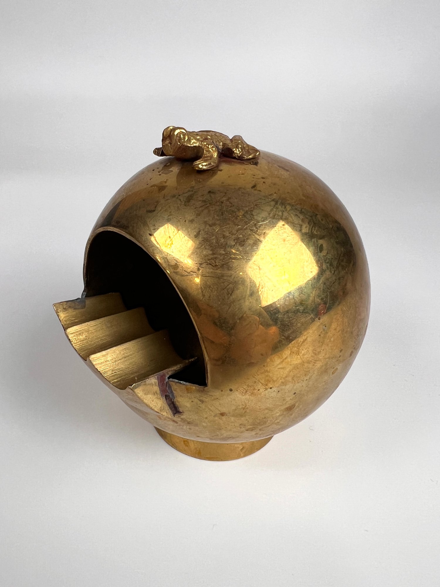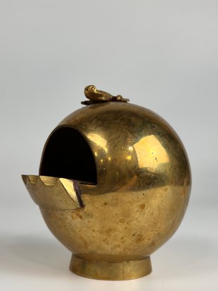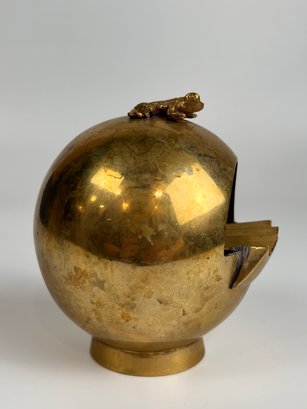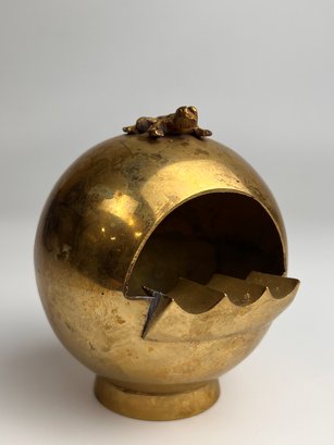 Vintage Brass Spherical Ashtray With Frog