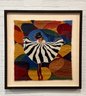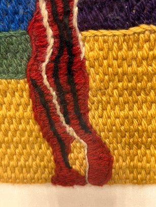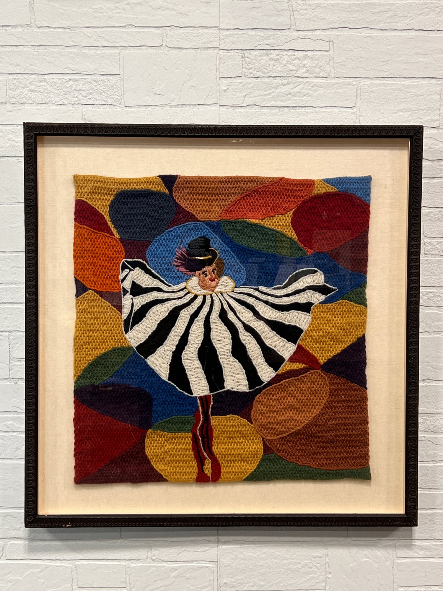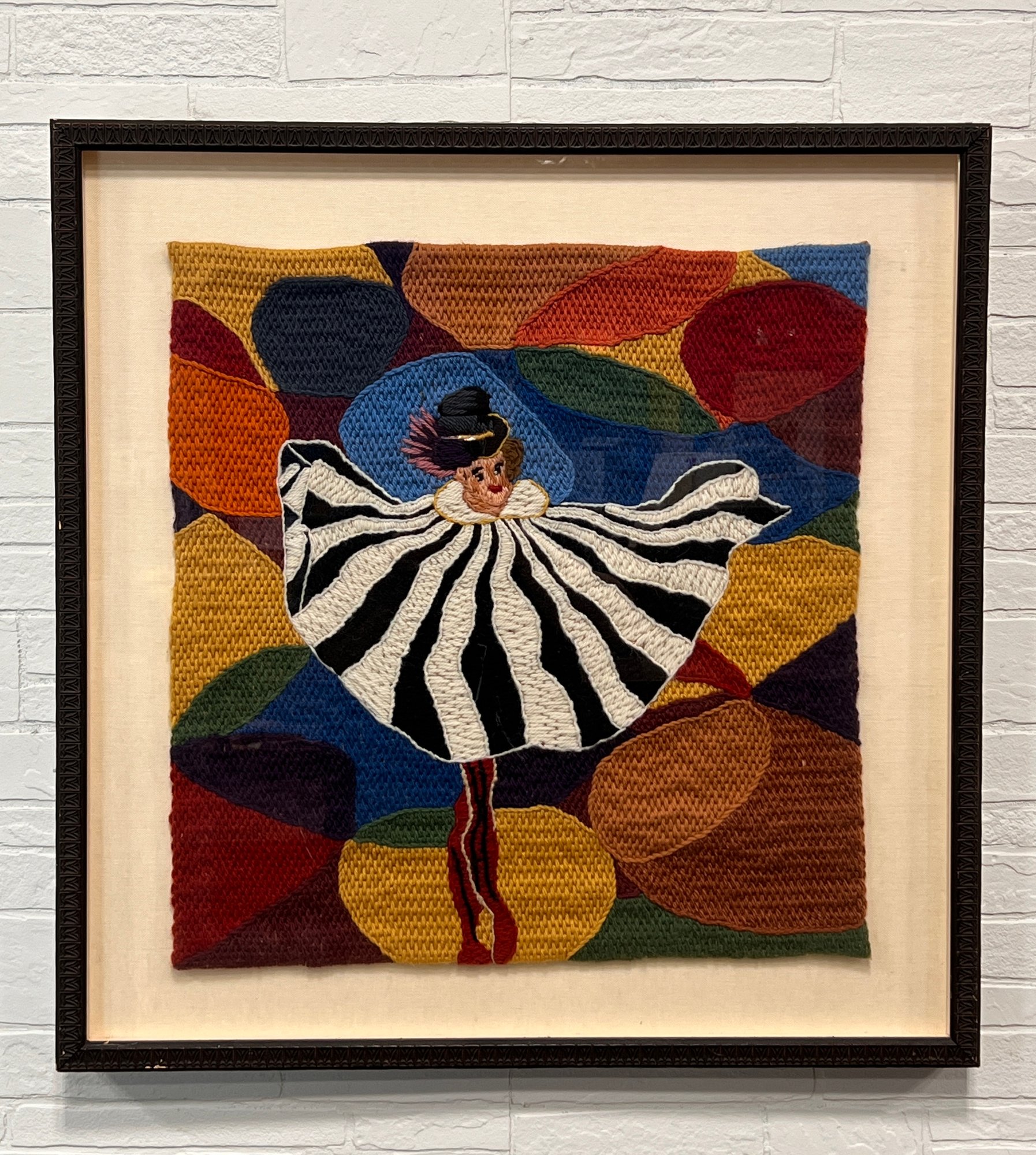 Vintage Framed Fiber Art Dancing Girl With Striped Cape - Large