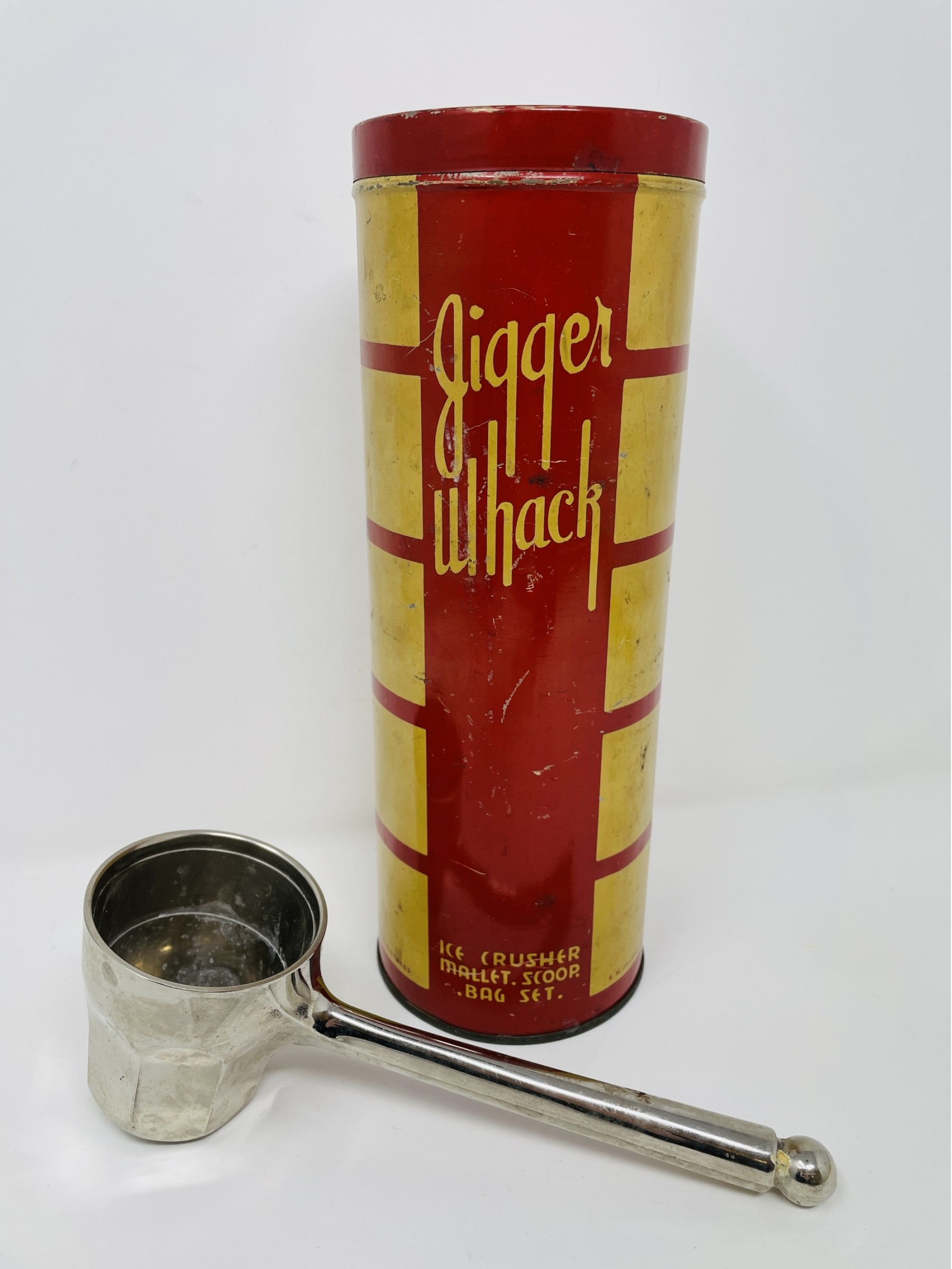 Vintage Liquor Bar Jigger Whack Ice Crusher In Tin Can