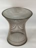 Discoloration to chrome present, glass top does have heavy scratches and a few chips around the rim.