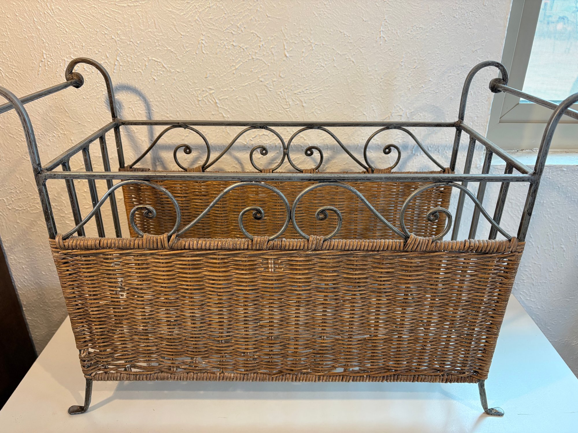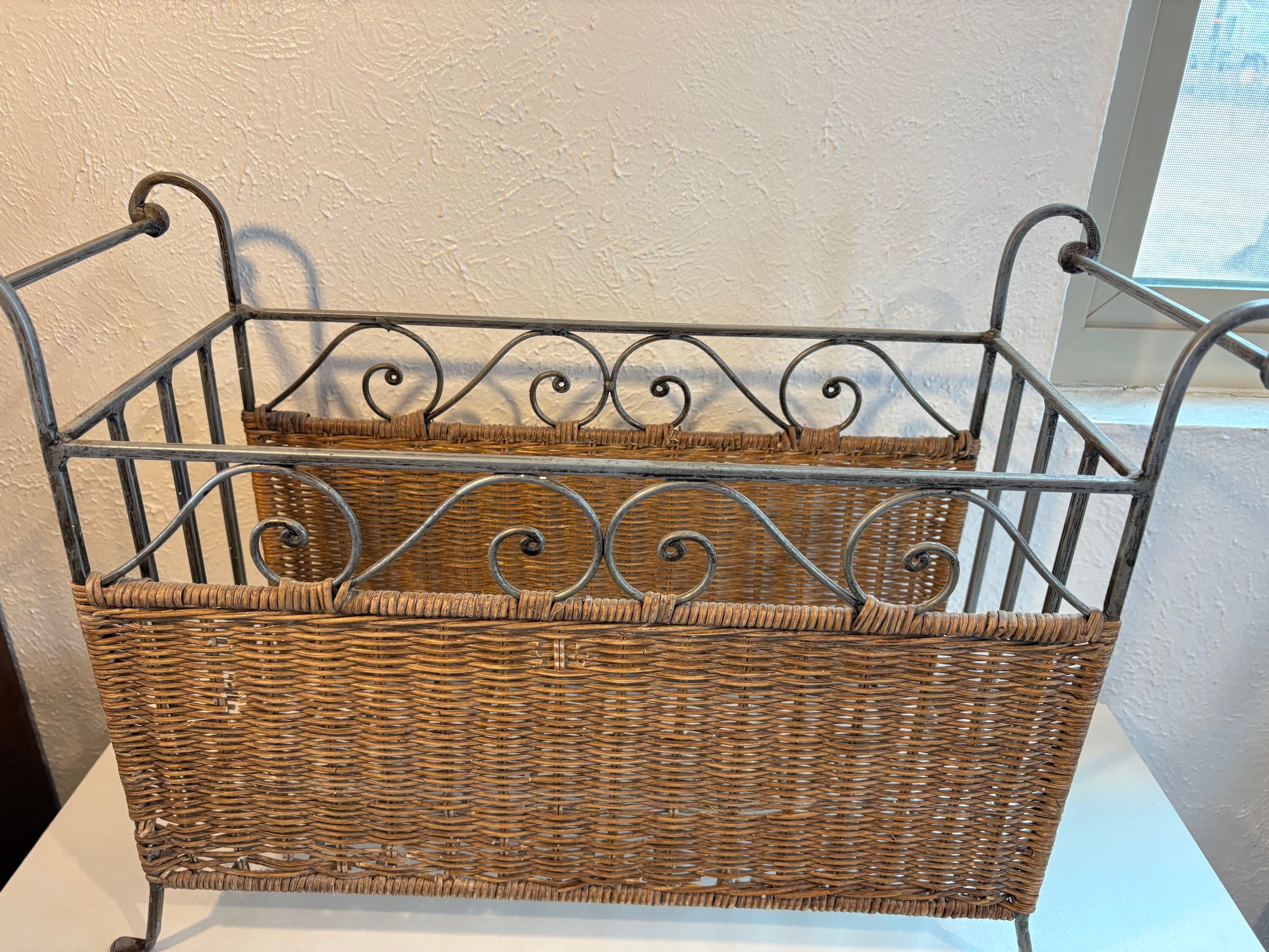 H25 Wicker Metal Magazine Rack 9x15x22