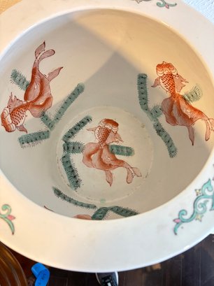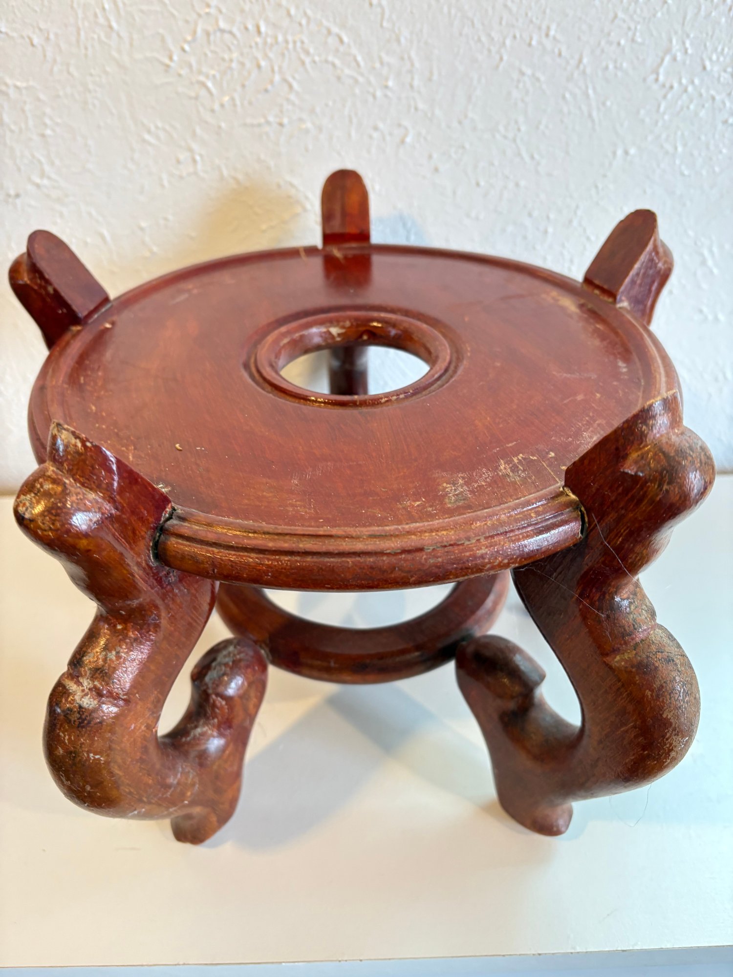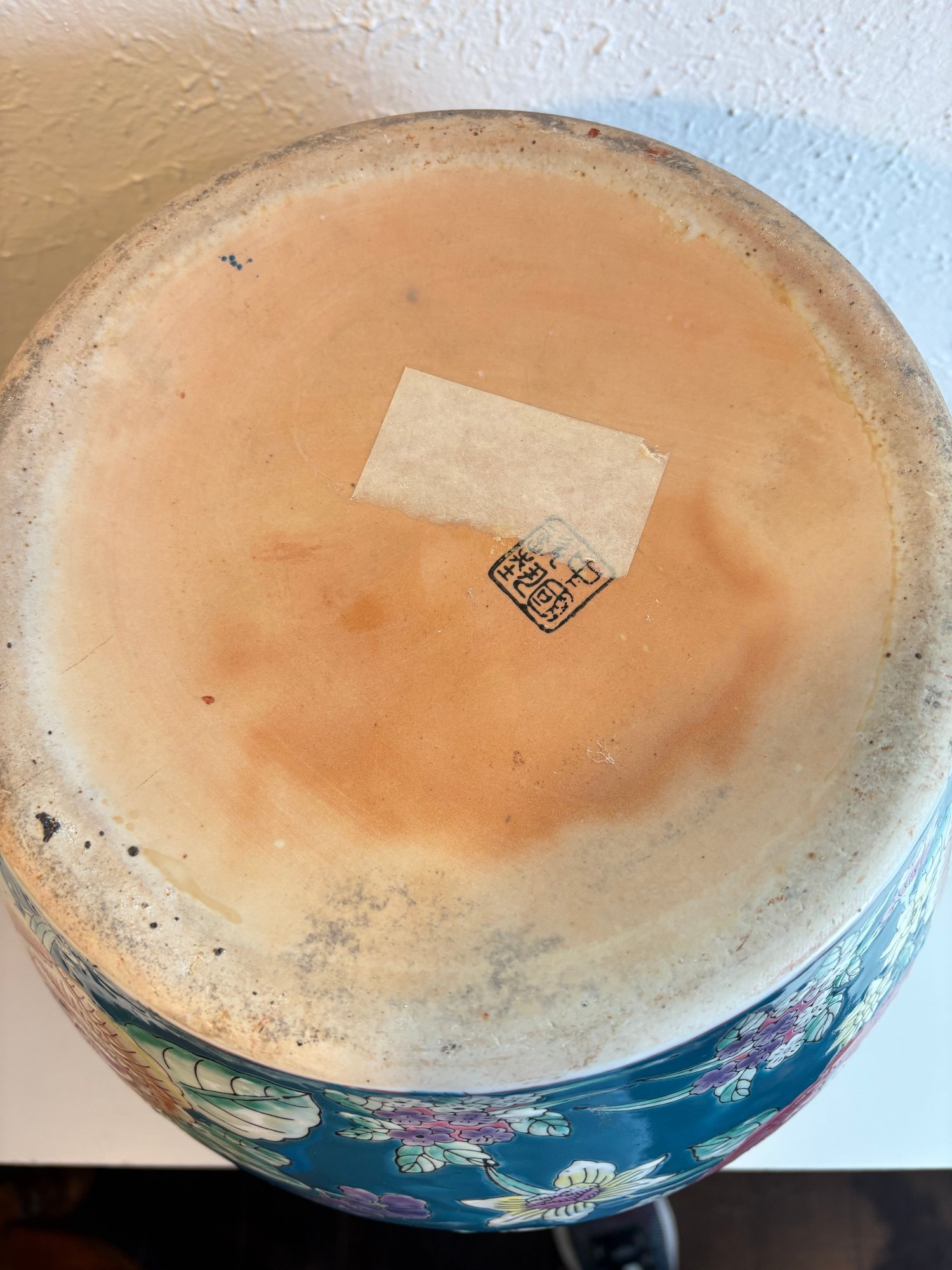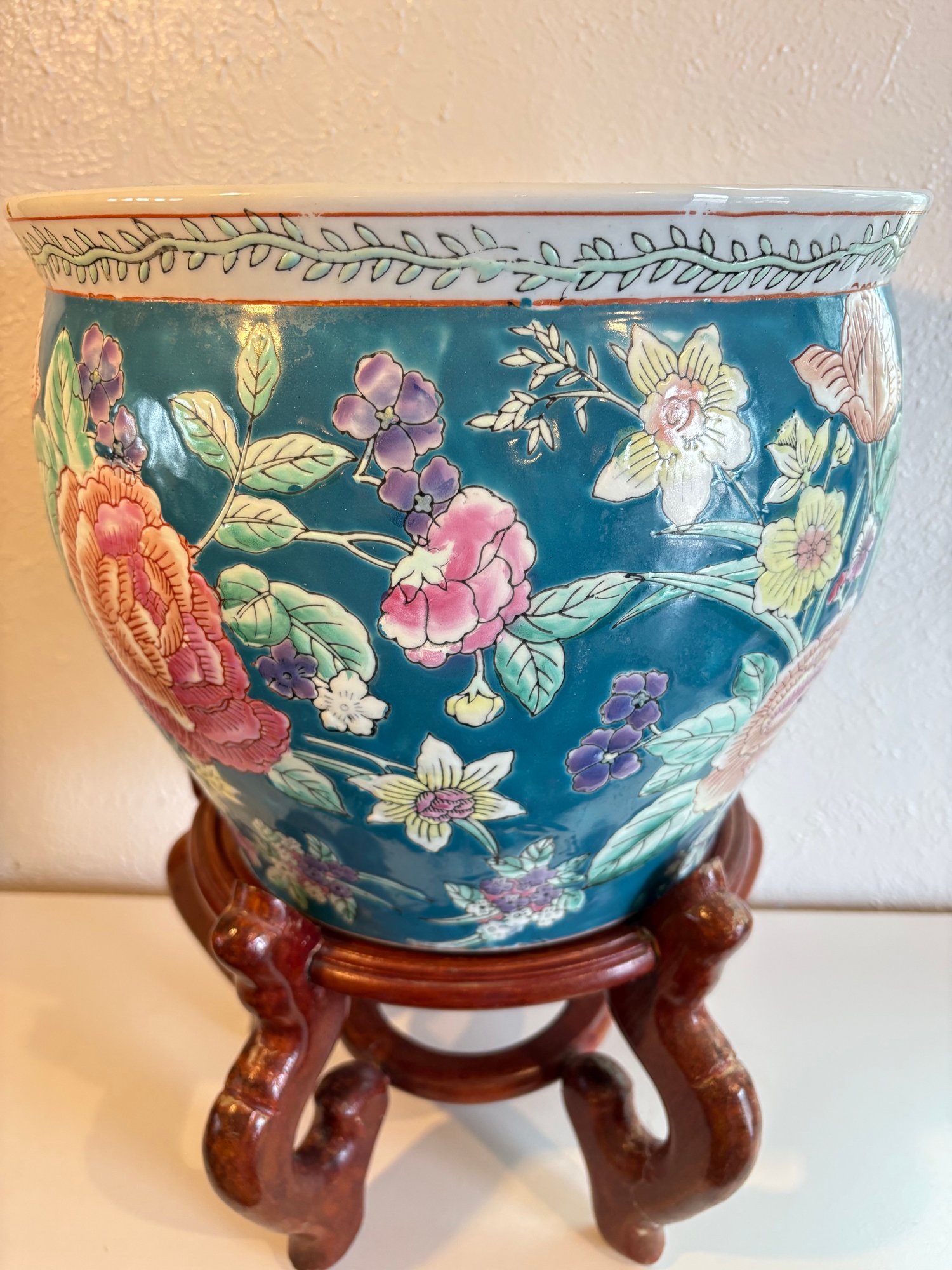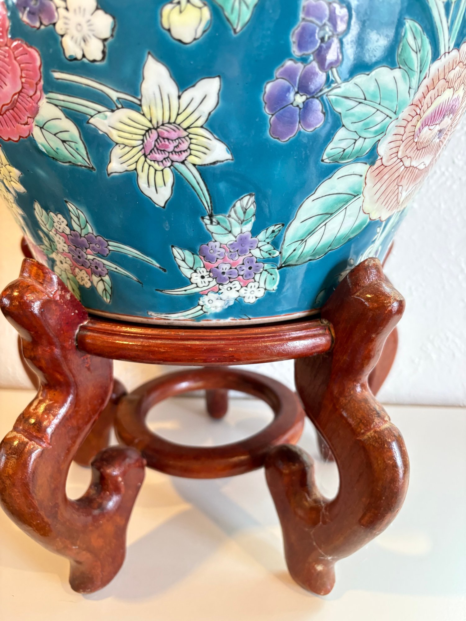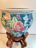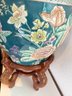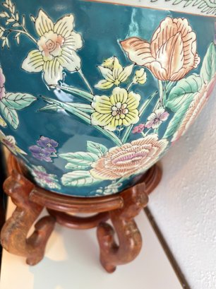H7 Asian Theme Style Ceramic Vase With Wooden Pedestal 17" Tall Vase 10x12'