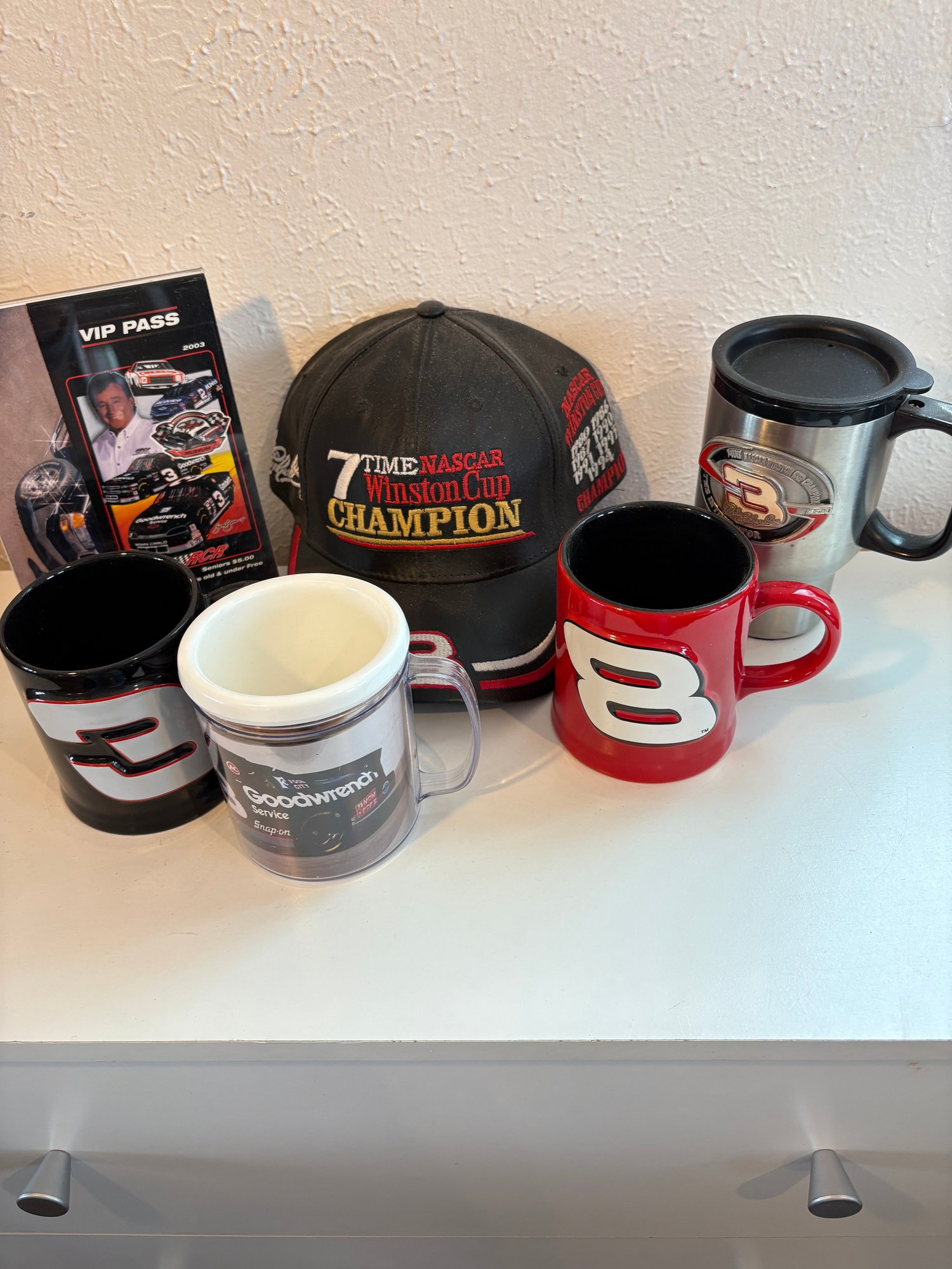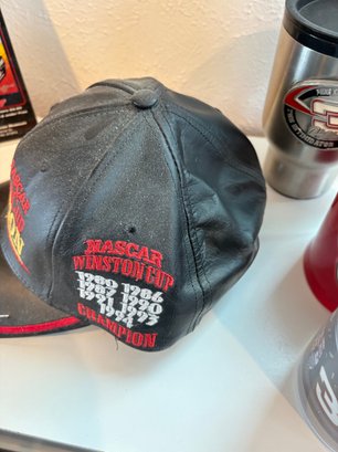 H76 Lot Of Cups/nascar Black Leather Hat