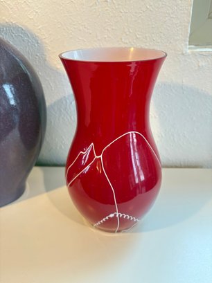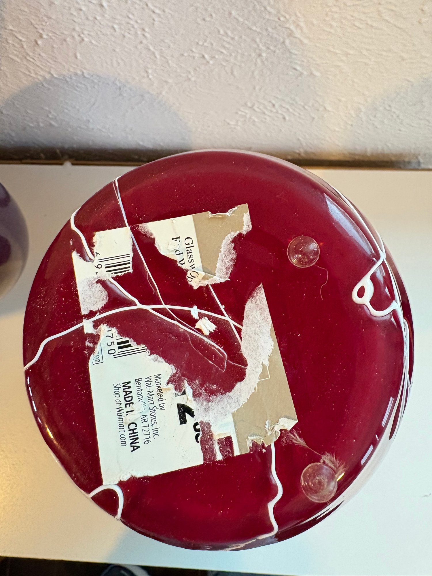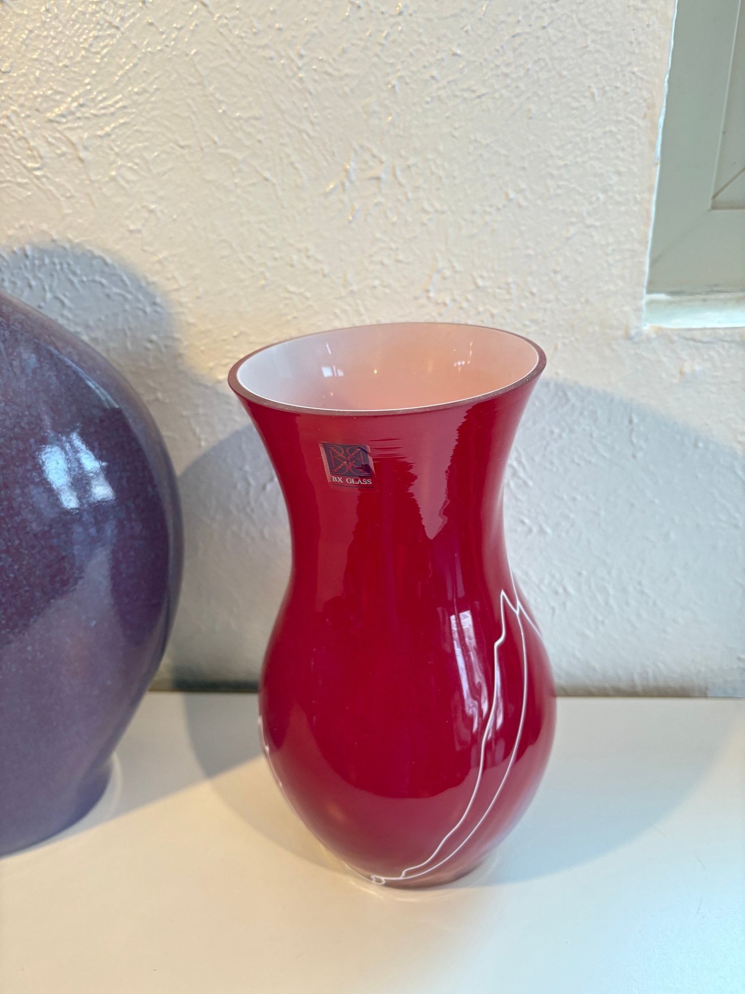 H8 Purple Vase 14x12x2, Red Glass Vase BX Vase 9x6"