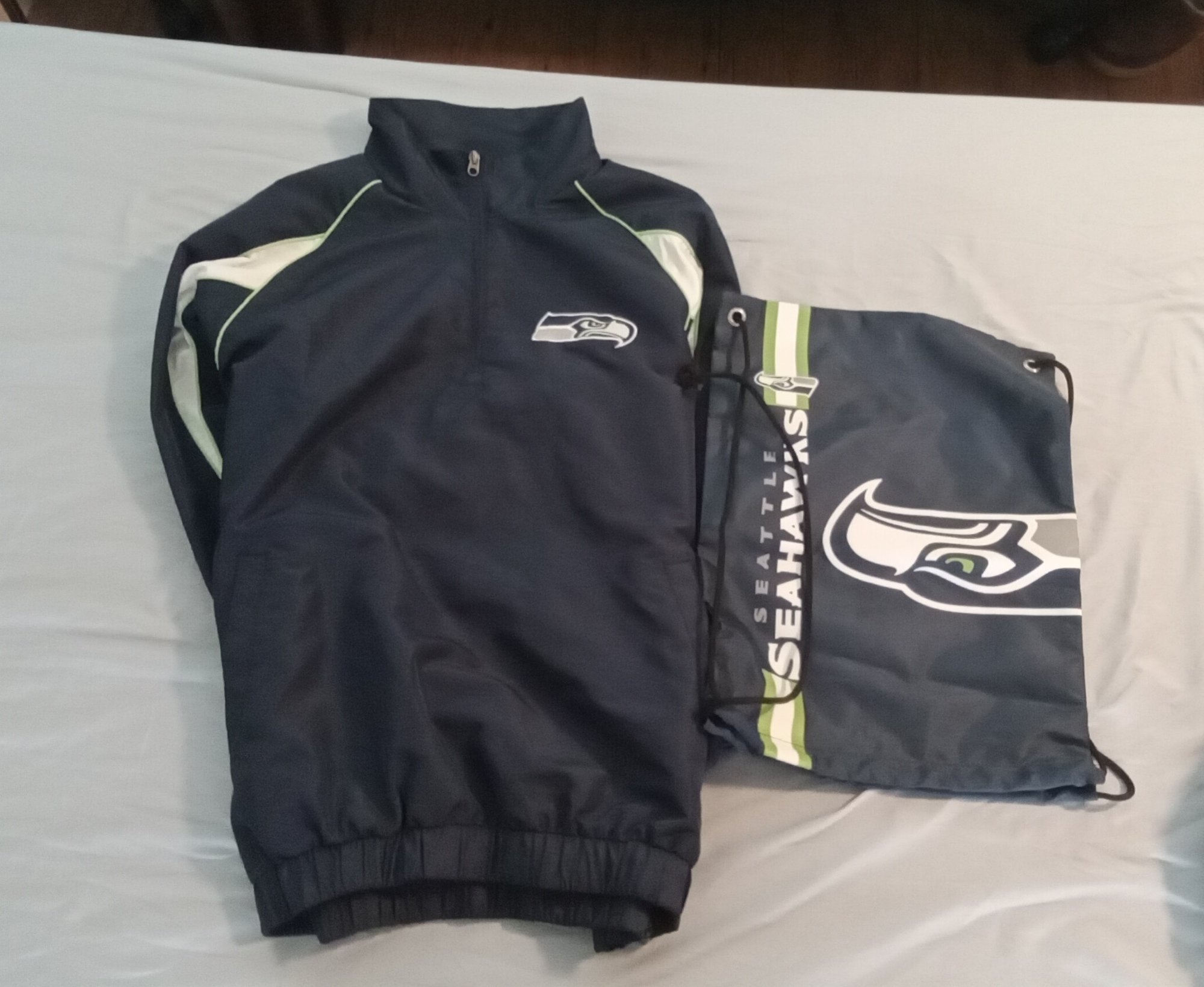 All Seahawks Items in all lots are in GREAT condition. Photo shows size.