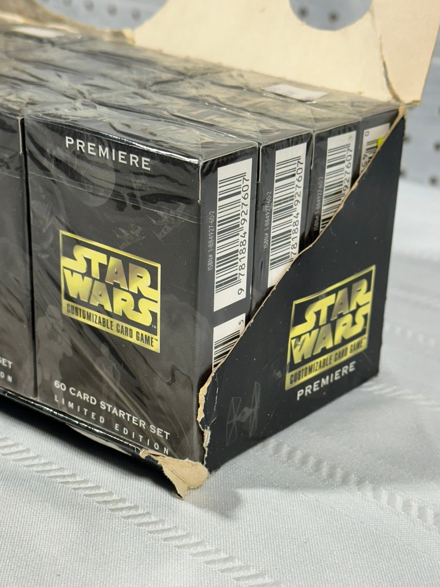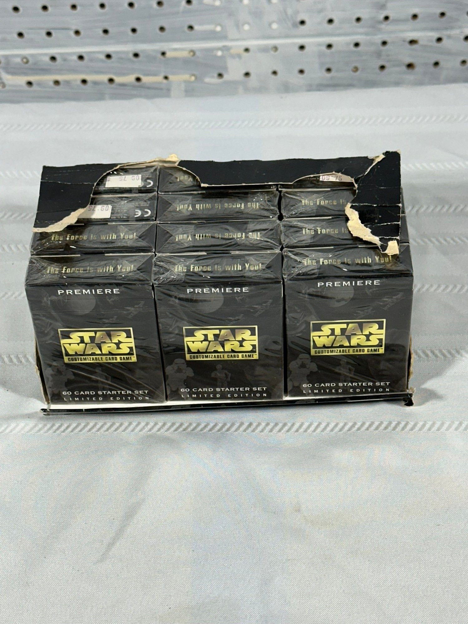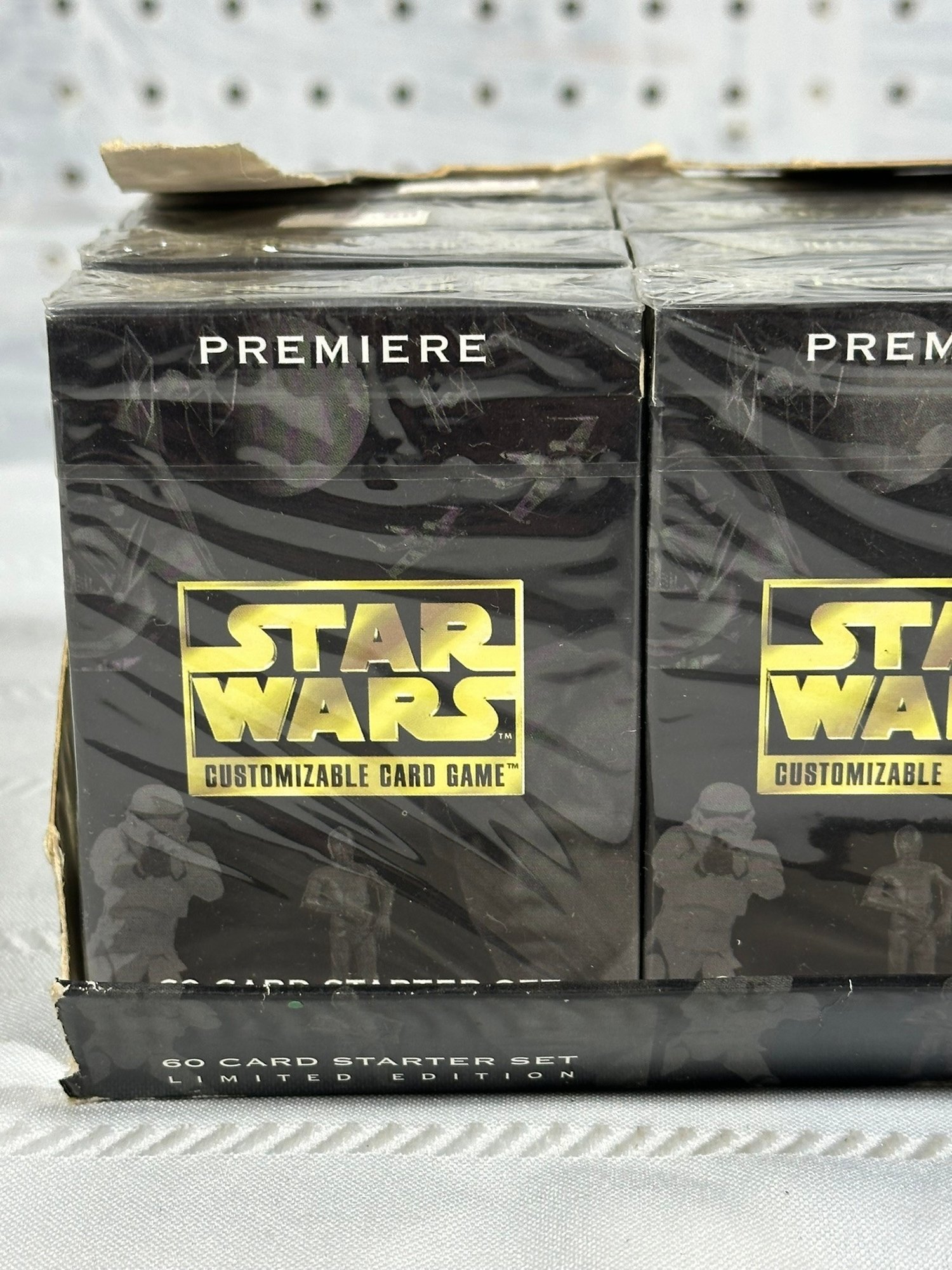 Lot of 12 sealed 60 card starter sets for Star Wars Customizable Card Game Premiere with opened store display box