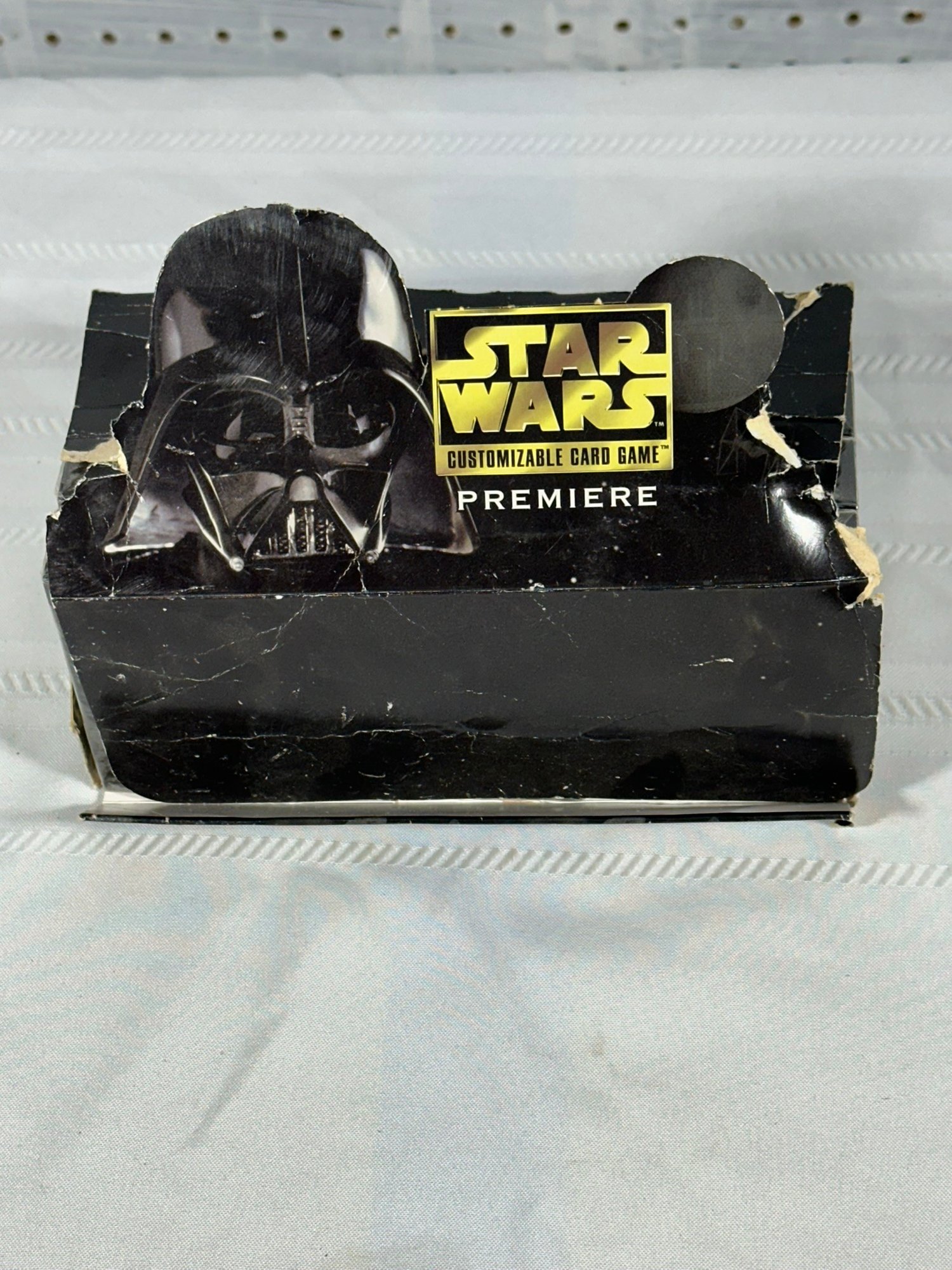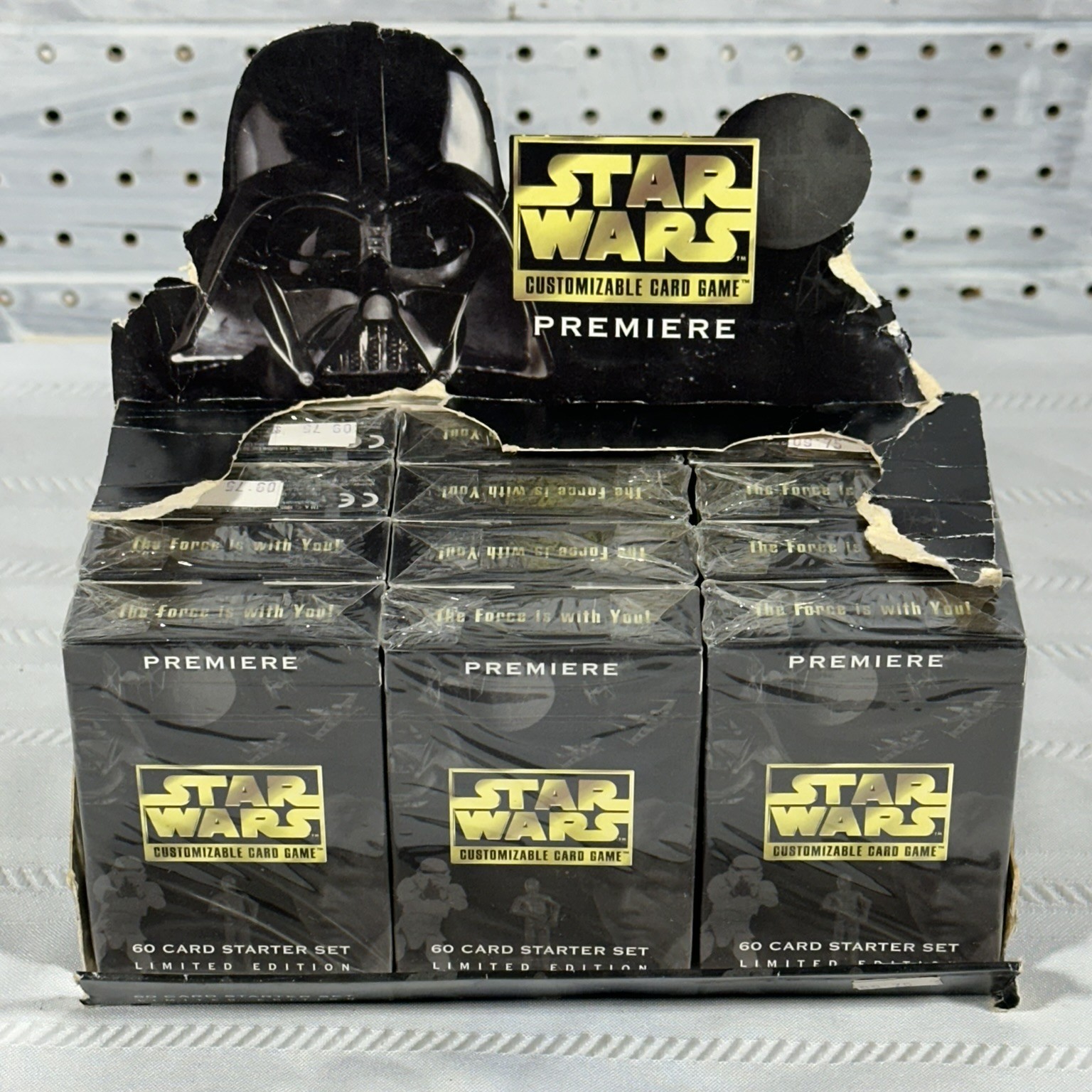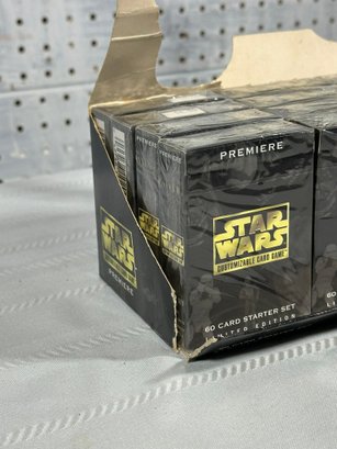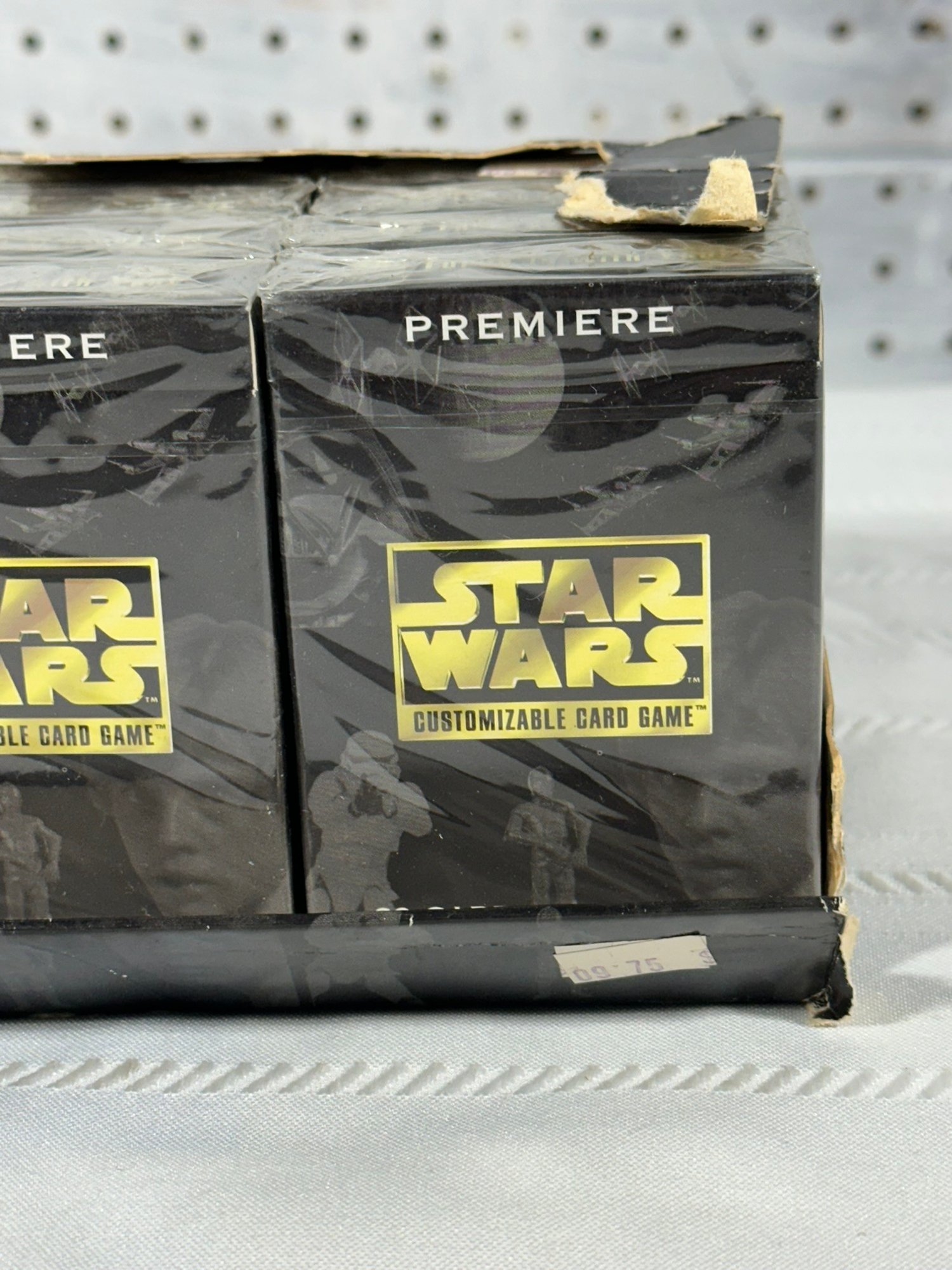 Lot of 12 sealed 60 card starter sets for Star Wars Customizable Card Game Premiere with opened store display box