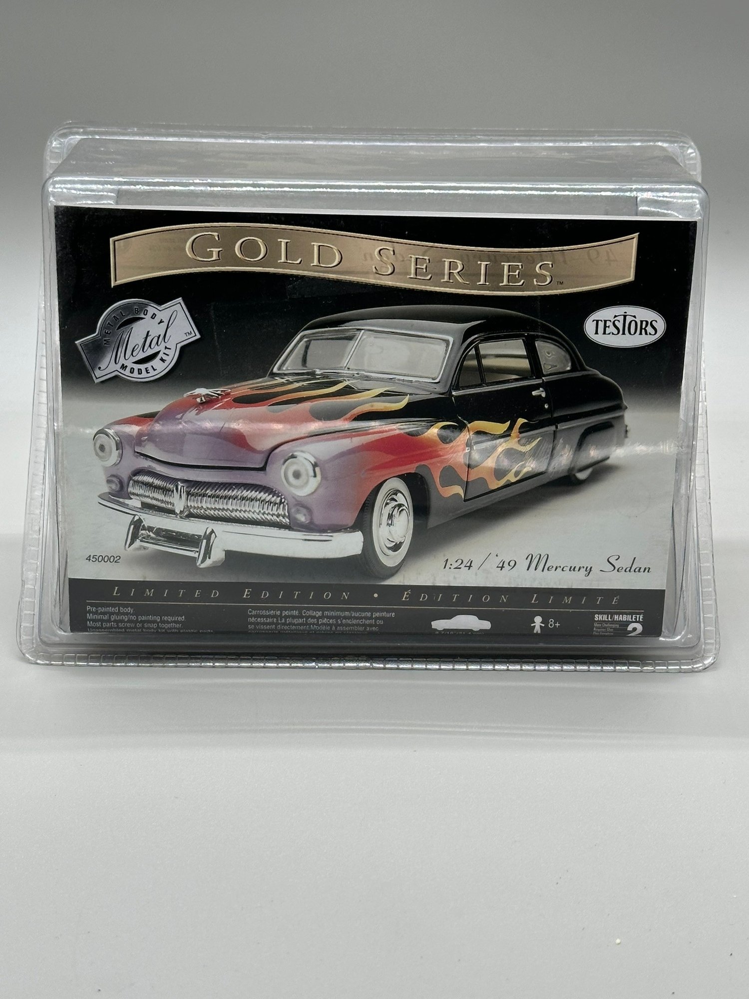 Pair of Testors Gold Series Limited Edition 1:24 scale Flaming '49 Mercury Sedan model car kit including 1 black & 1 red
