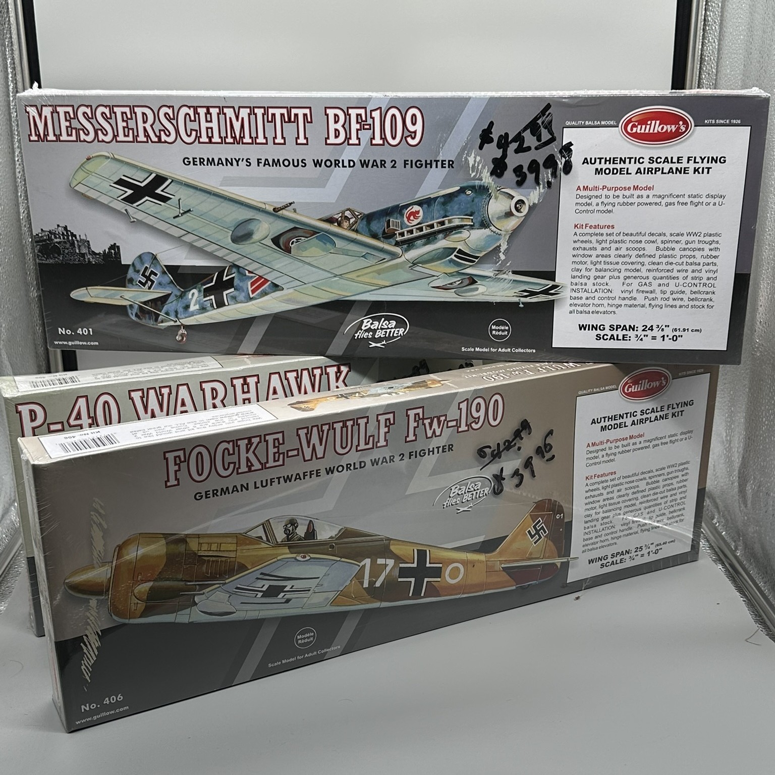 3 Sealed, new in box, Guillow's Authentic Scale Flying Model Airplane Kits including: