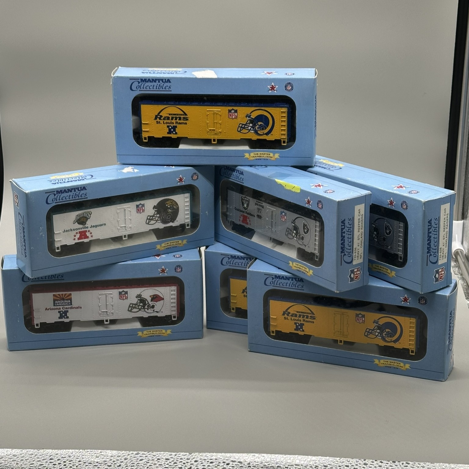 7 New in box NFL Superbowl Express Collector Series Model Trains from Mantua Collectibles including: