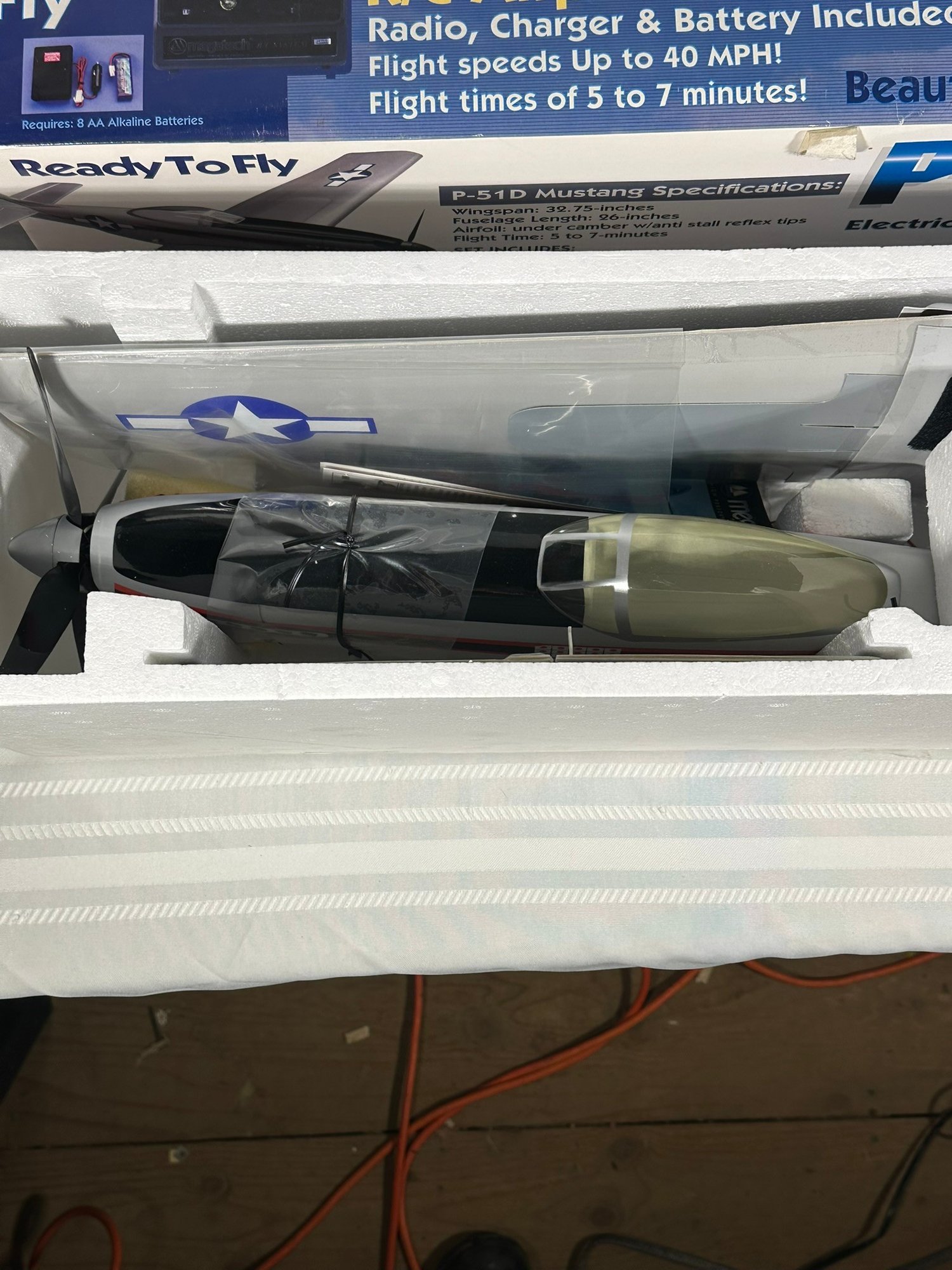 New in box Ready to Fly P-51D Mustang Electric Power R/C Airplane with radio, charger, and battery included