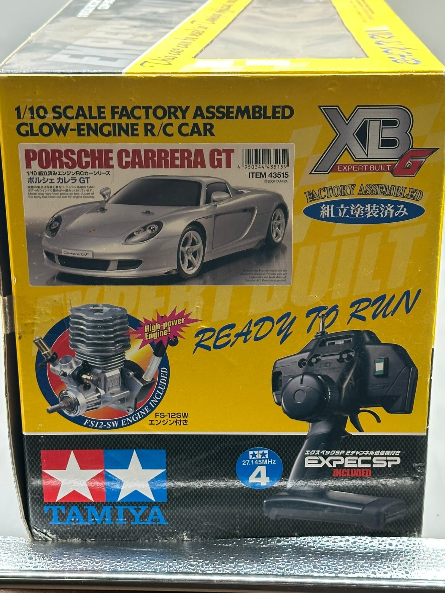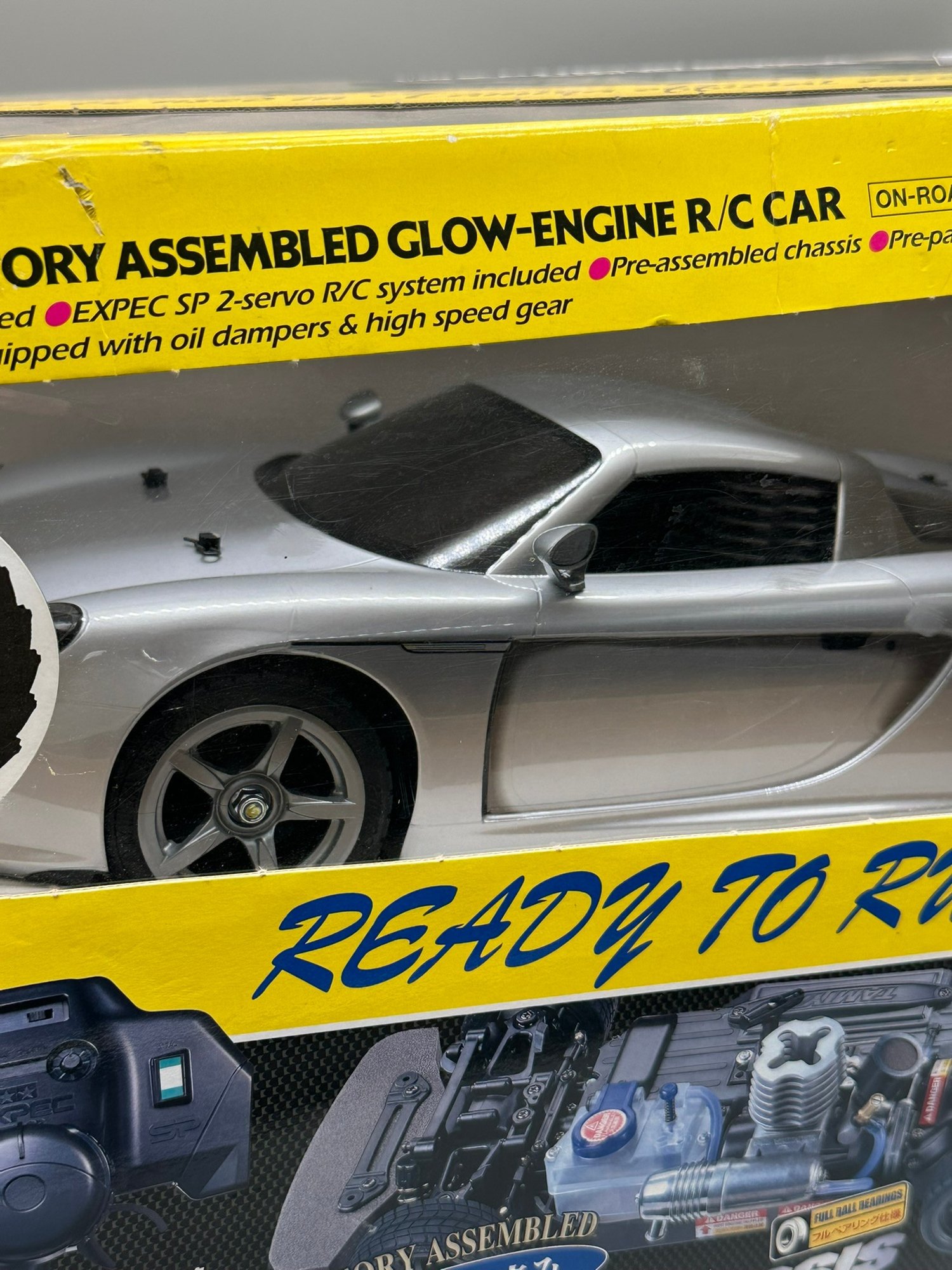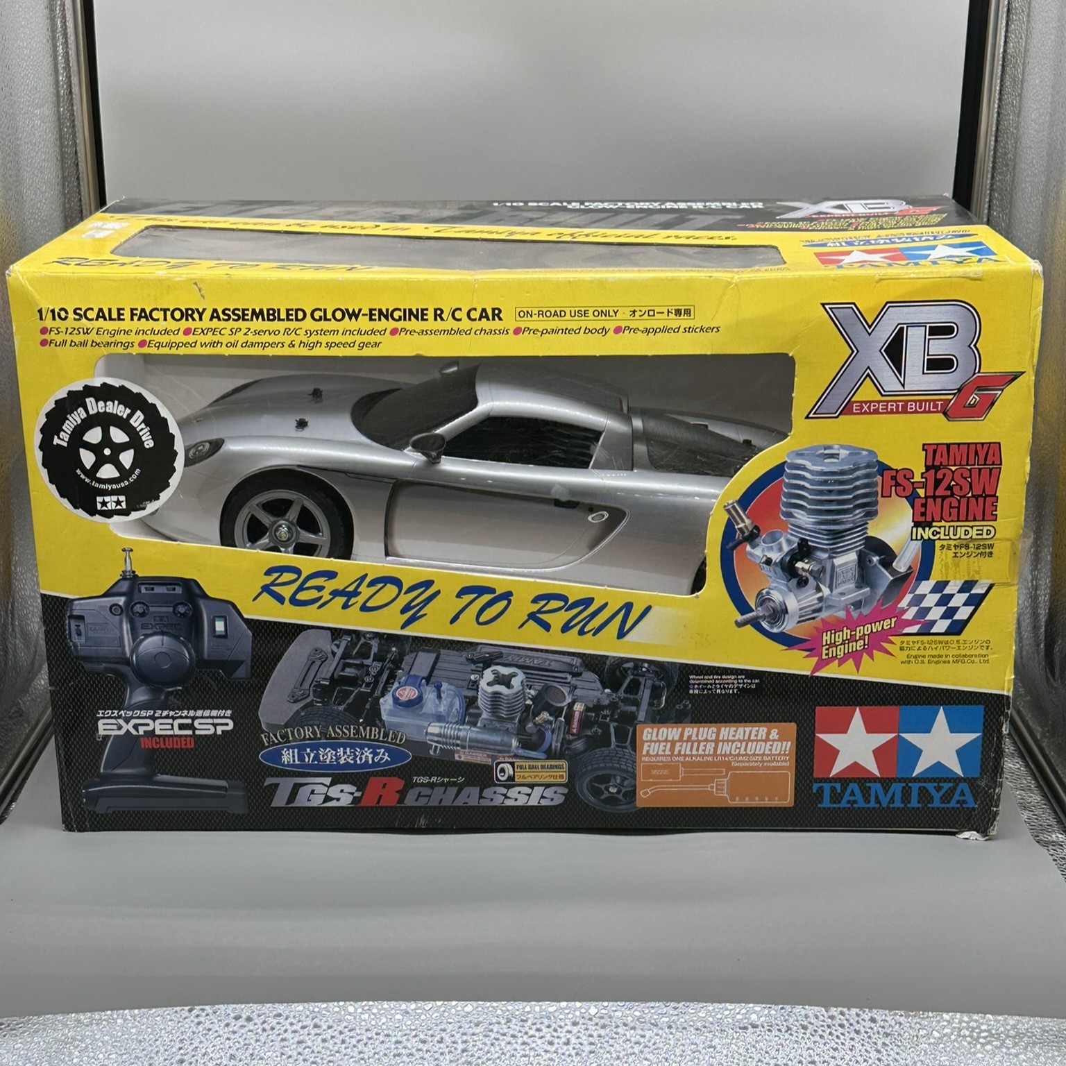 New in box ready to run 1/10 scale Porsche Carrera GT factory assembled Glow-Engine R/C car with Tamiya FS-12SW engine, factory assembled TGS-R Chassis, EXPEC SP 2-servo R/C system, and much more!