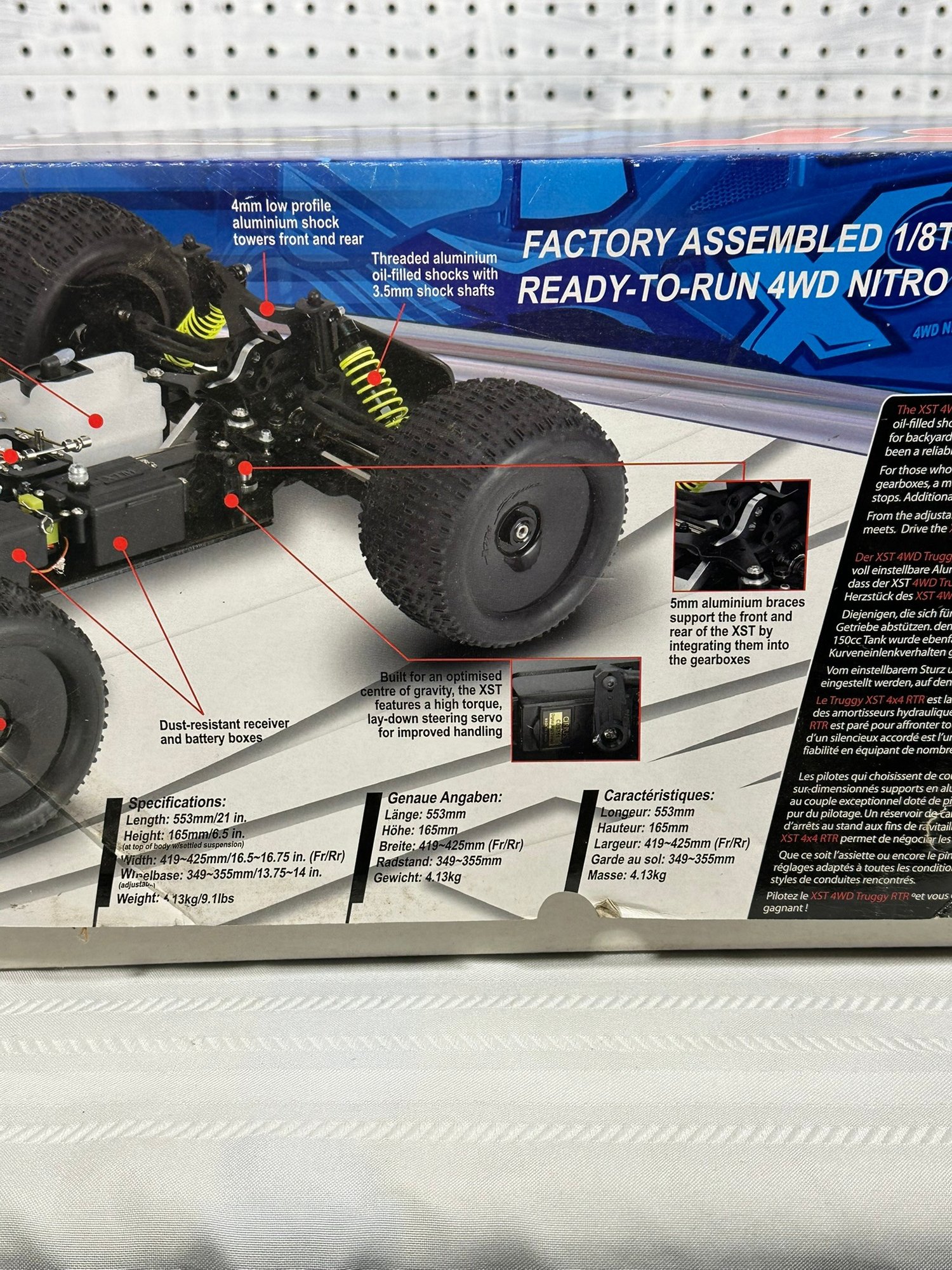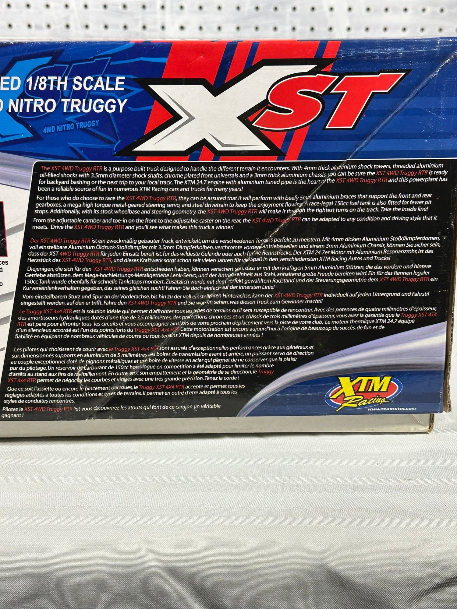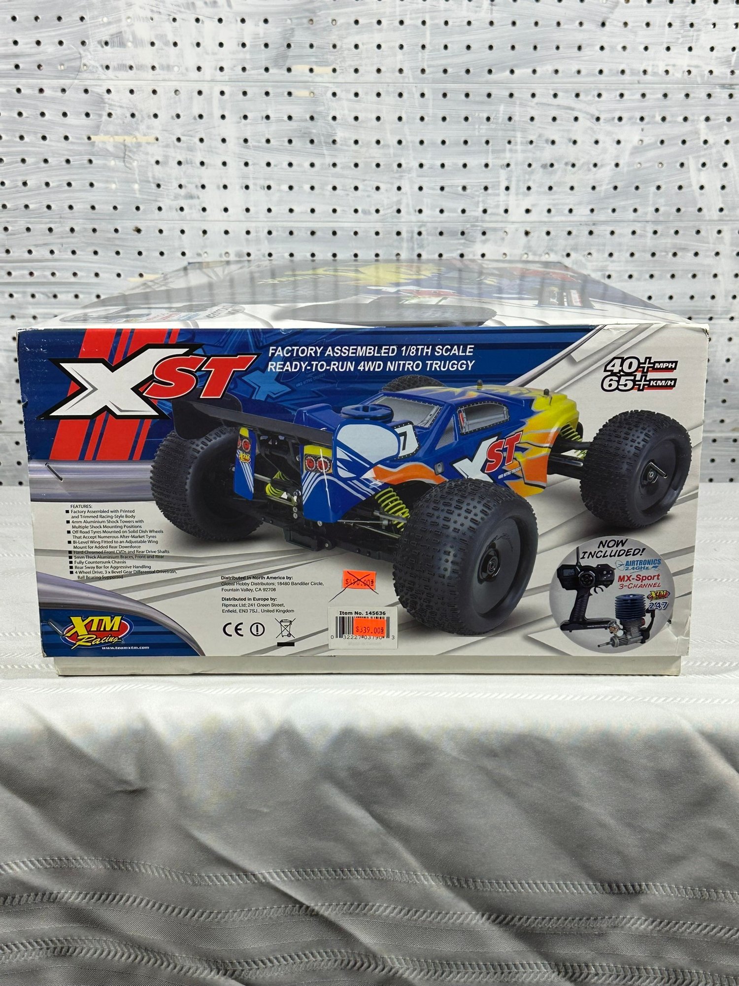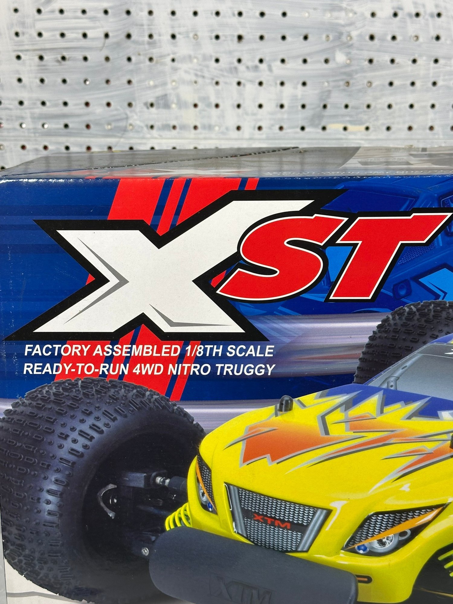 New in box XST 4WD Nitro Truggy RTR factory assembled 1/8 scale 4WD RC nitro Truggy from XTM racing with 247 XTM engine and Airtronics 2.4 GHz MX Sport 3-Channel controller
