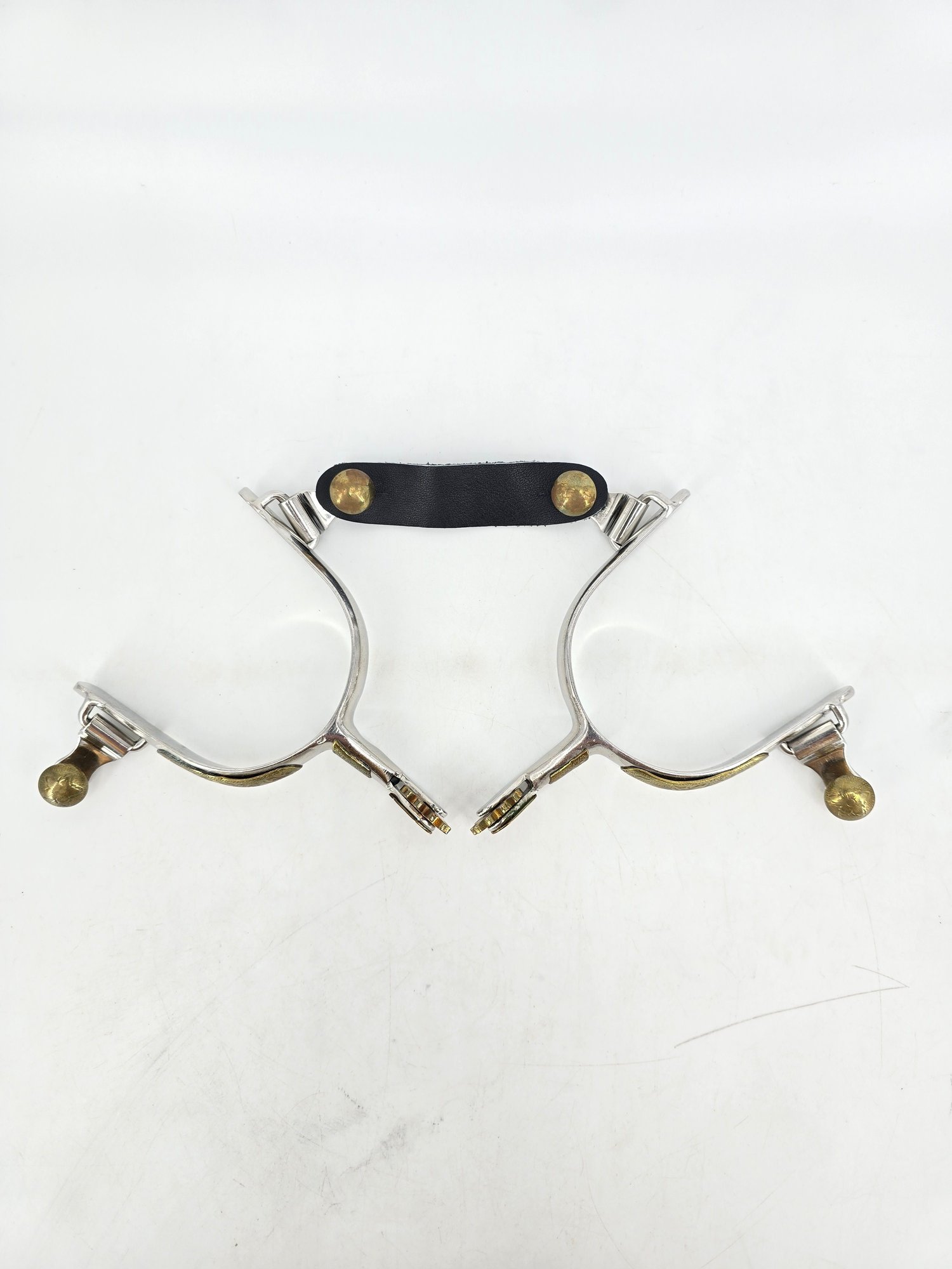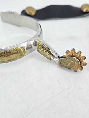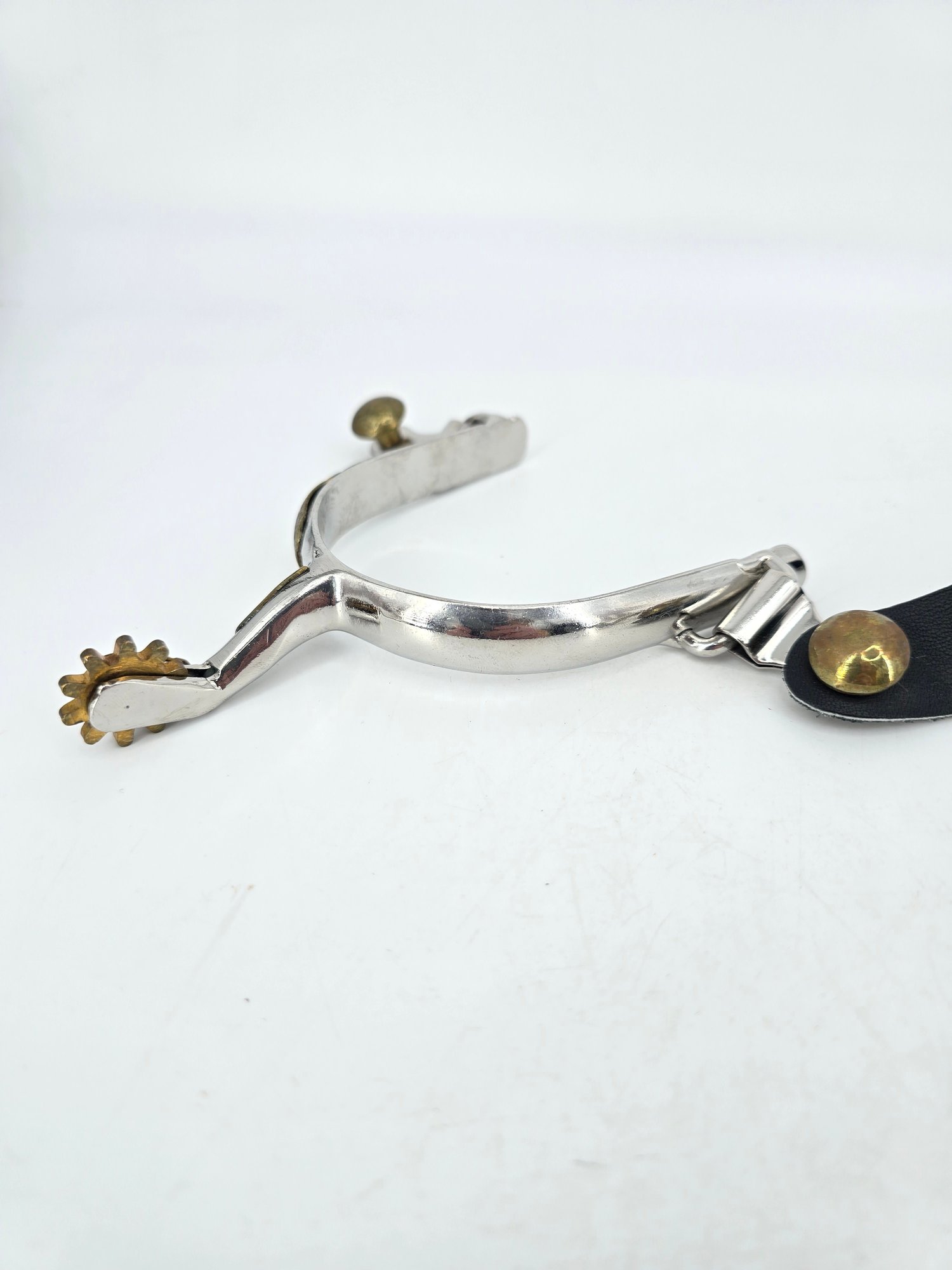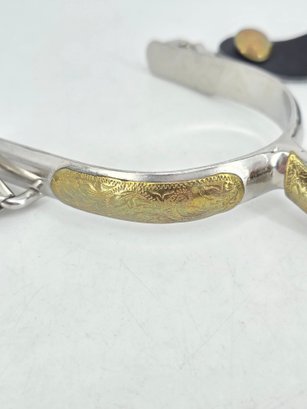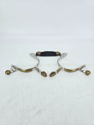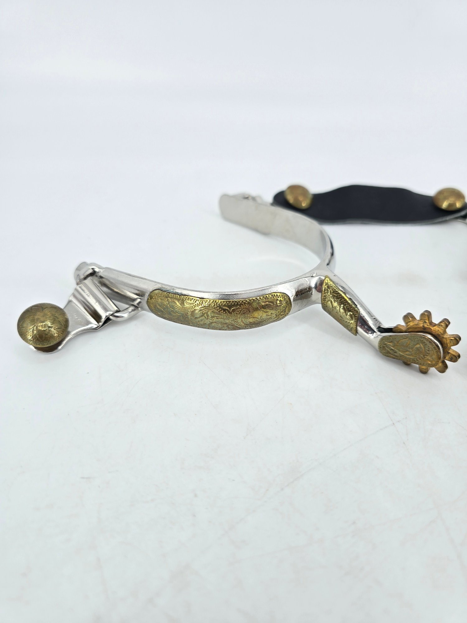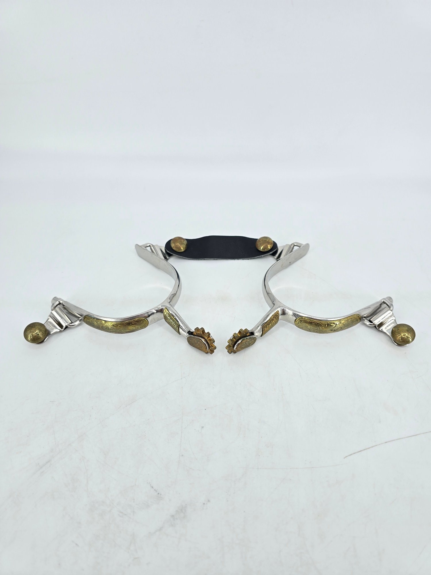 Pair of Colorado Saddlery Springfield Spurs featuring stainless steel construction with decorative brass accents. See Photos.