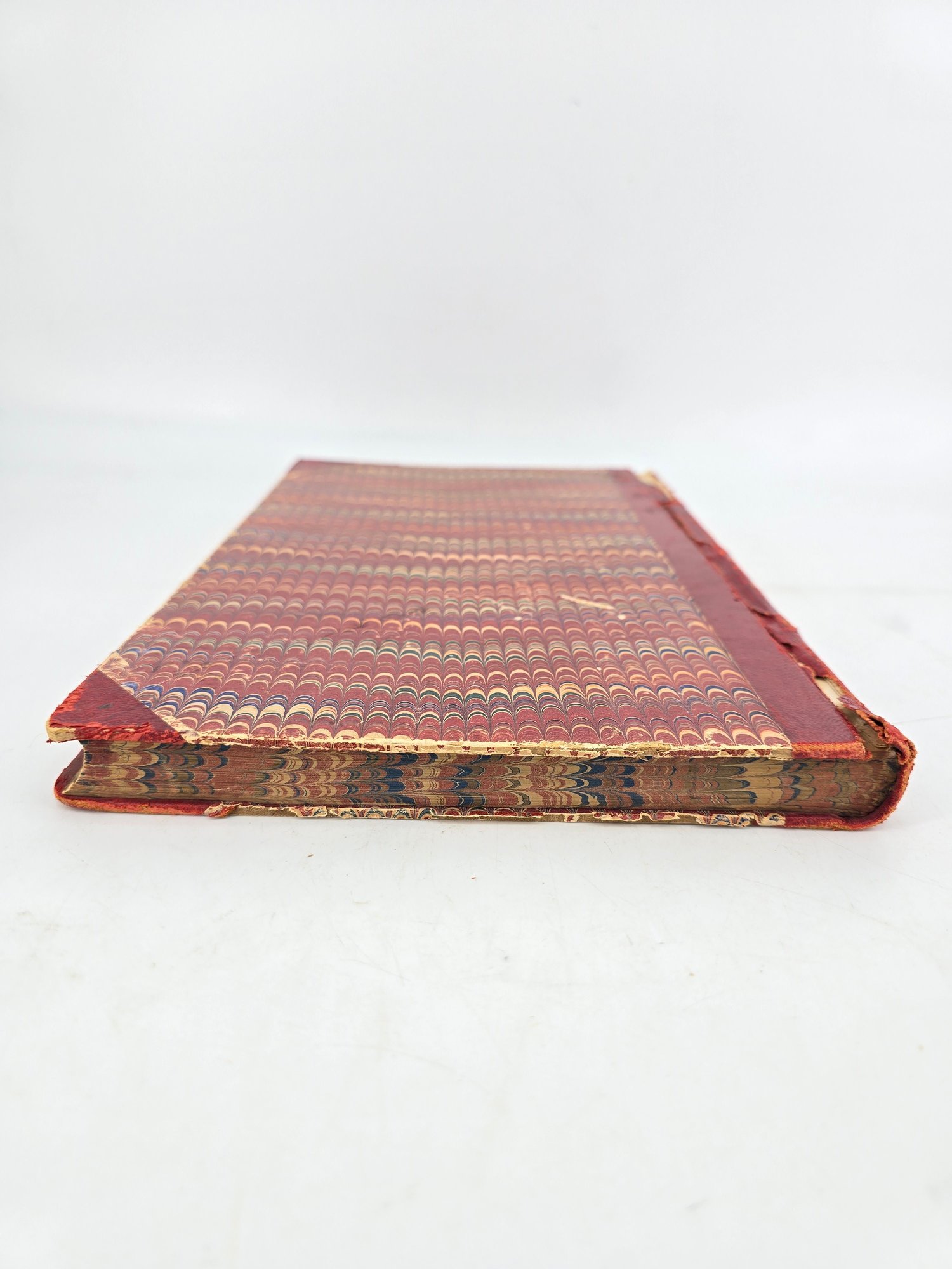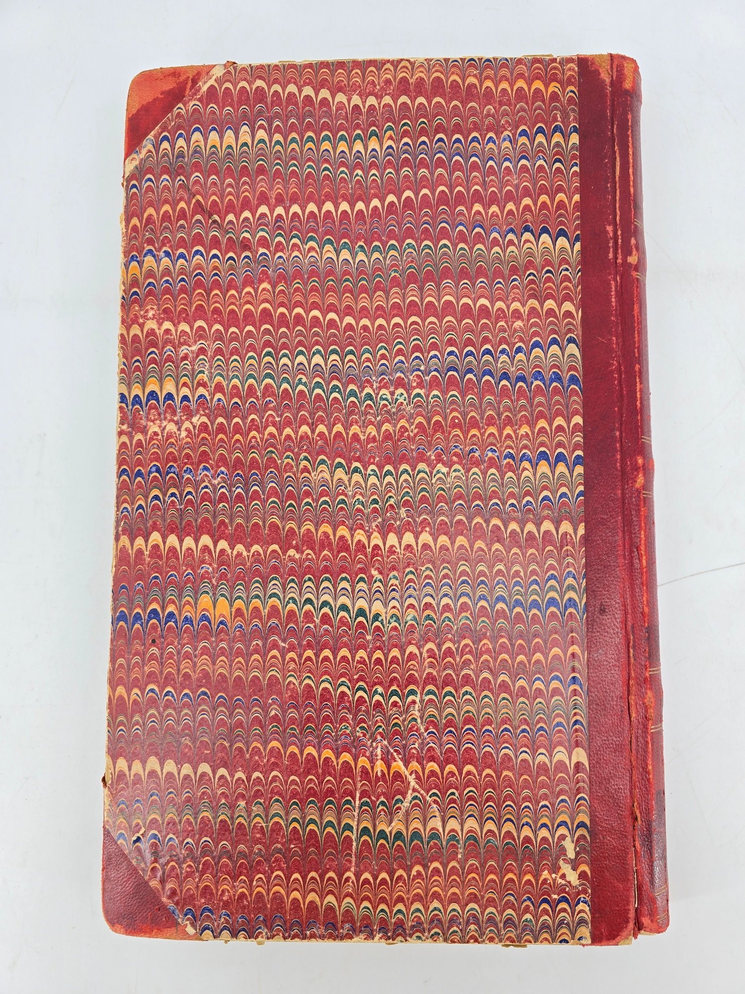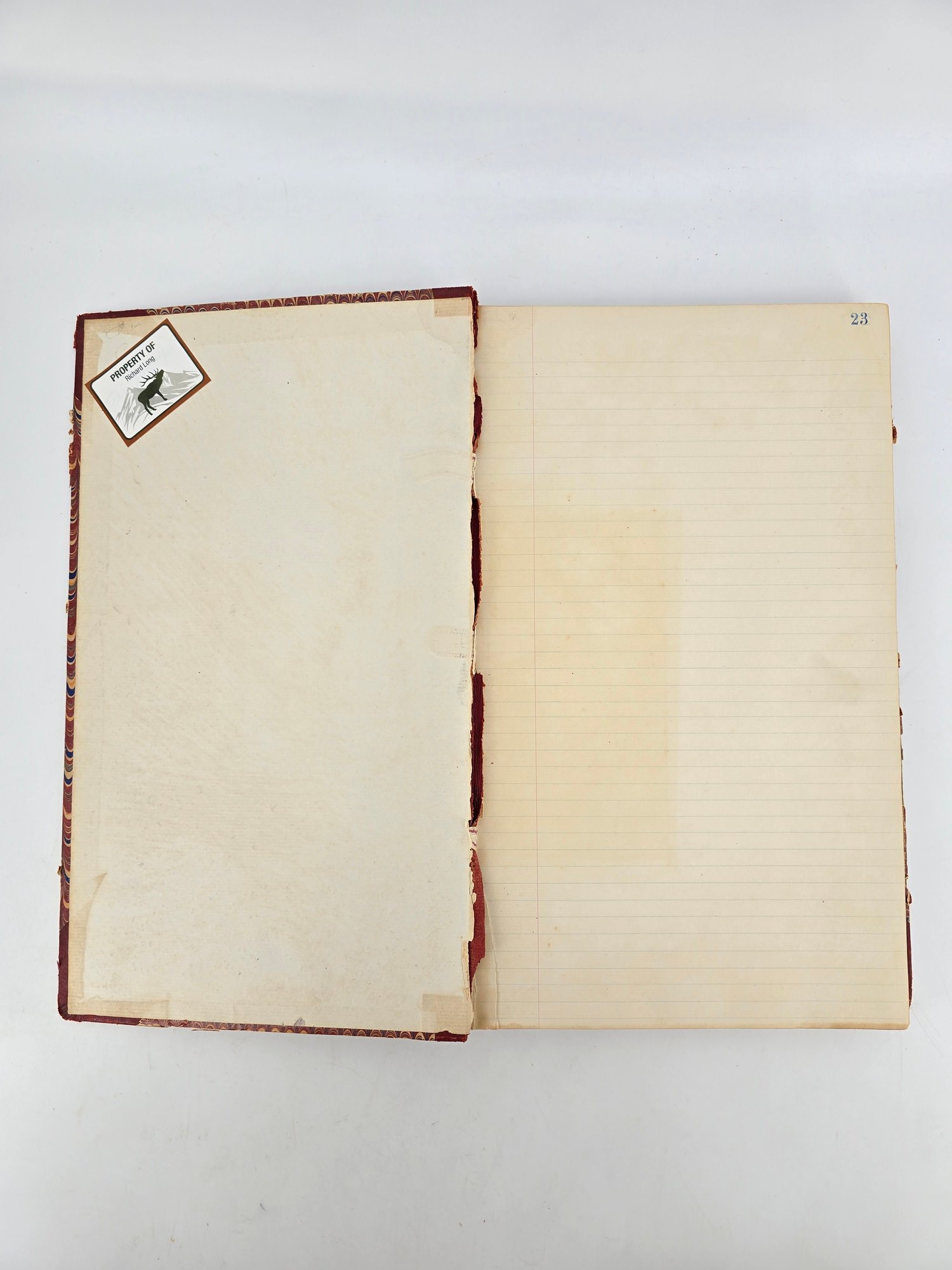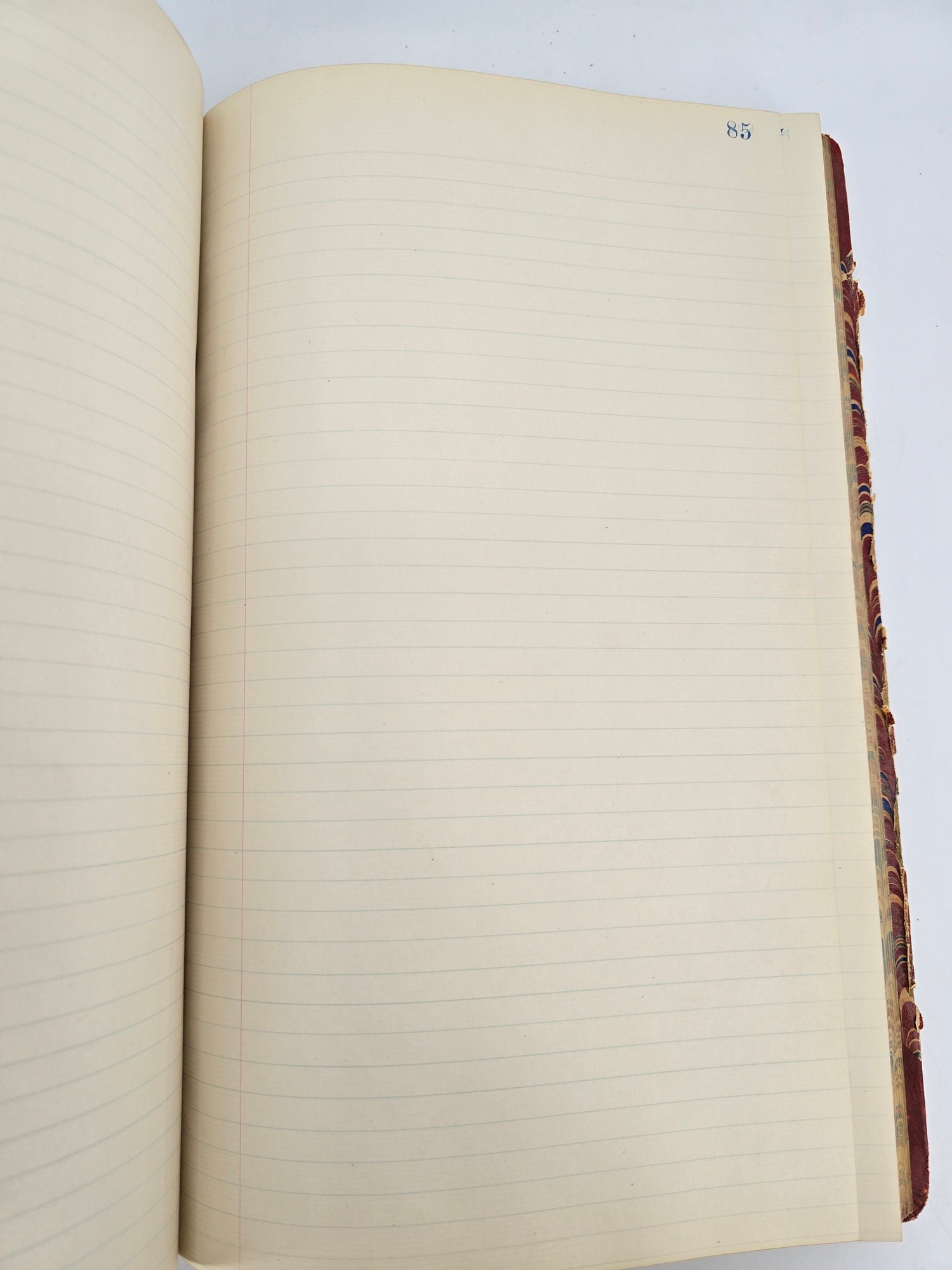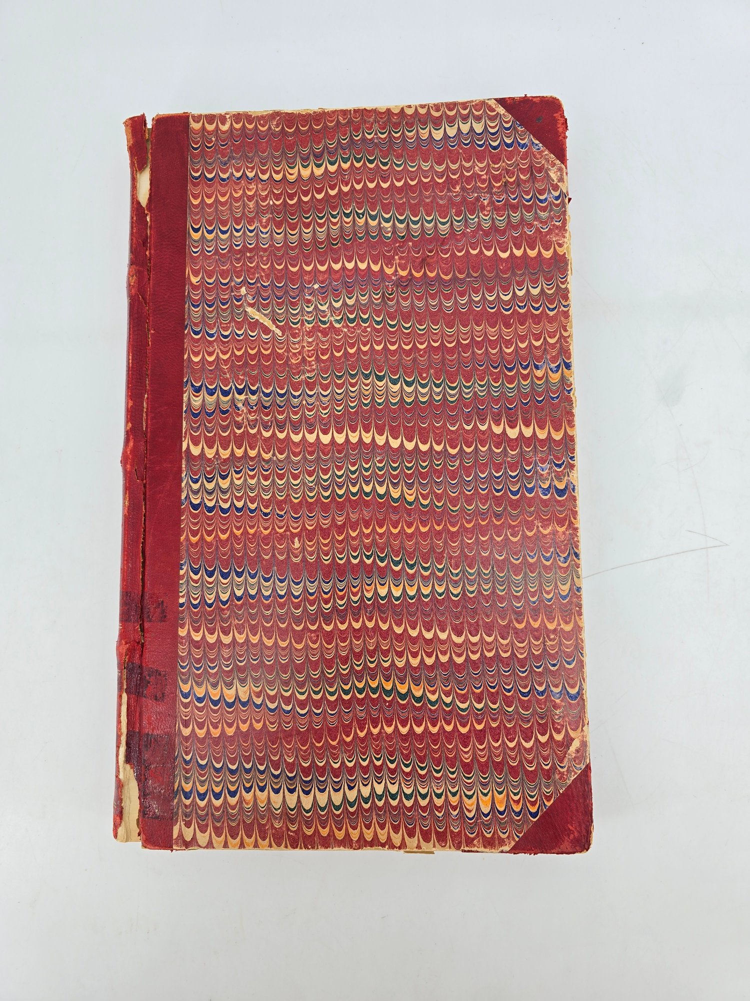 Antique / Vintage - journal / ledger features hand-marbled paper over hardcover / hardback boards. 337 pages, missing first 22 pages.