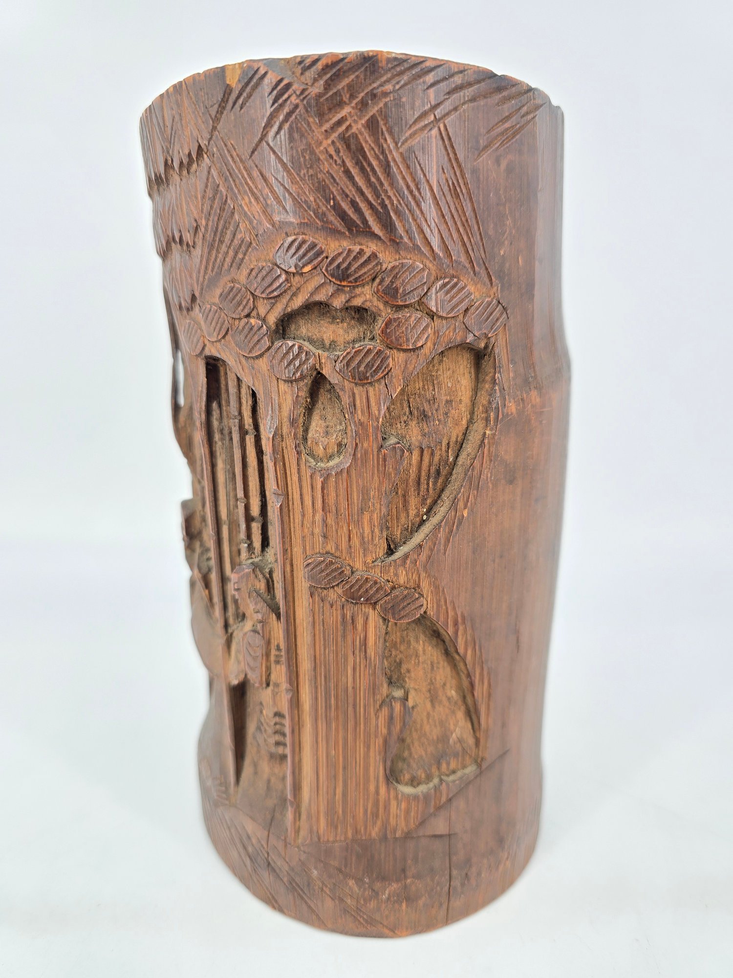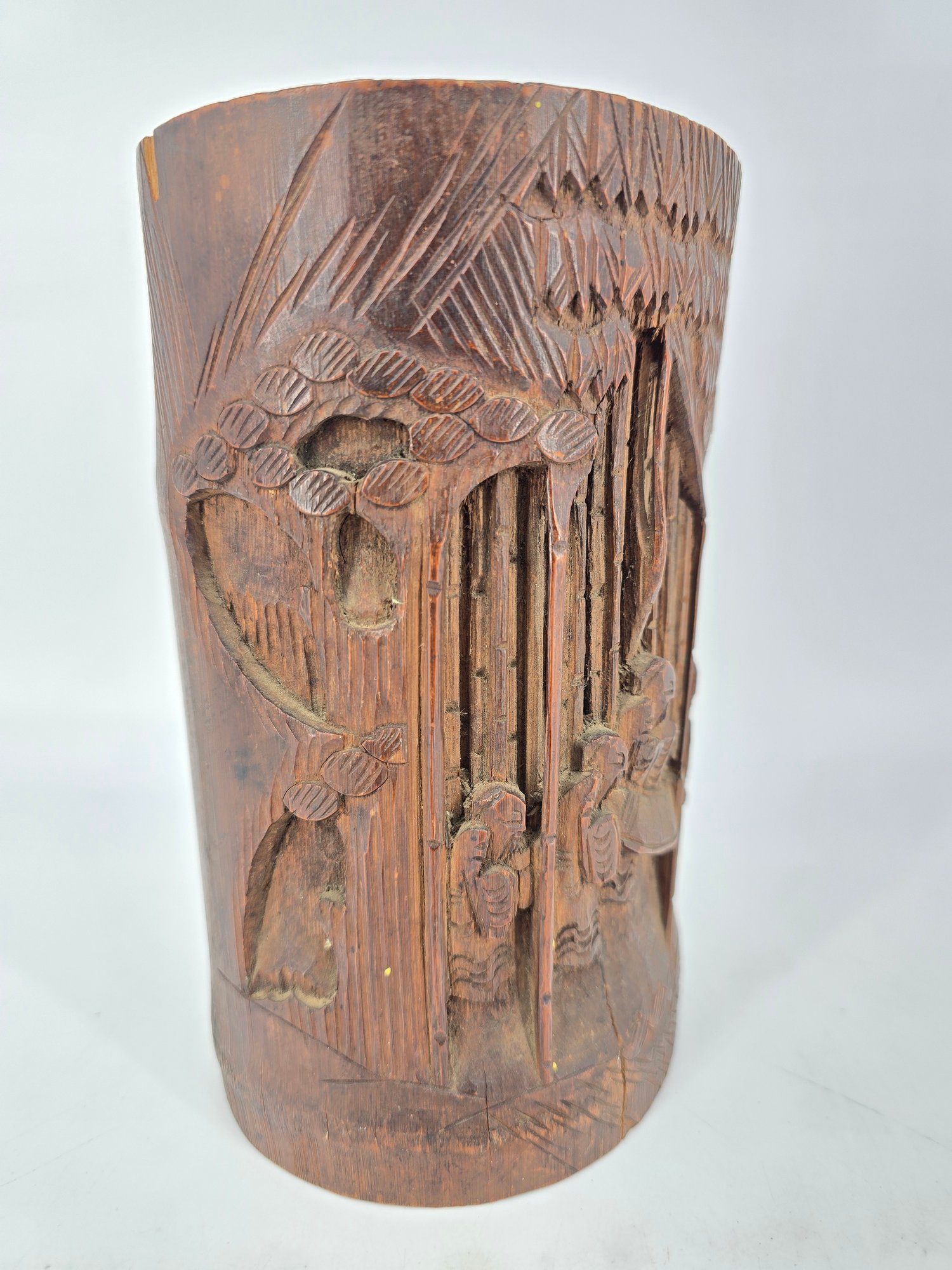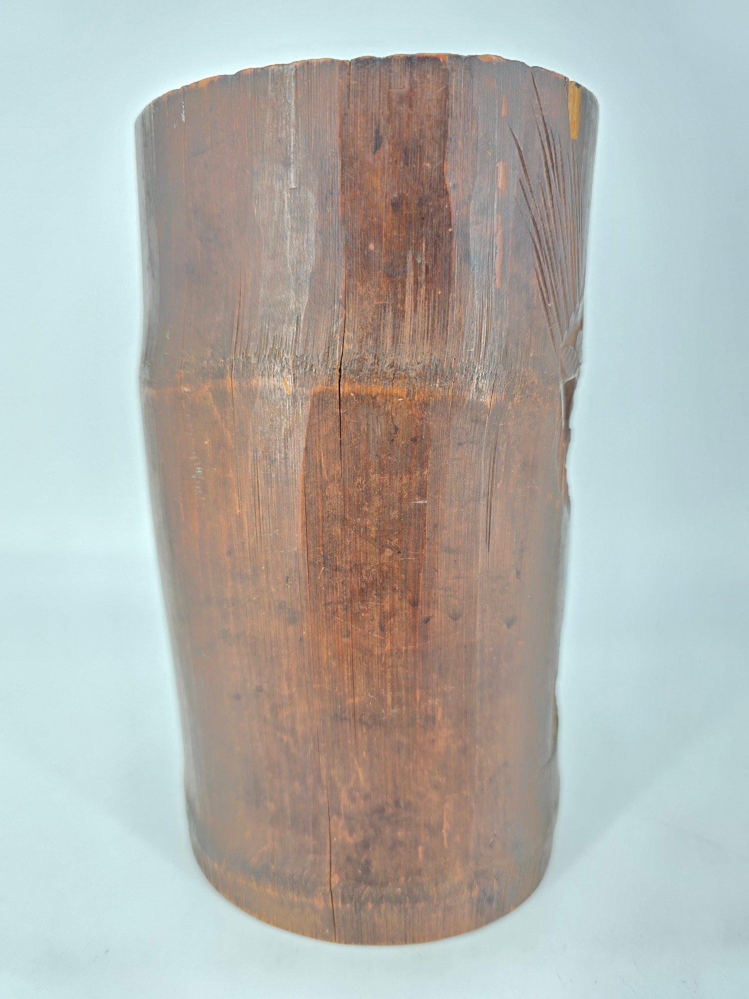 Chinese hand-carved bamboo brush pot, also known as a bitong.