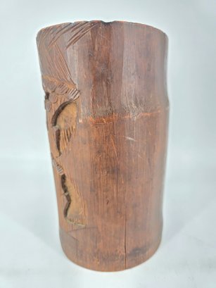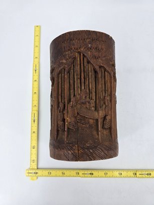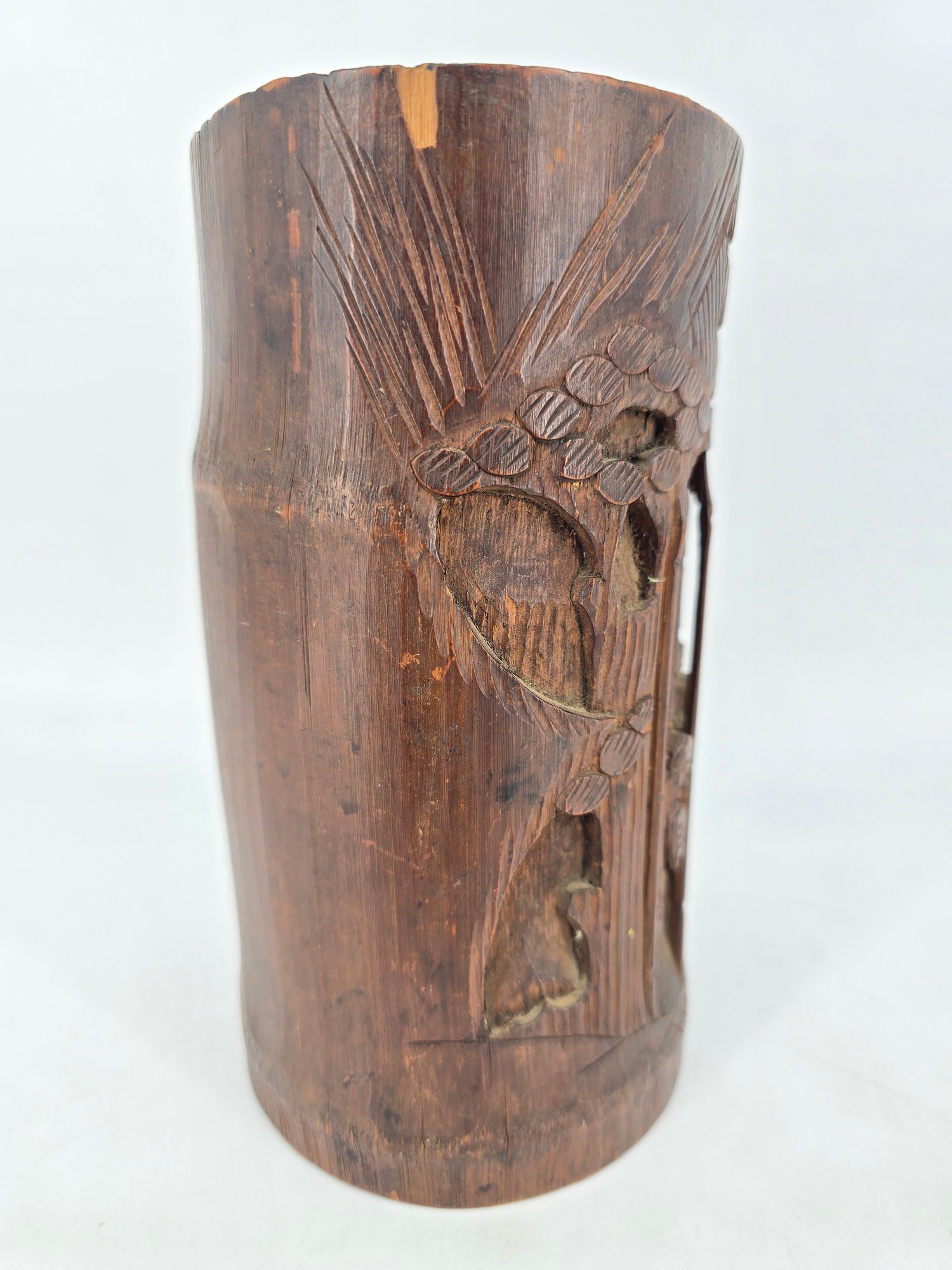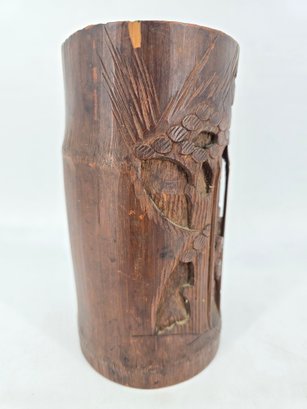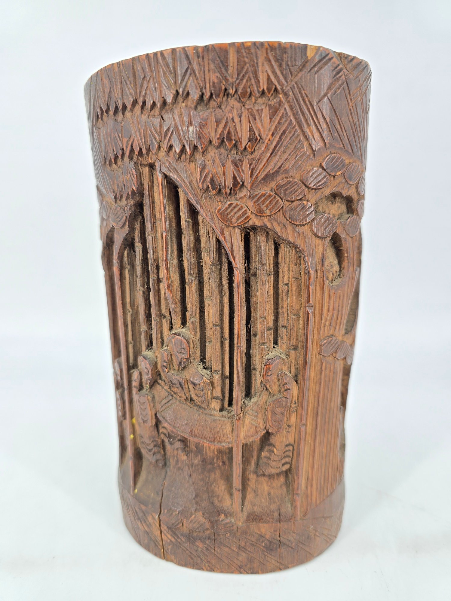 Chinese hand-carved bamboo brush pot, also known as a bitong.
