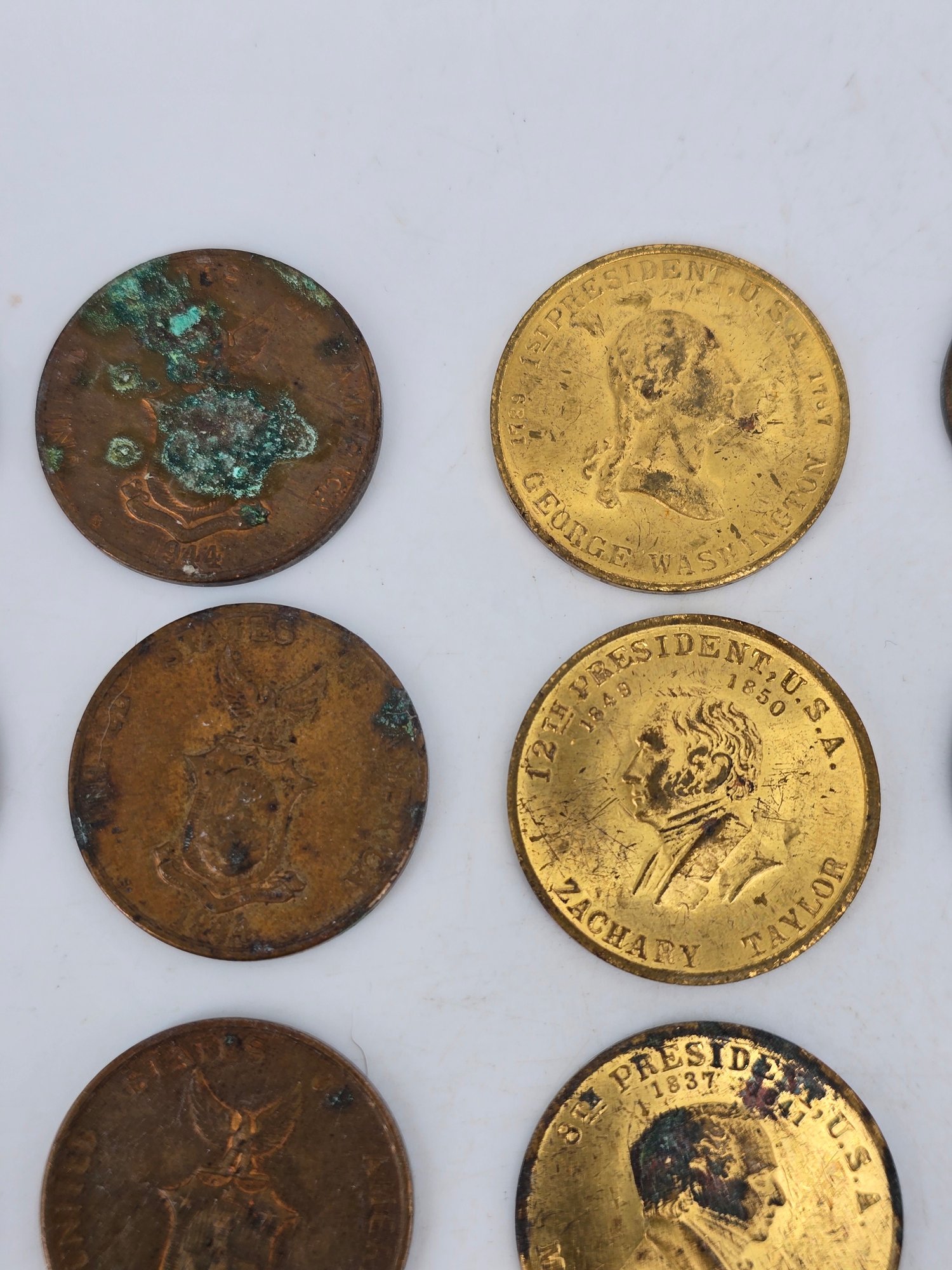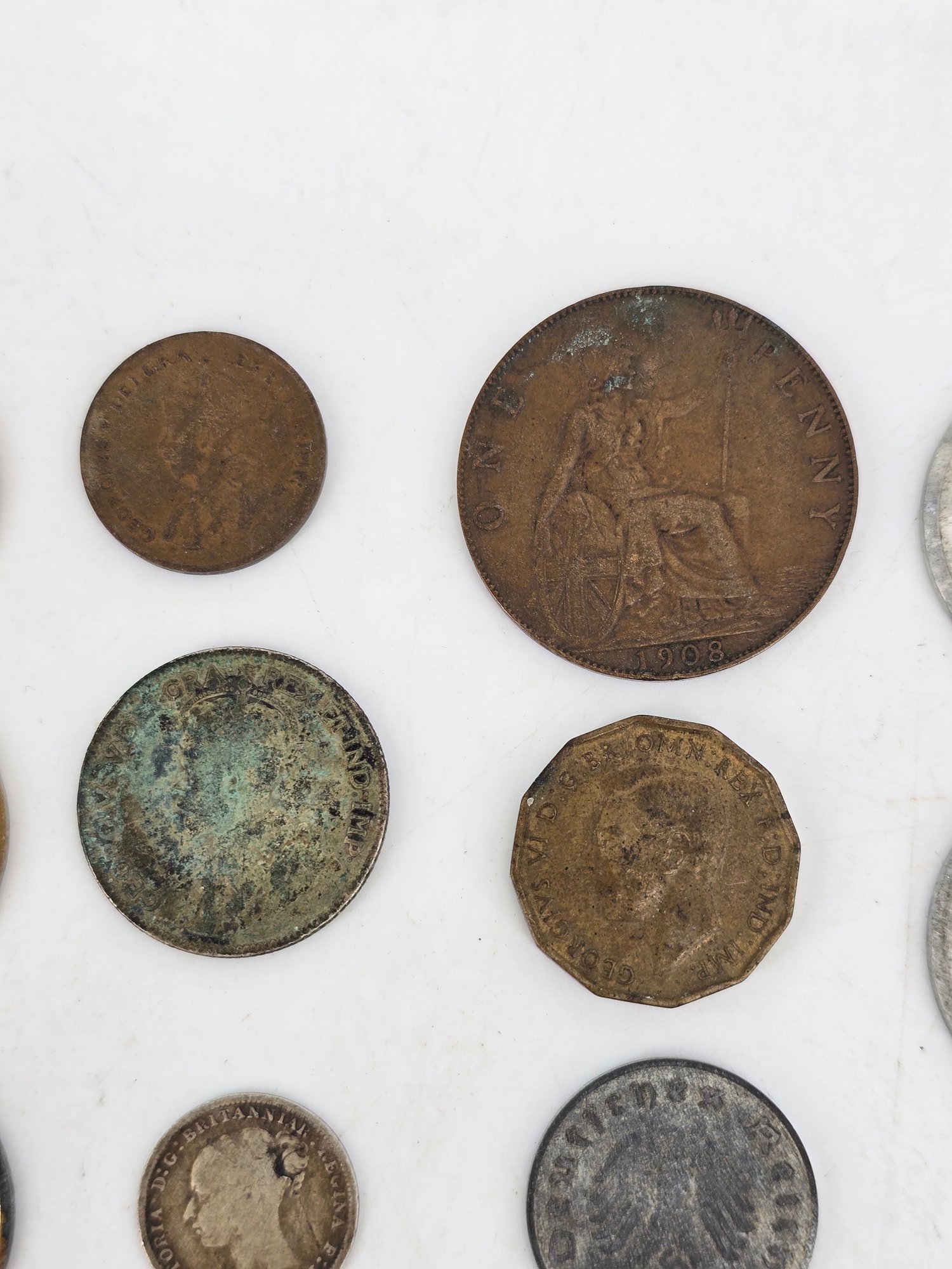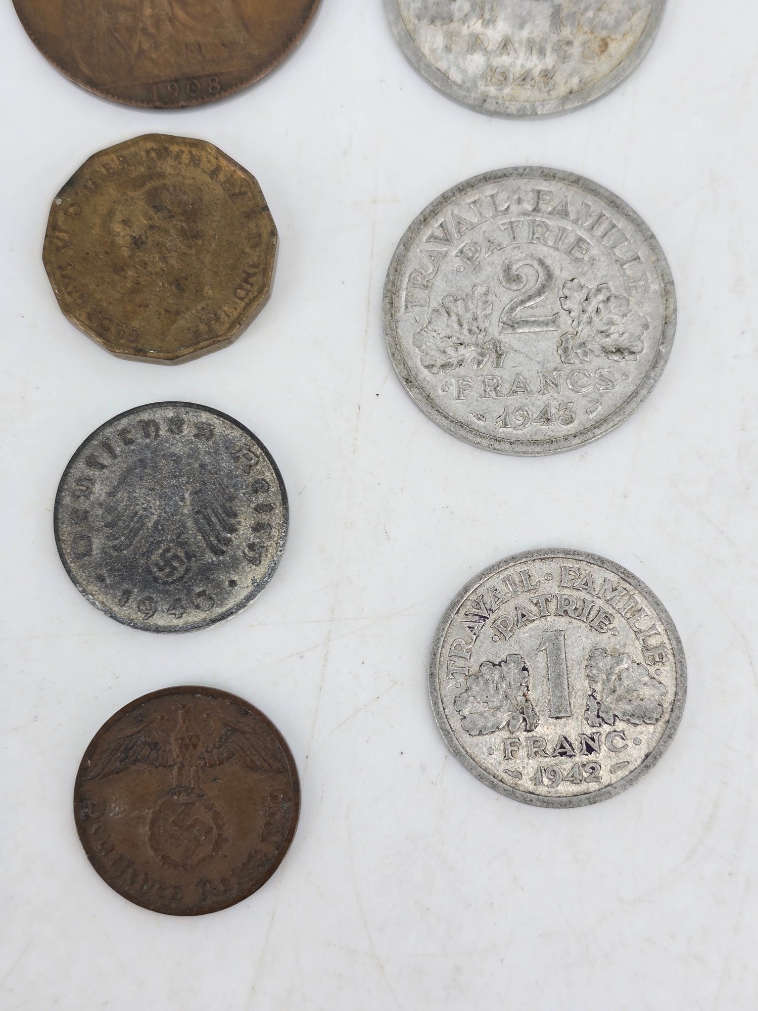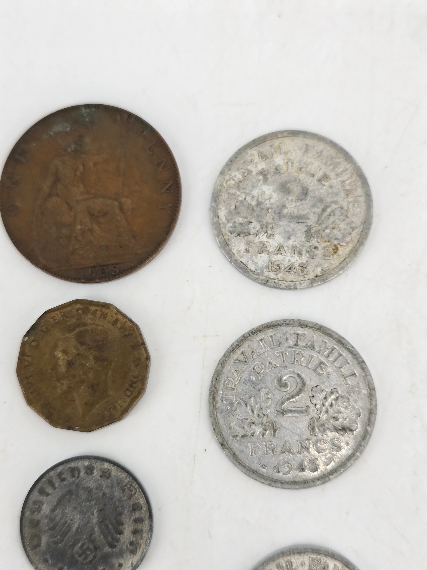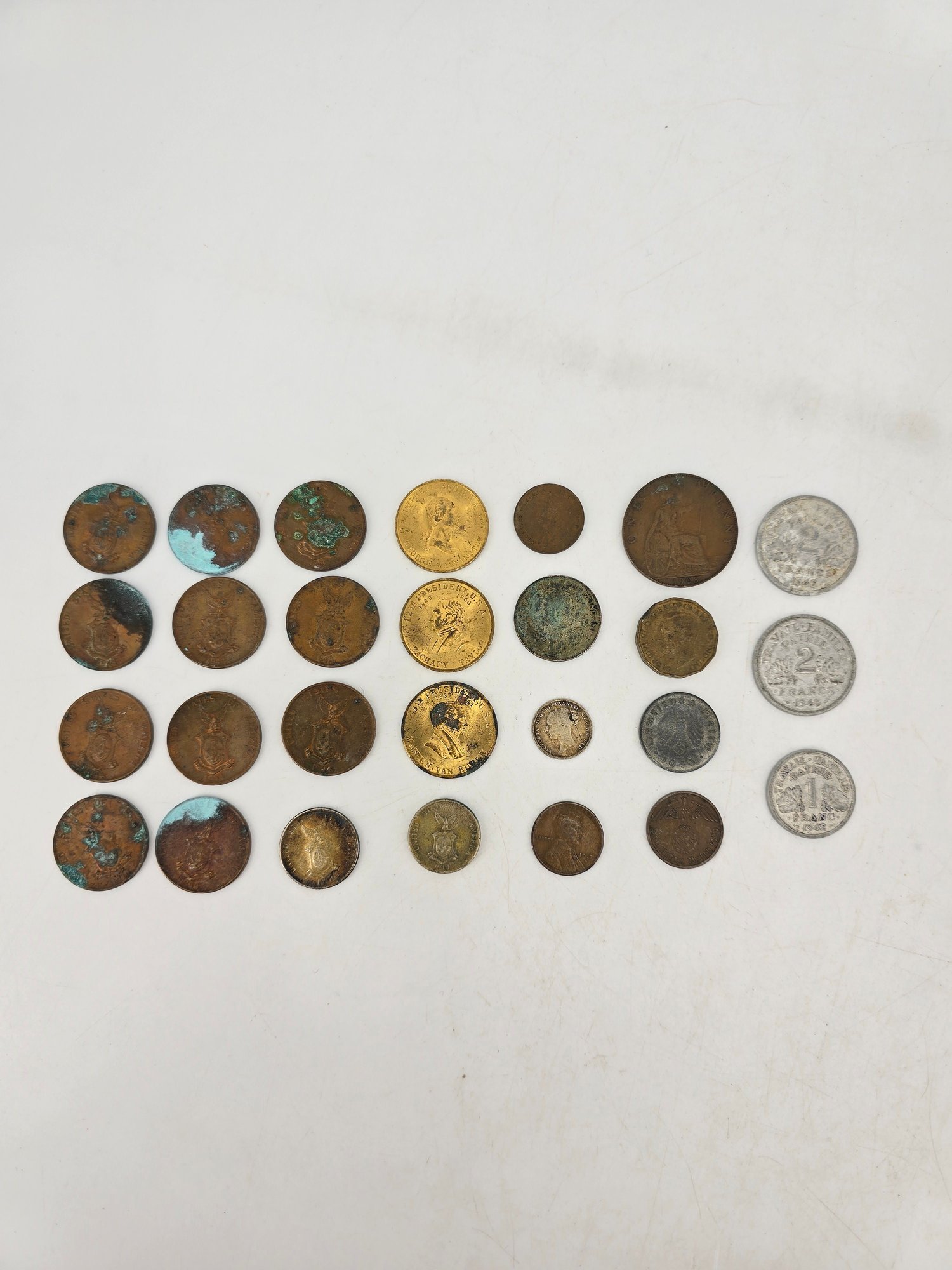 Coin Collection - lot of 27 - lot includes; 11 1944 Phillipines / United States - One Centravo, one 1944 Phillipines / United States - Twenty Centravos (silver), Three U.S. President Commemorative Tokens, One 1944 Phillipines / United States - Five Centravos, One 1935 Canada - One Cent, One 1929 Canada - 25 Cents (silver), one 1885 Great Brittain - Three Pence (silver), one 1917D Unites States - Penny / One Cent, One 1908 United Kingdom - One Penny, 1941 British - Three Pence, 10 Reichspfennig coin issued during the Third Reich period in Germany, 2 Reichspfennig coin from Germany, minted during the Third Reich era between 1936 and 1940, Three Vichy France era Coins during World War II - Two 1943 2 Francs and One 1942 1 Franc. View Photos to note conditions.