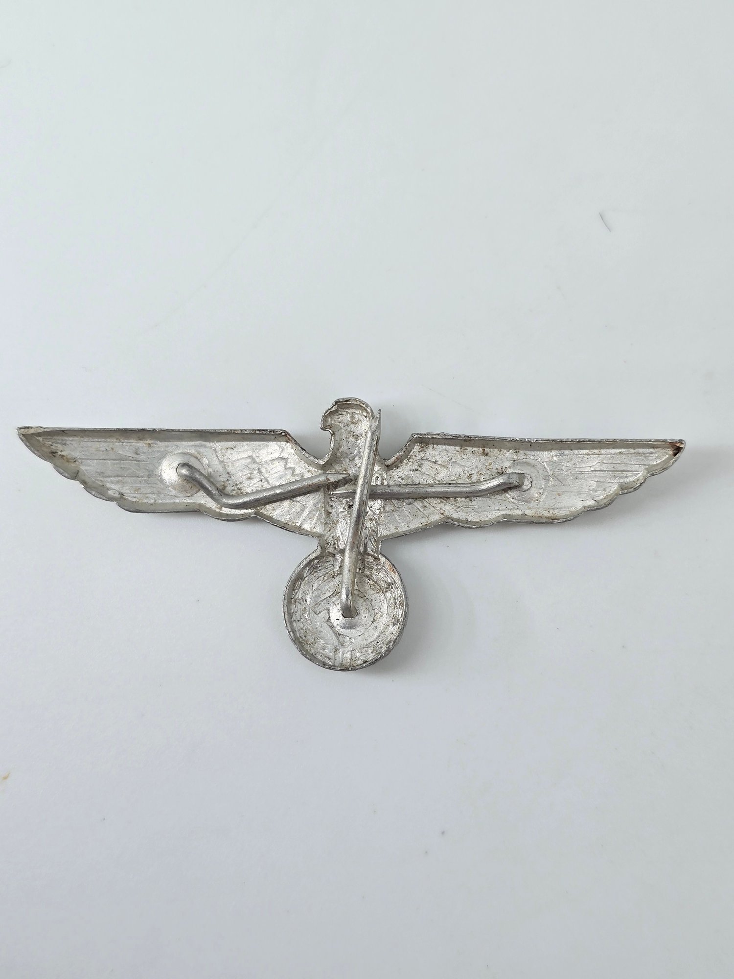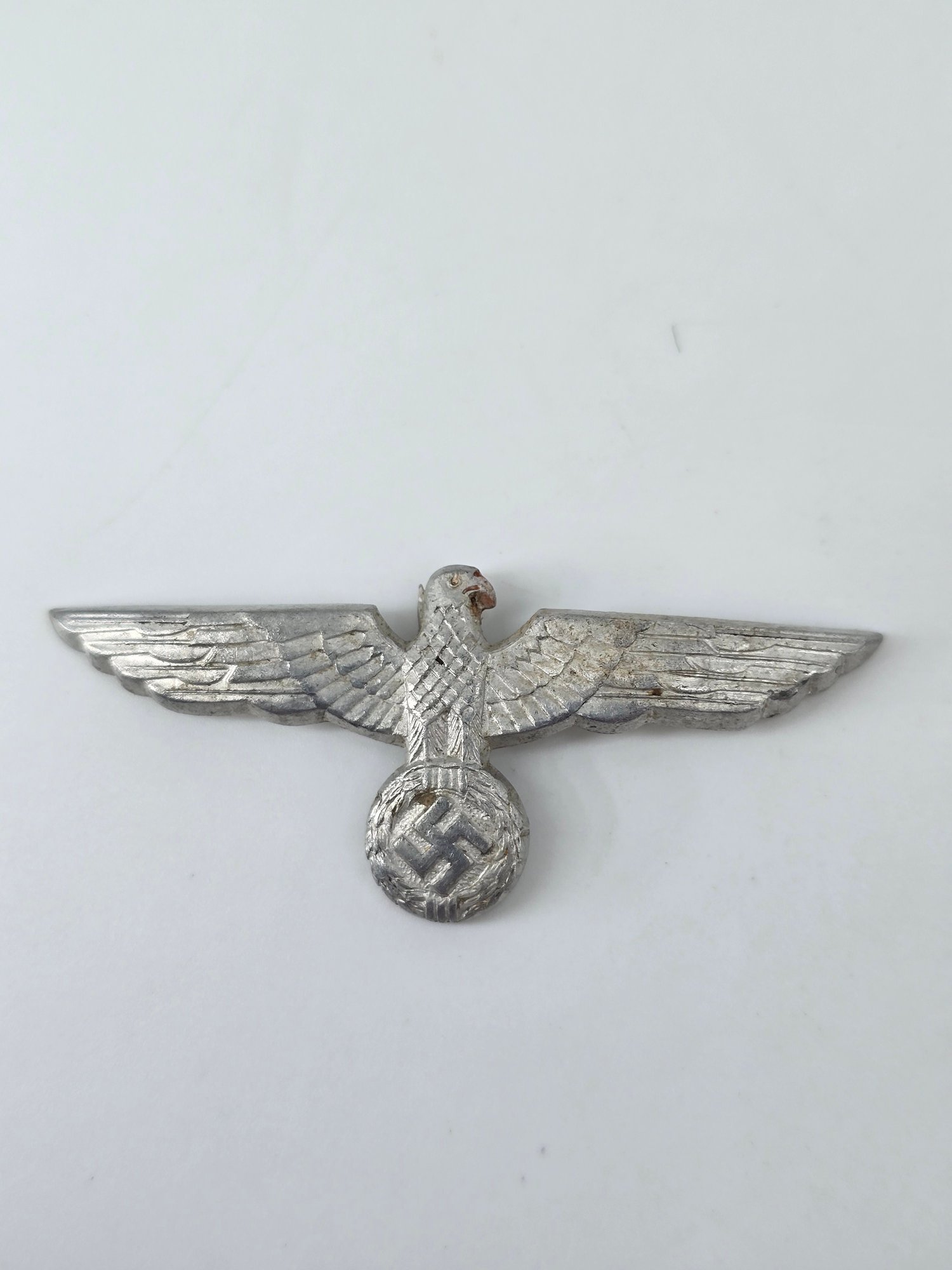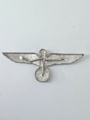 Nazi Eagle Insignia: The silver eagle insignia with a swastika is a German military cap or breast eagle from the WWII era.