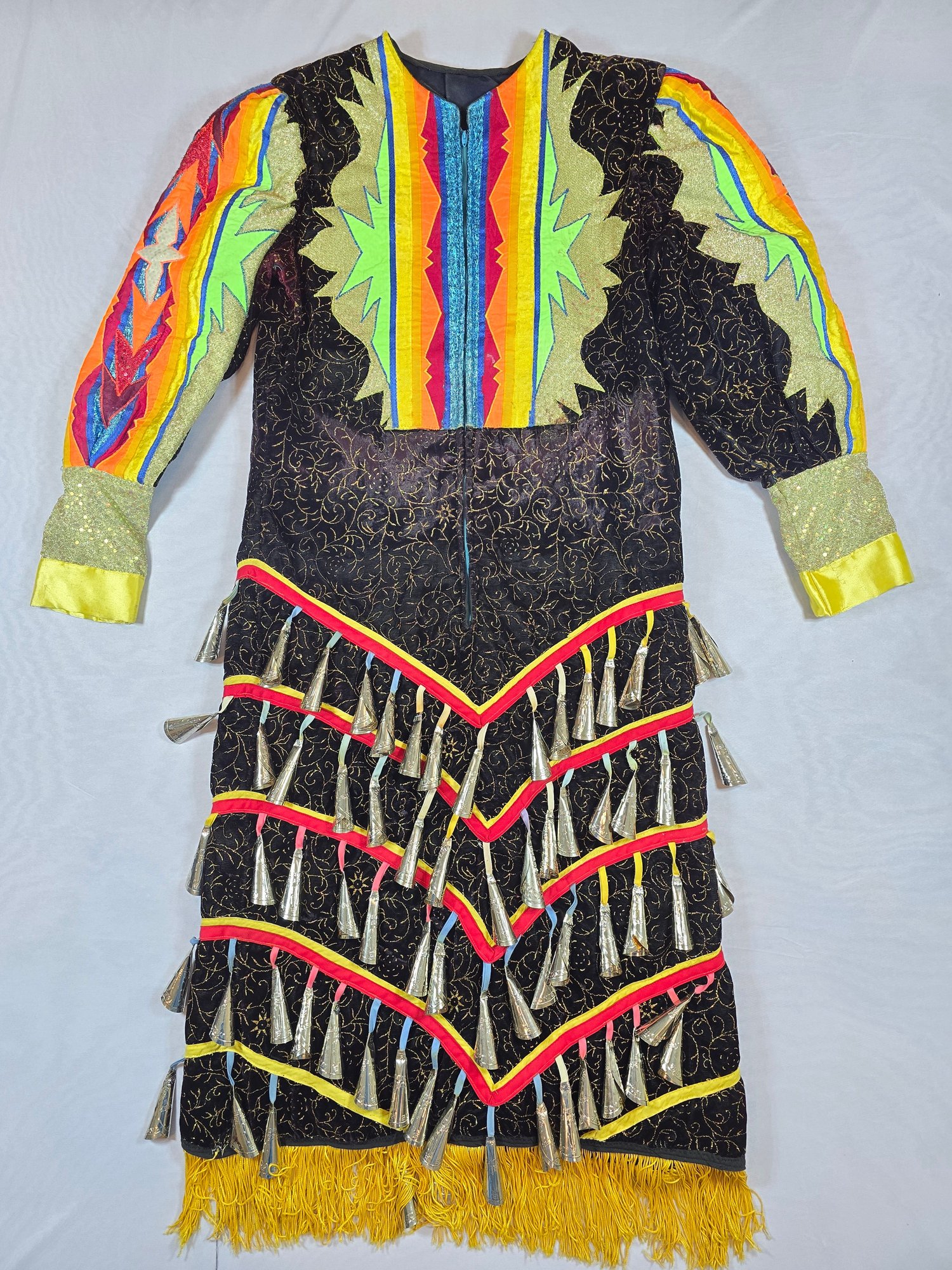Contemporary Native American jingle dress regalia - Measures About 43" from top of Shoulders to Bottom.