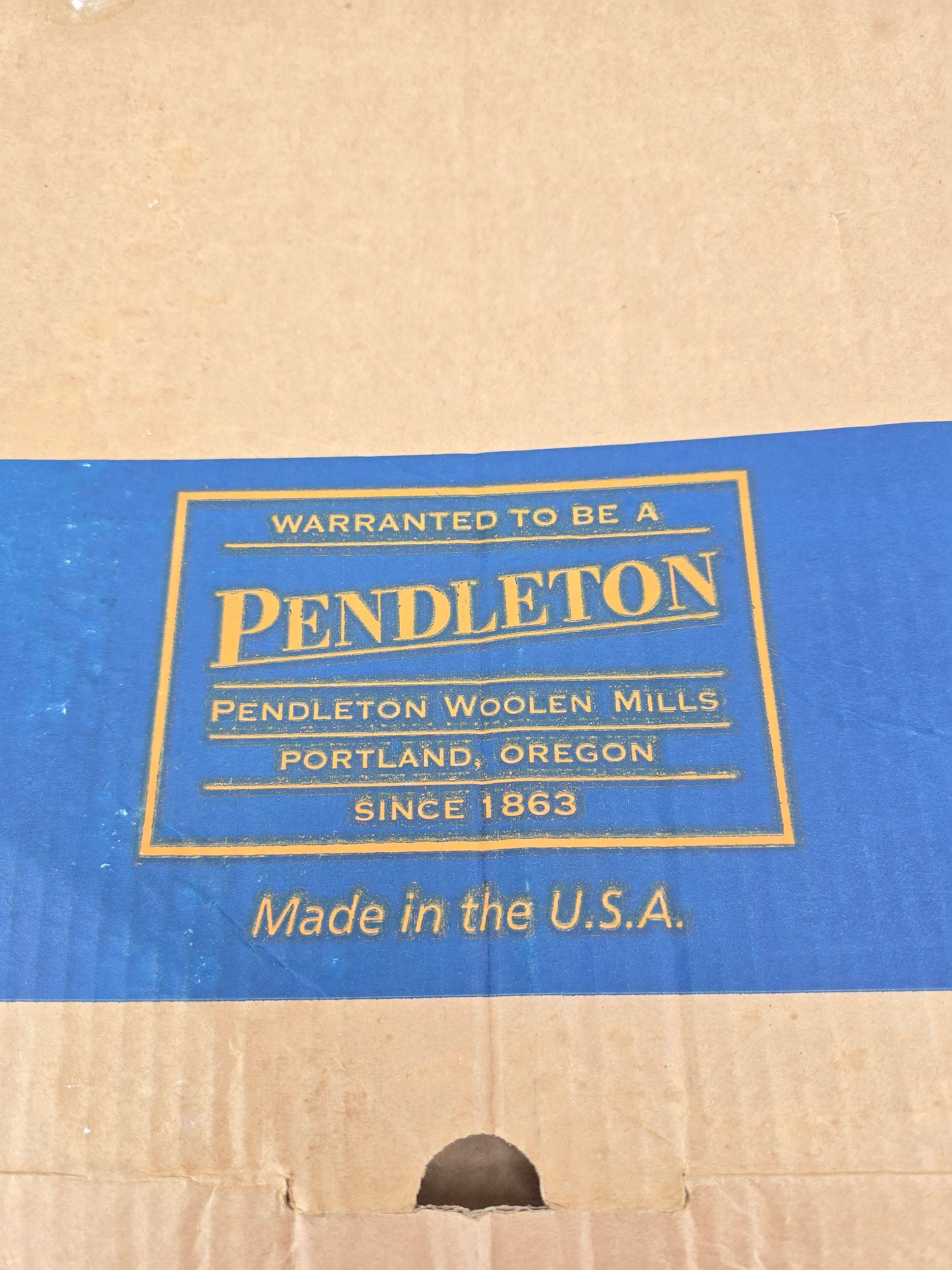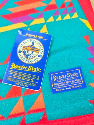 New - Collectible Pendleton Woolen Mills blanket, specifically from their Beaver State line featuring Native American-inspired patterns.