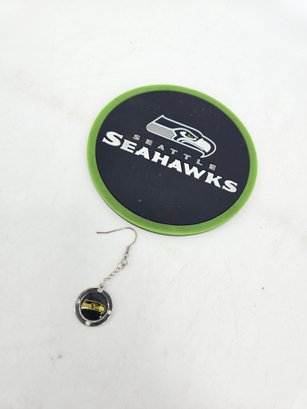NFL's - Seattle Seahawks - Drink Coaster and Single Earring - See Photos