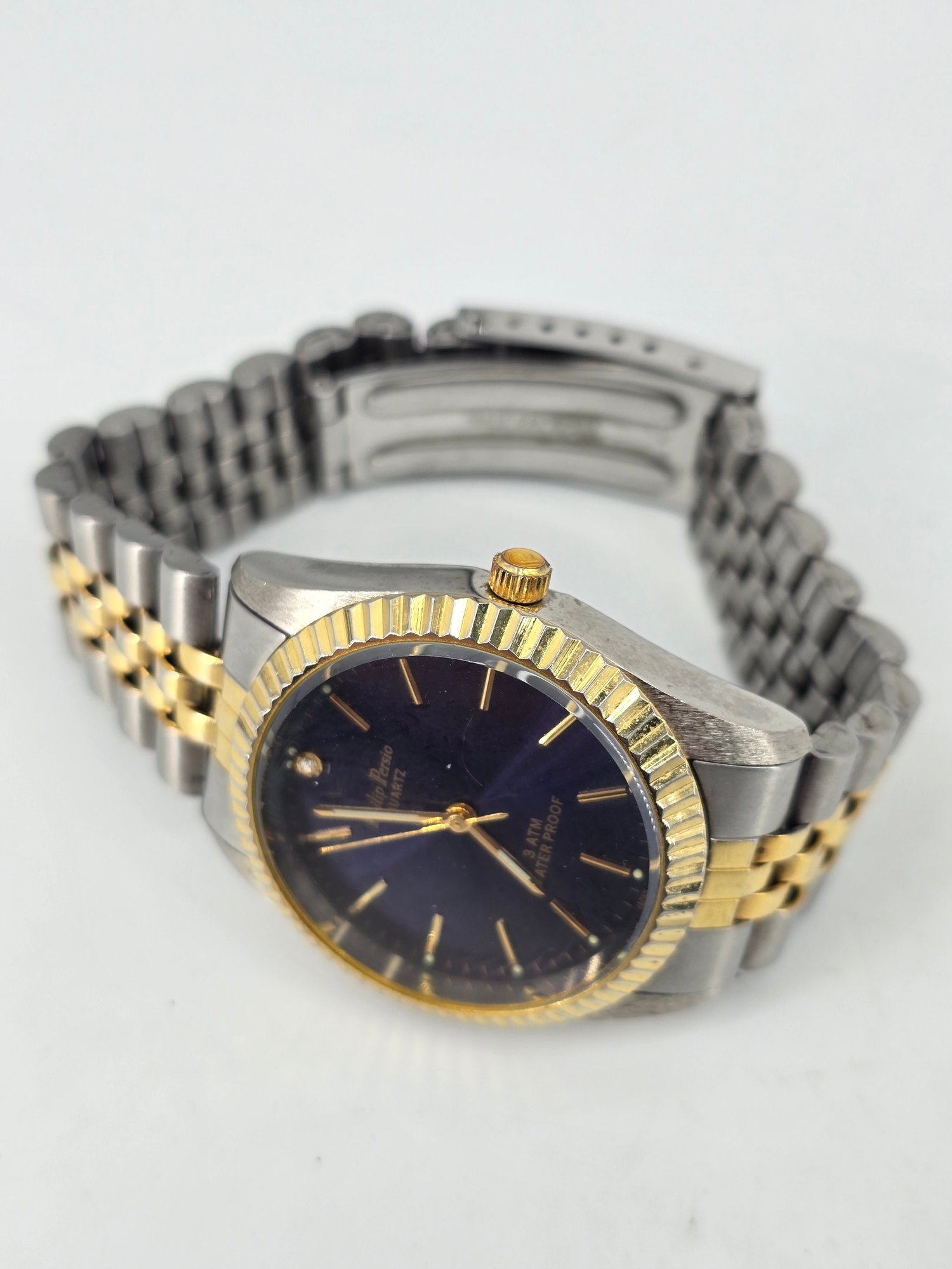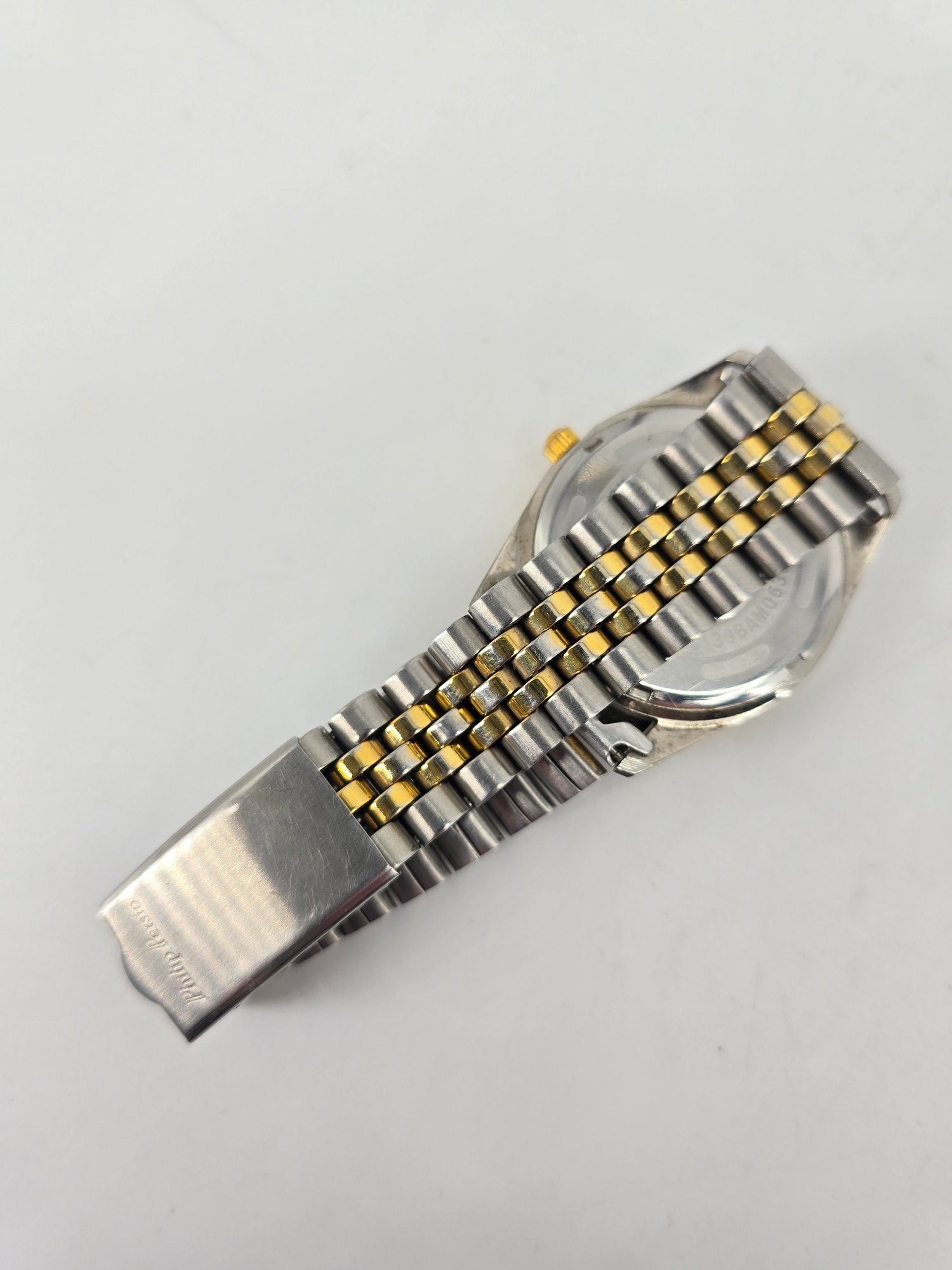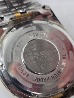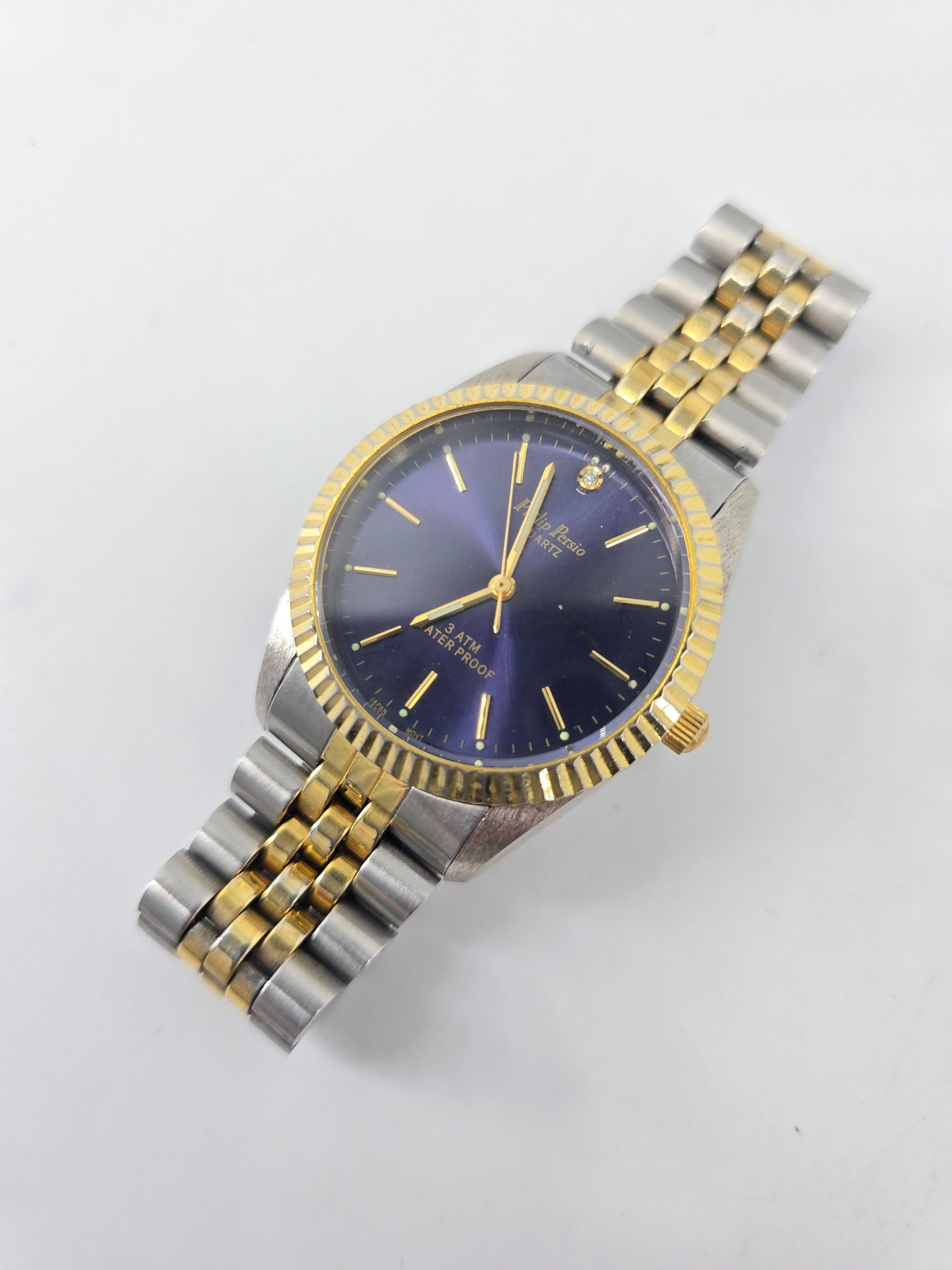 Philip Persio Quartz analog wristwatch featuring a two-tone gold and silver band and case. Not-tested.