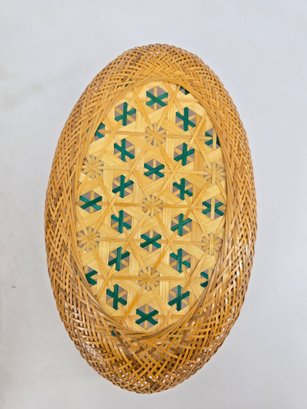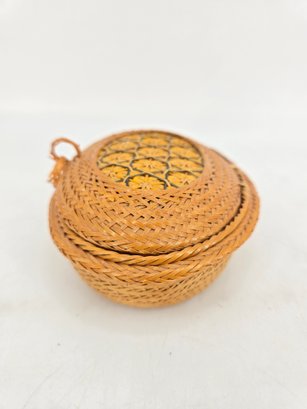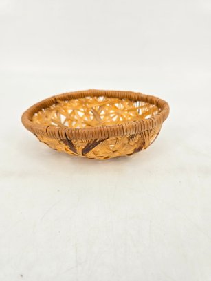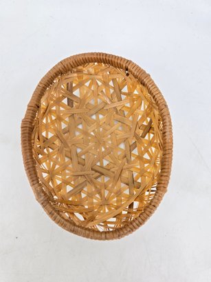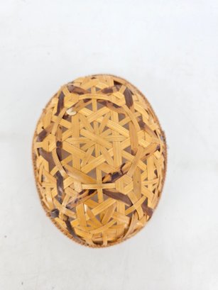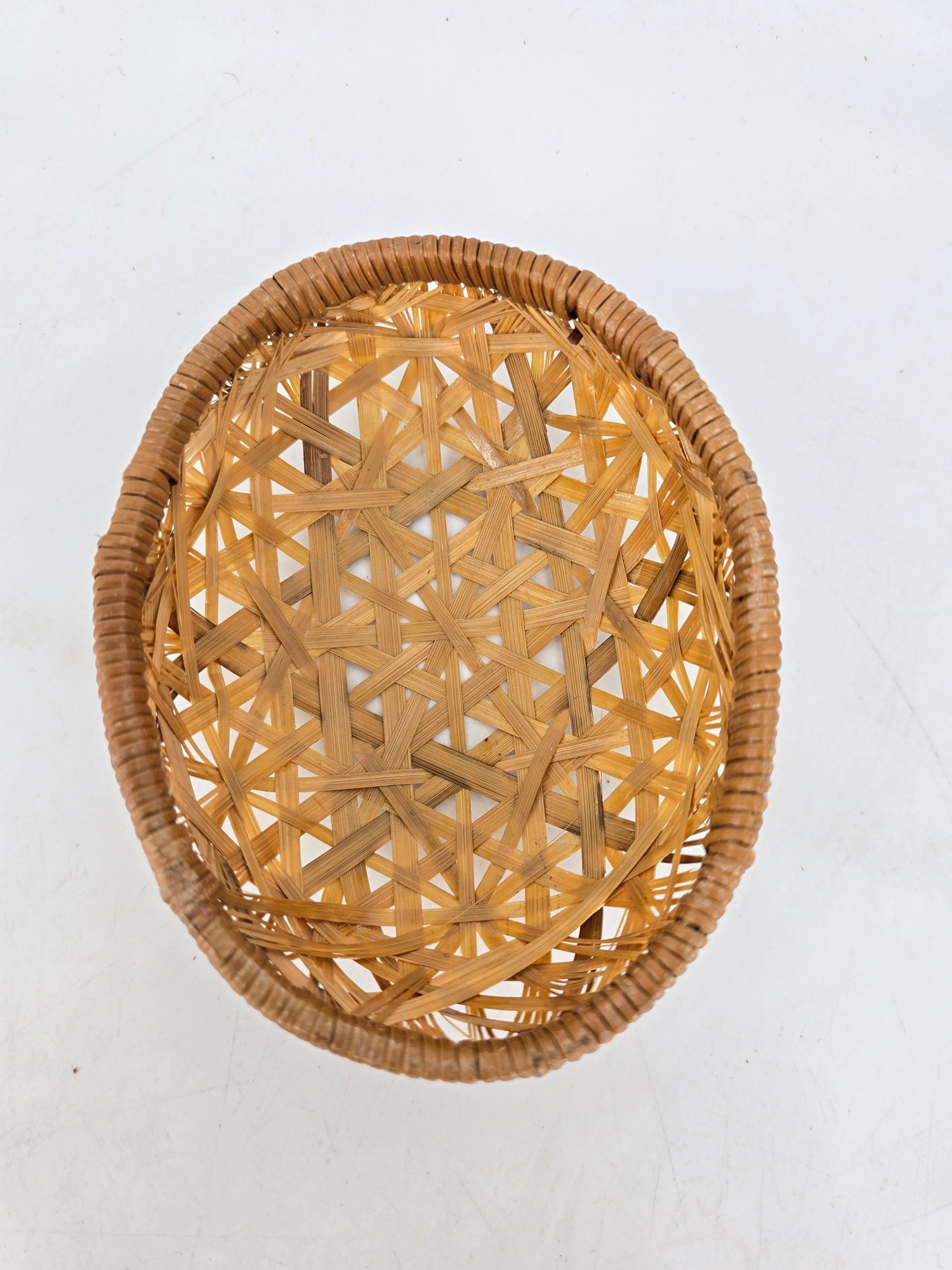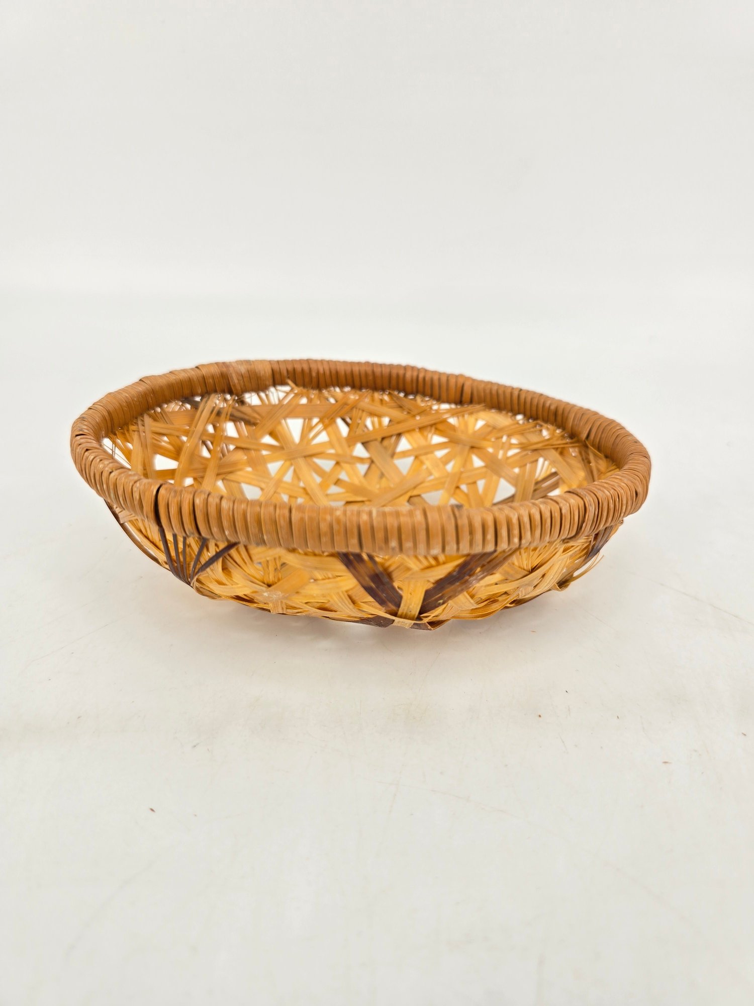 Lastly, small, vintage woven basket, potentially handcrafted from bamboo. View Photos.