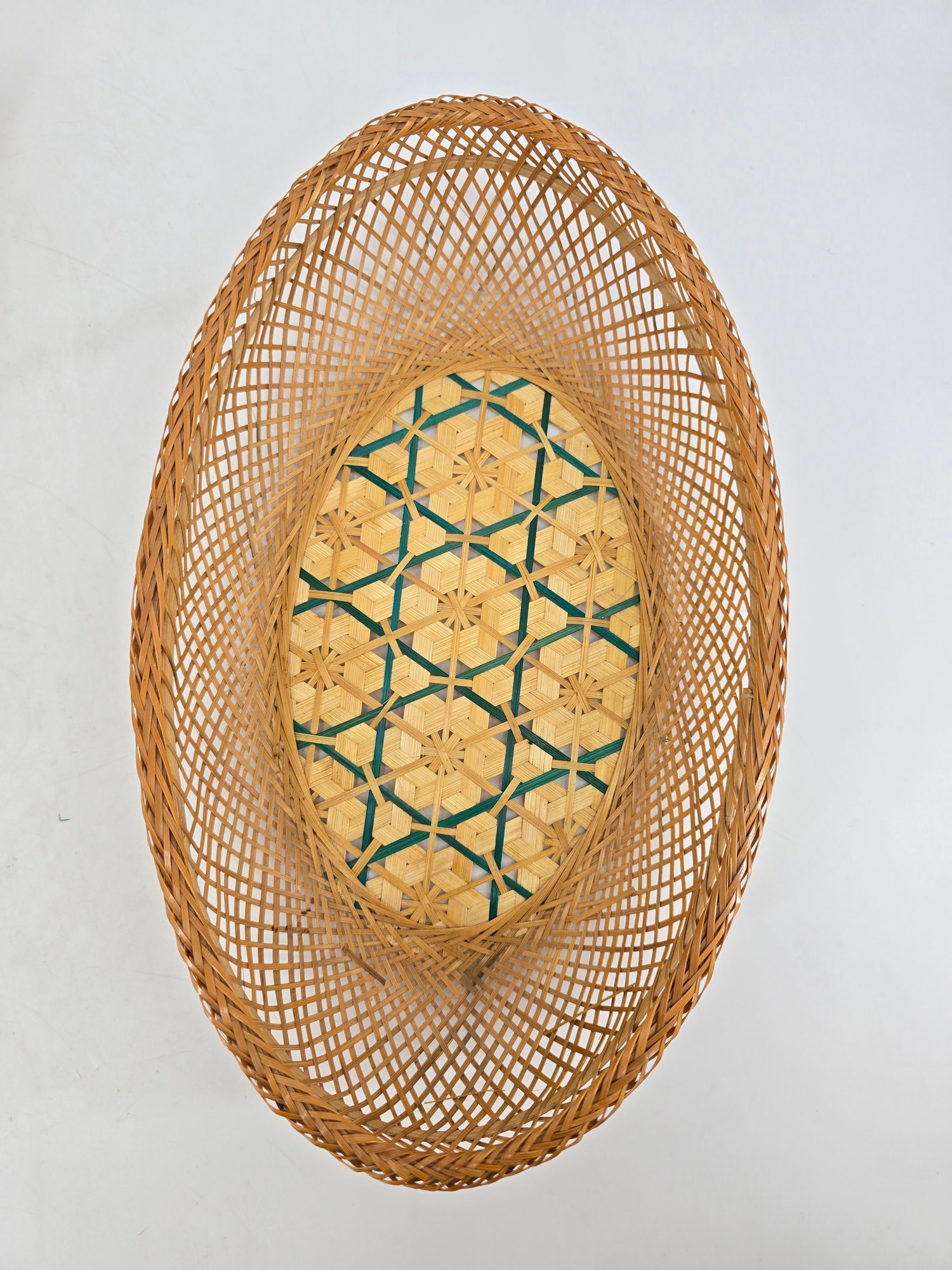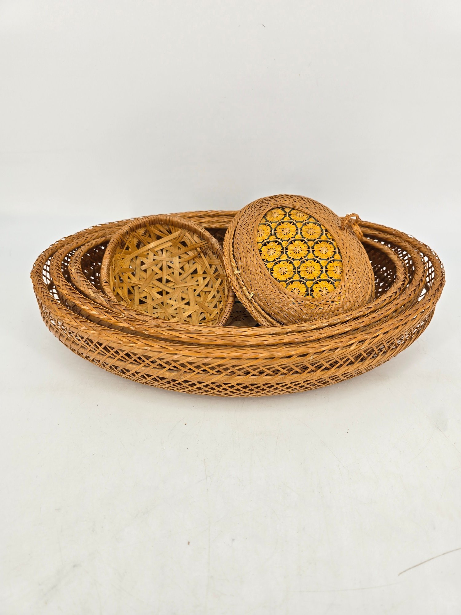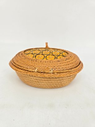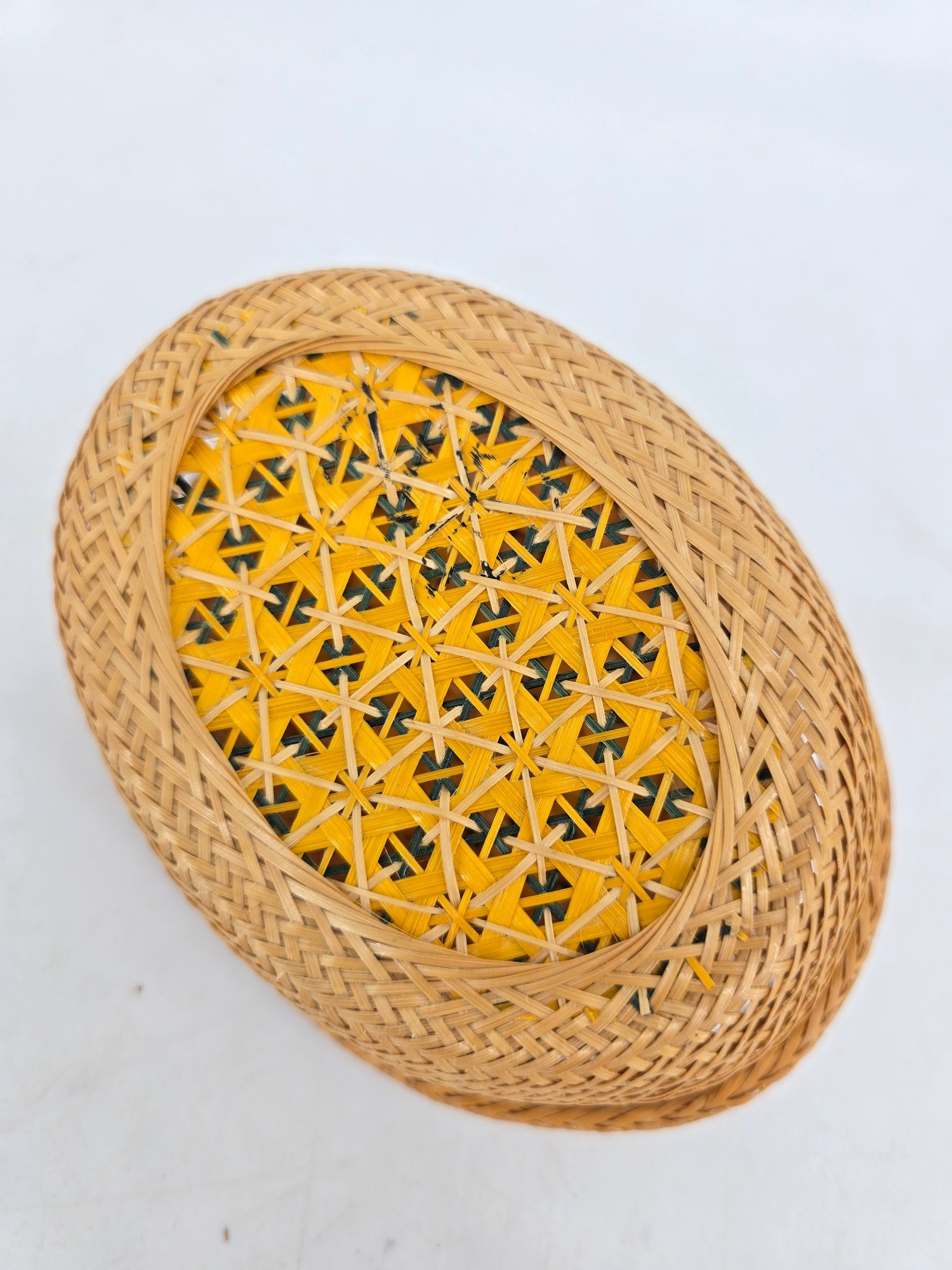 Lastly, small, vintage woven basket, potentially handcrafted from bamboo. View Photos.