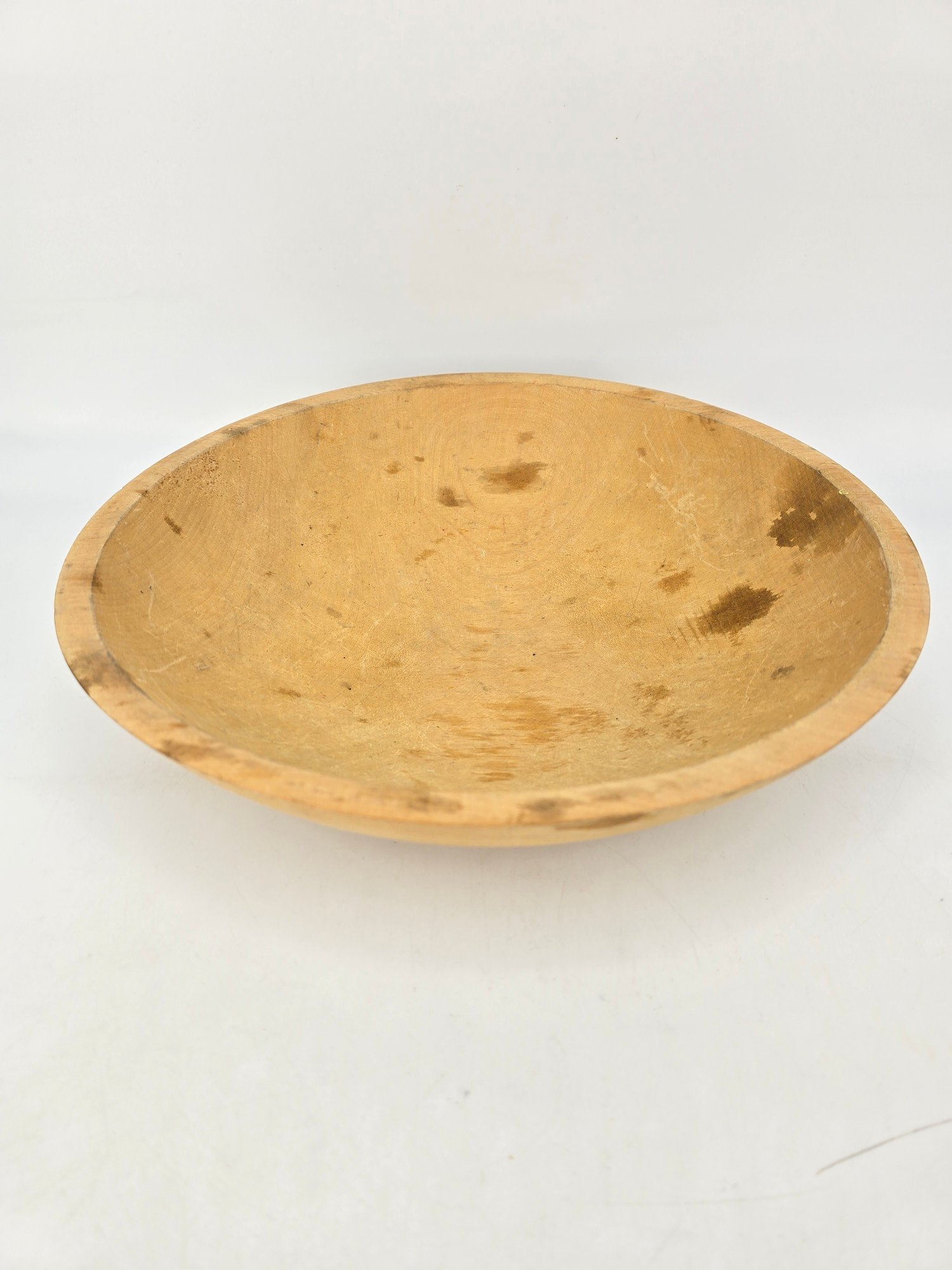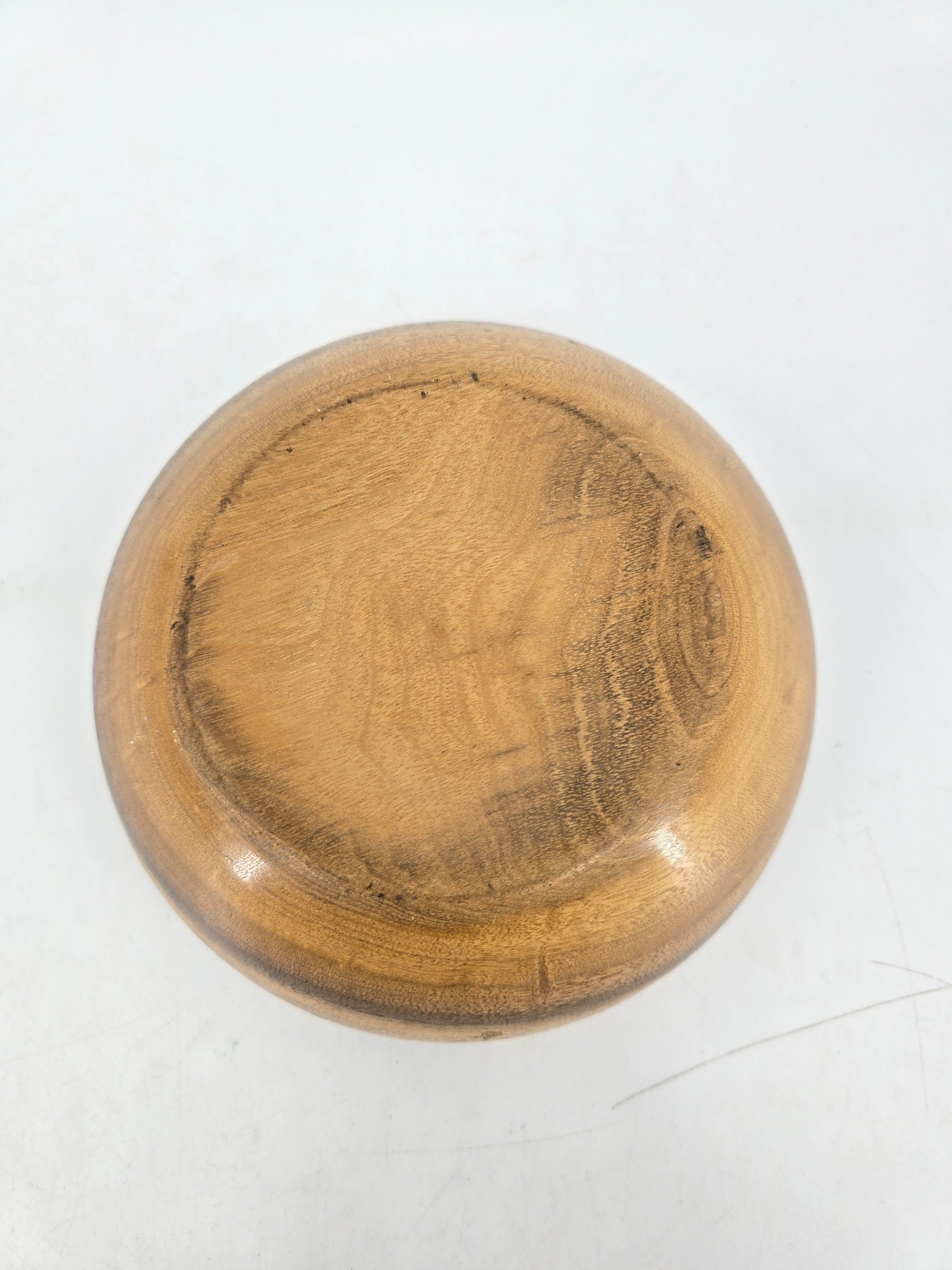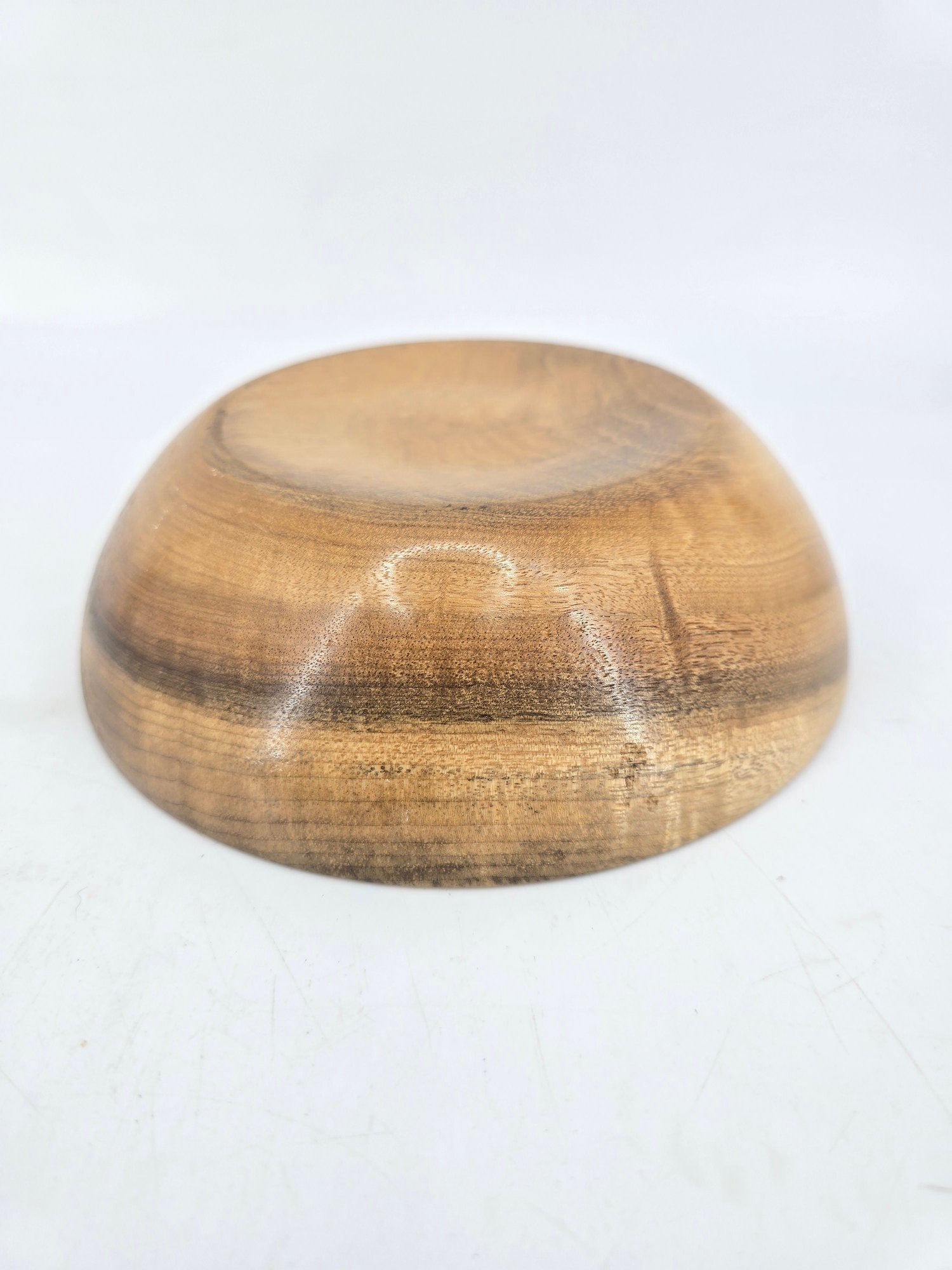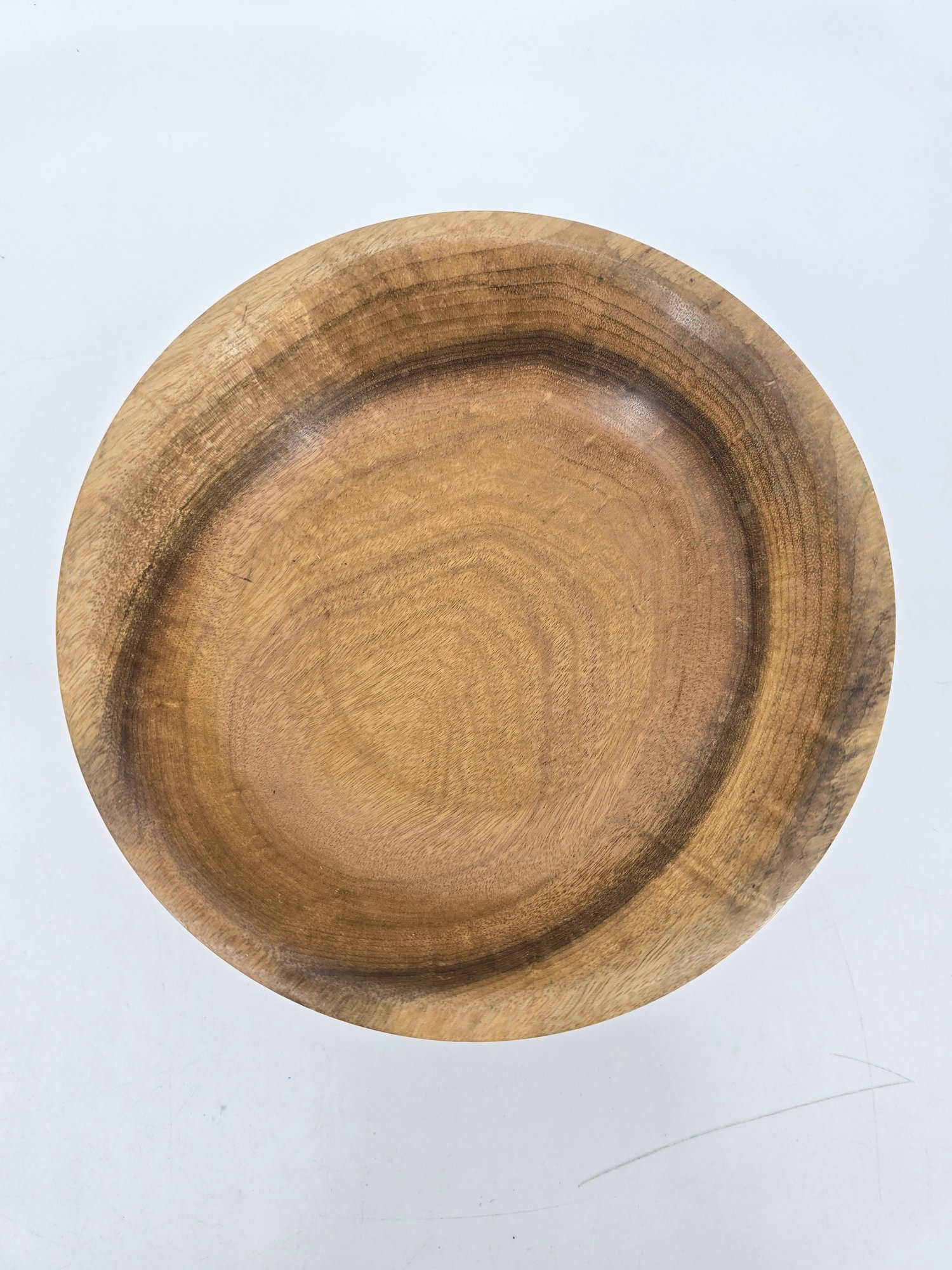 Wood dough bowl or Nut / Fruit Bowl and a hand-turned wooden bowl, likely made from acacia or walnut wood, used as a serving dish or decorative item. 11" and 6.75" See Photos To Note Condition.