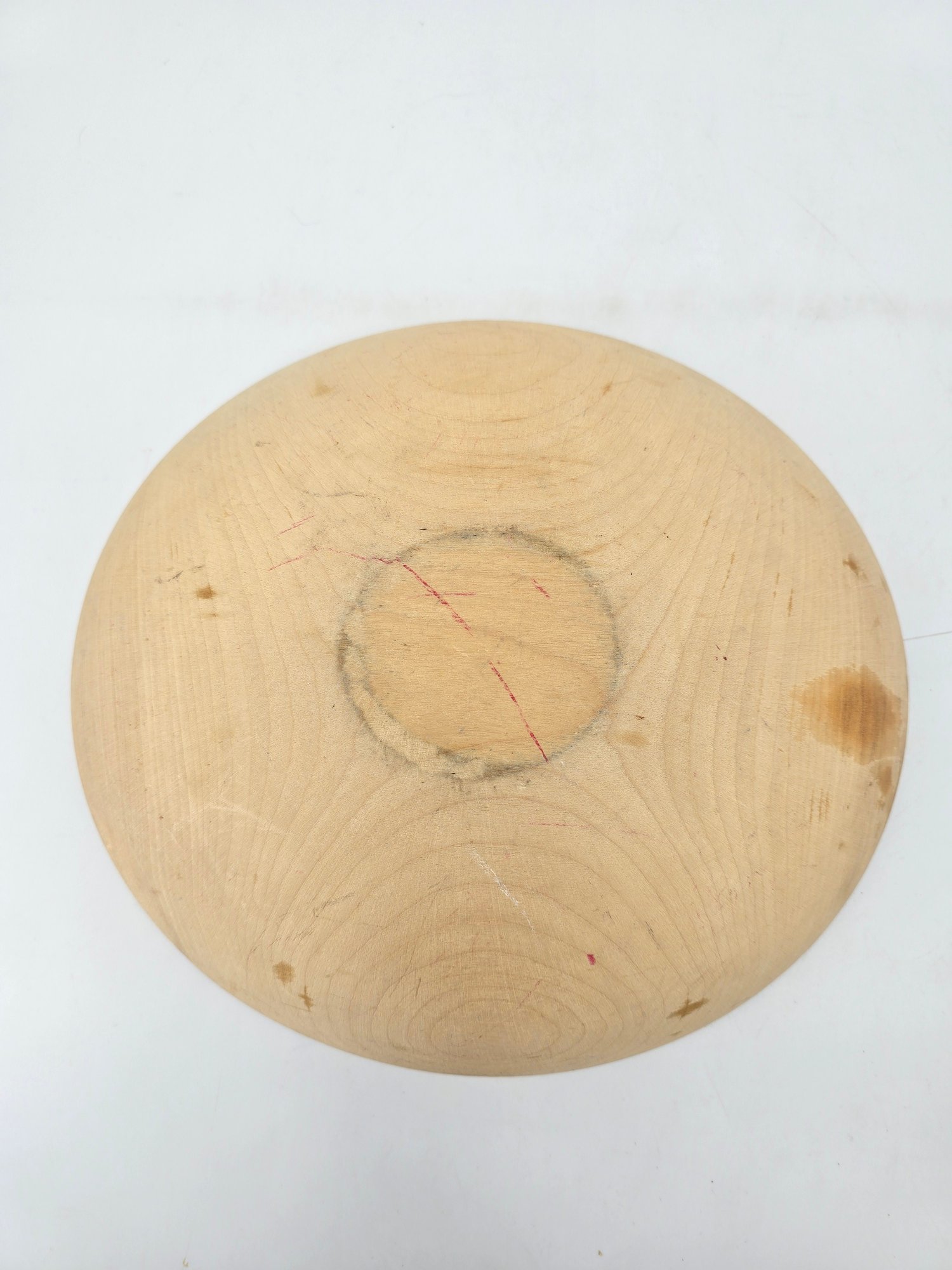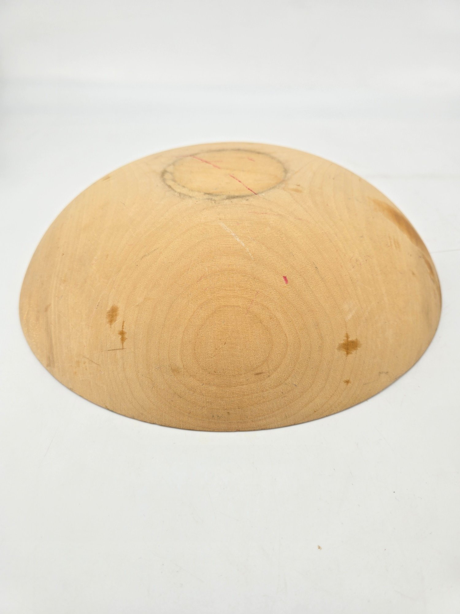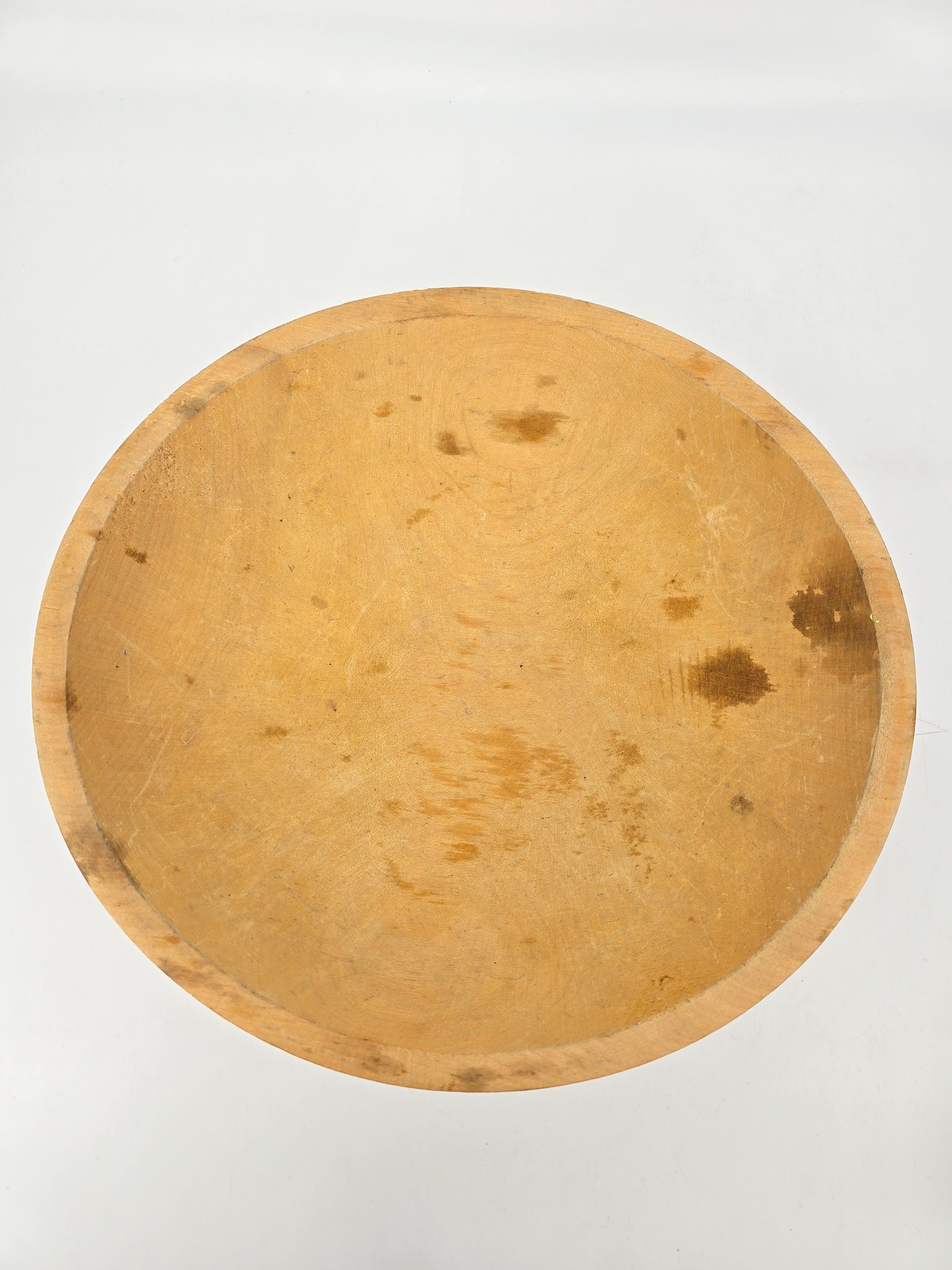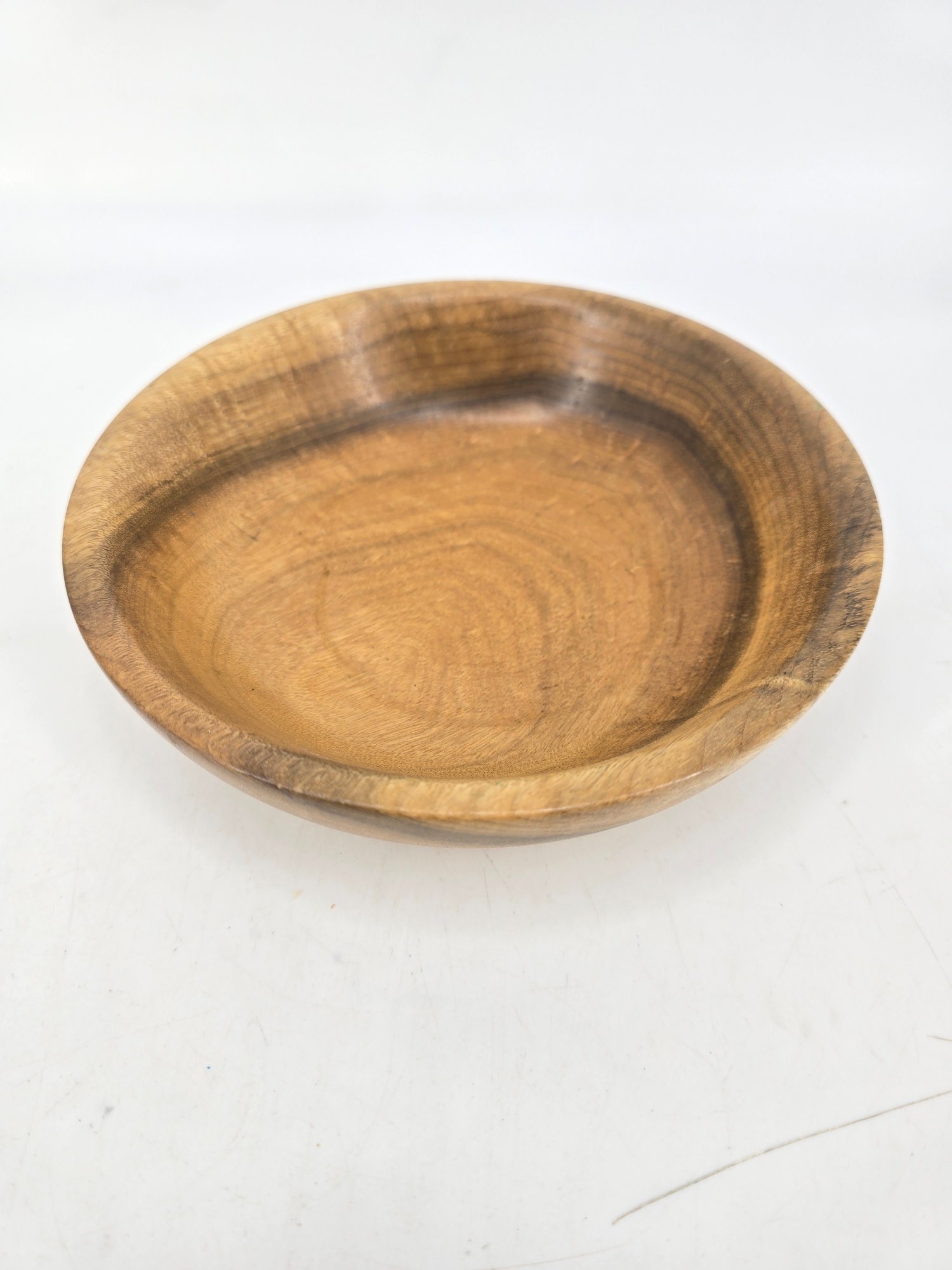 Wood dough bowl or Nut / Fruit Bowl and a hand-turned wooden bowl, likely made from acacia or walnut wood, used as a serving dish or decorative item. 11" and 6.75" See Photos To Note Condition.