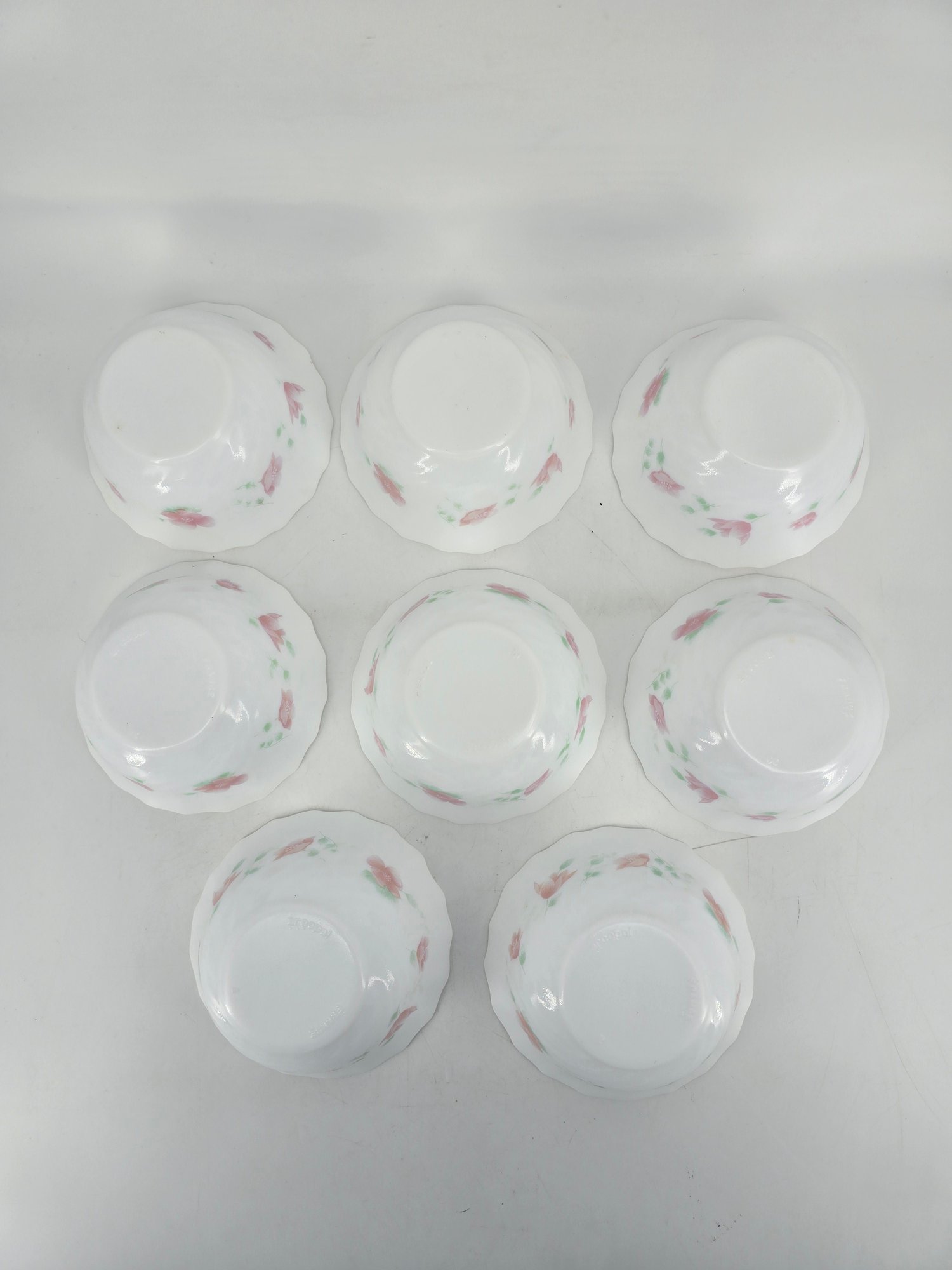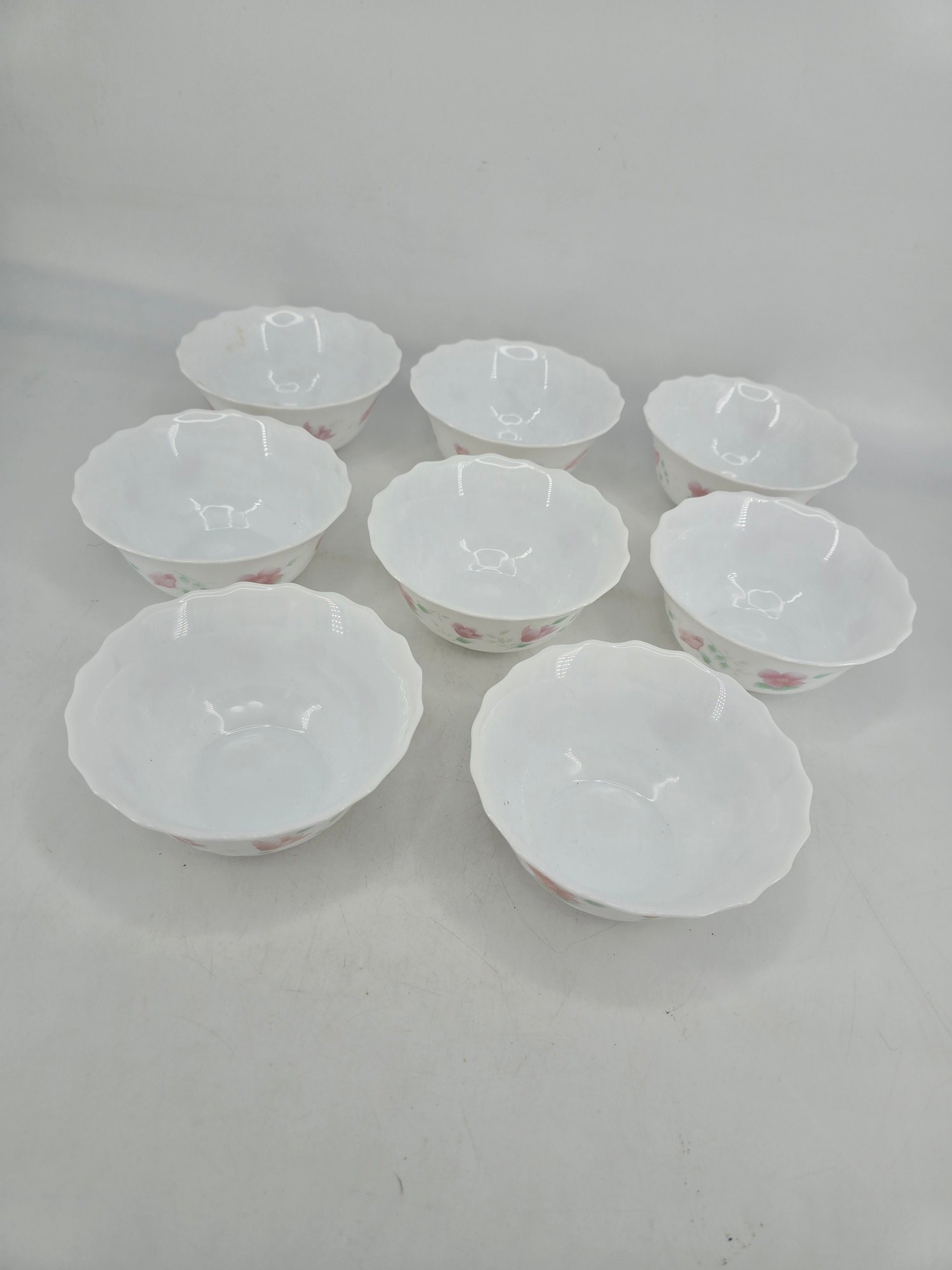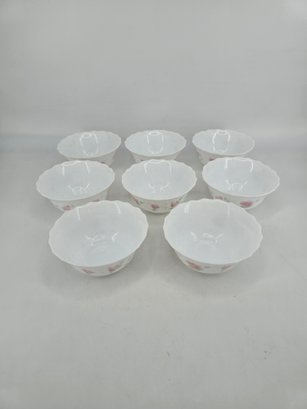 Set of Eight - Vintage - Arcopal - France - Bowls in the Florentine Pattern.