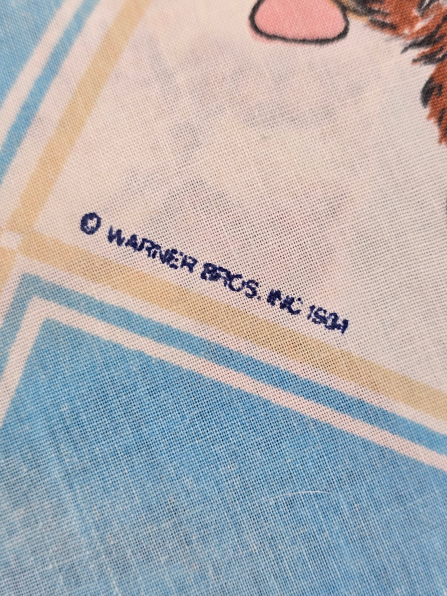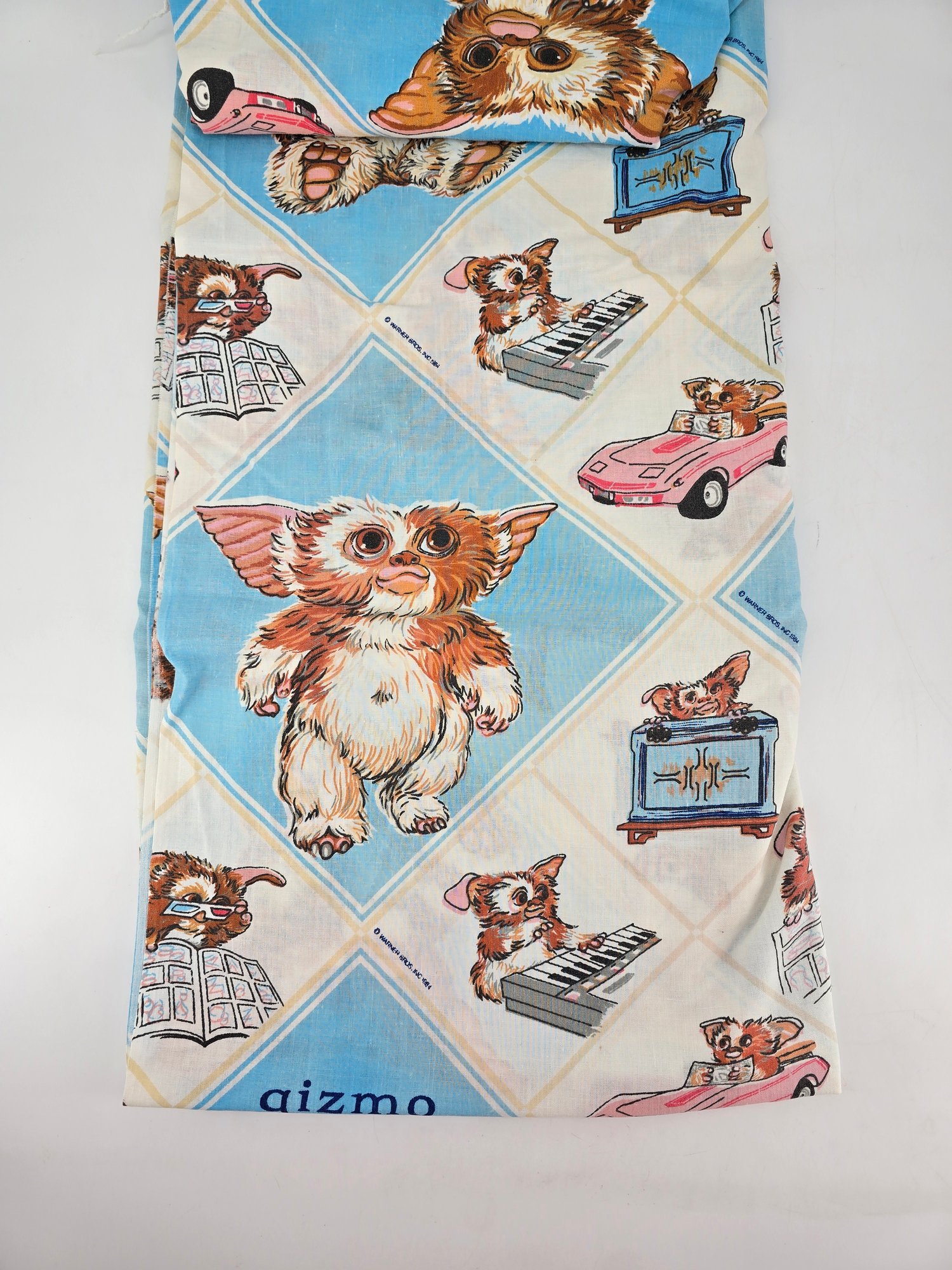 Vintage 1984 Warner Bros. Gremlins bed sheet featuring the character Gizmo.