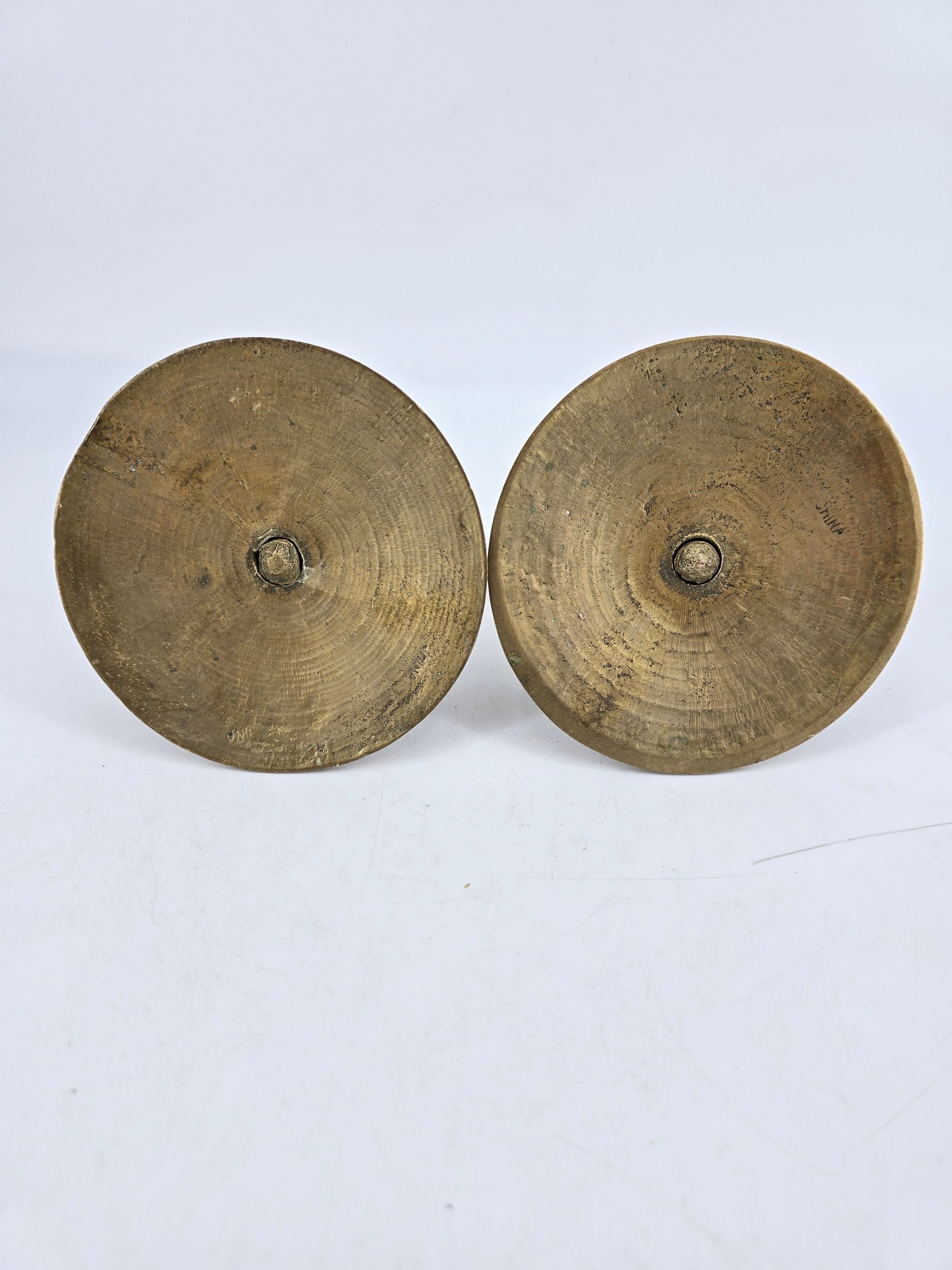 They are crafted from solid brass with a natural patina, suggesting age and durability.