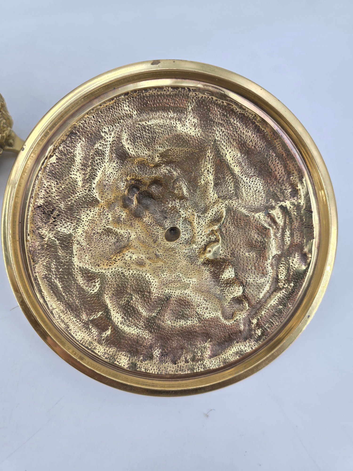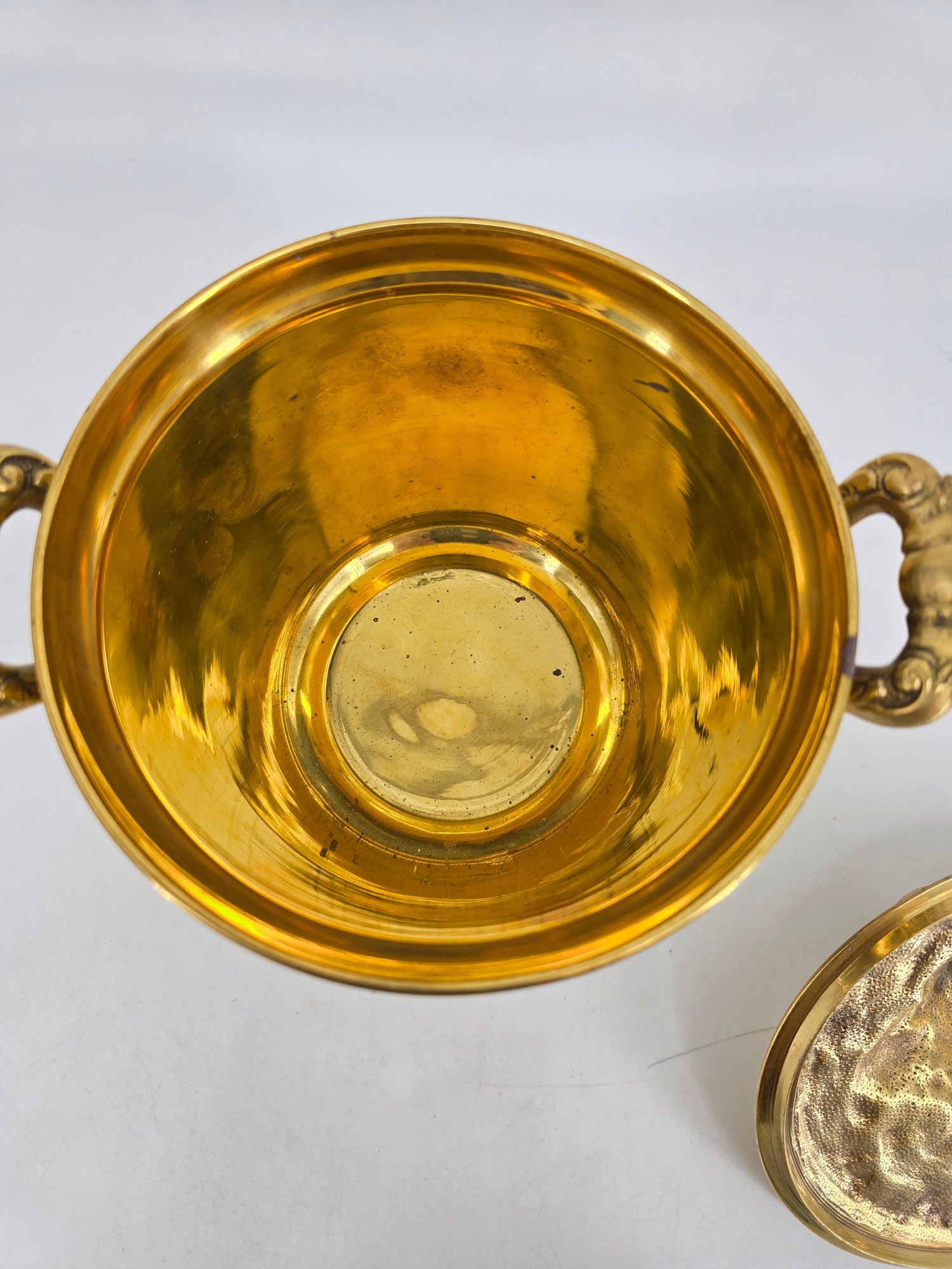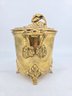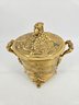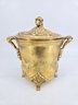 It features ornate, decorative handles and a lid with a matching design.