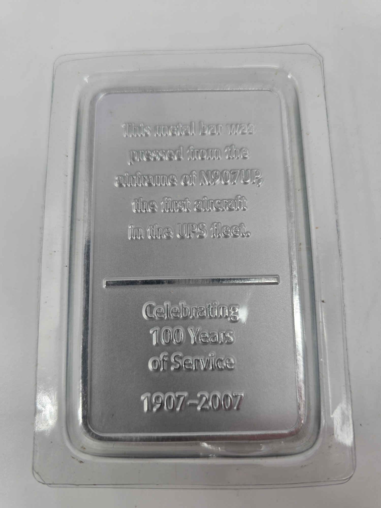 UPS Item: A commemorative celebrating 100 years of service. Which is also metal from the first aircraft in the UPS fleet.