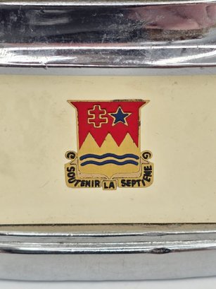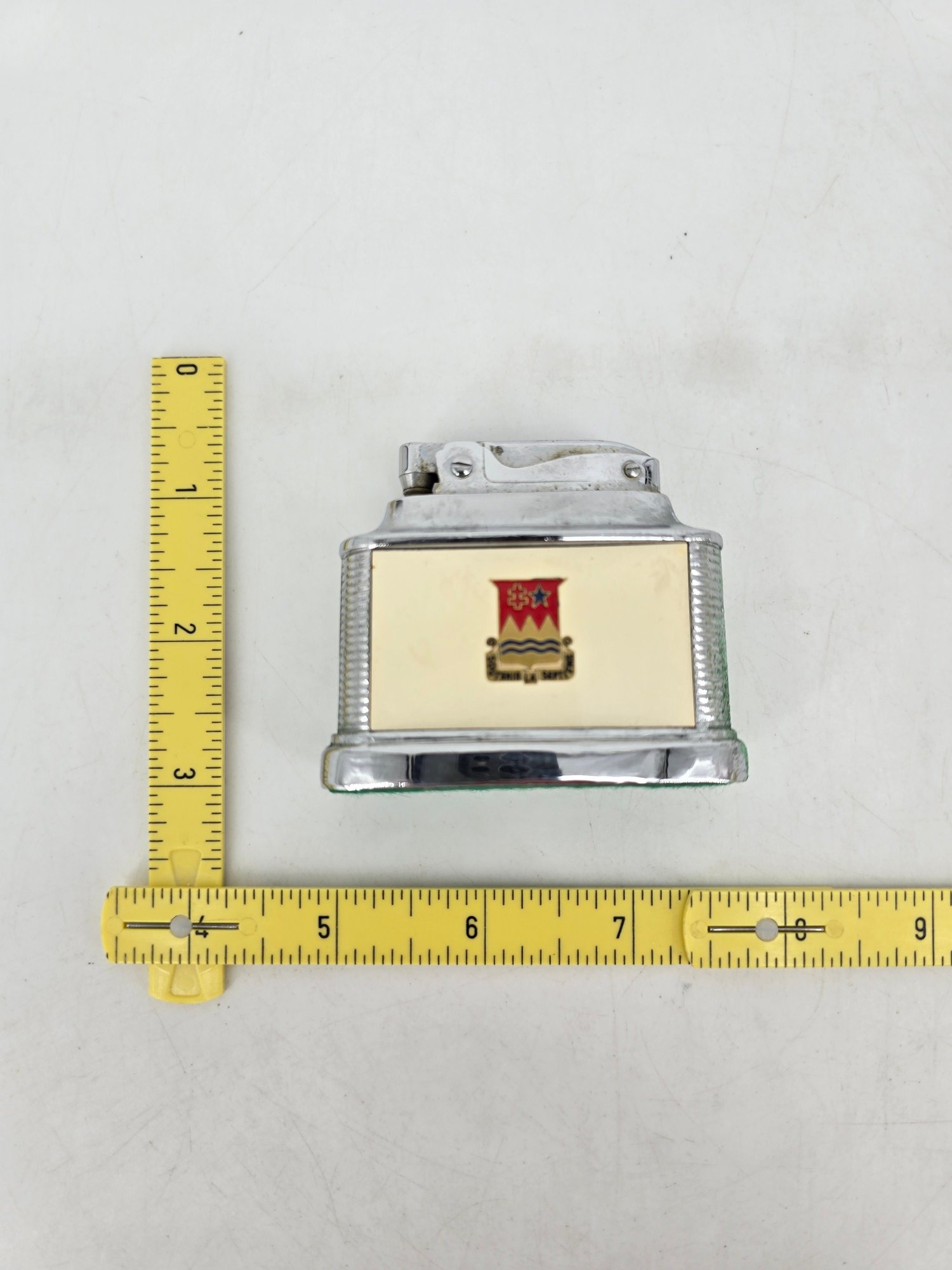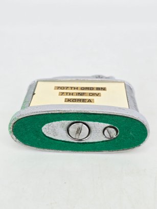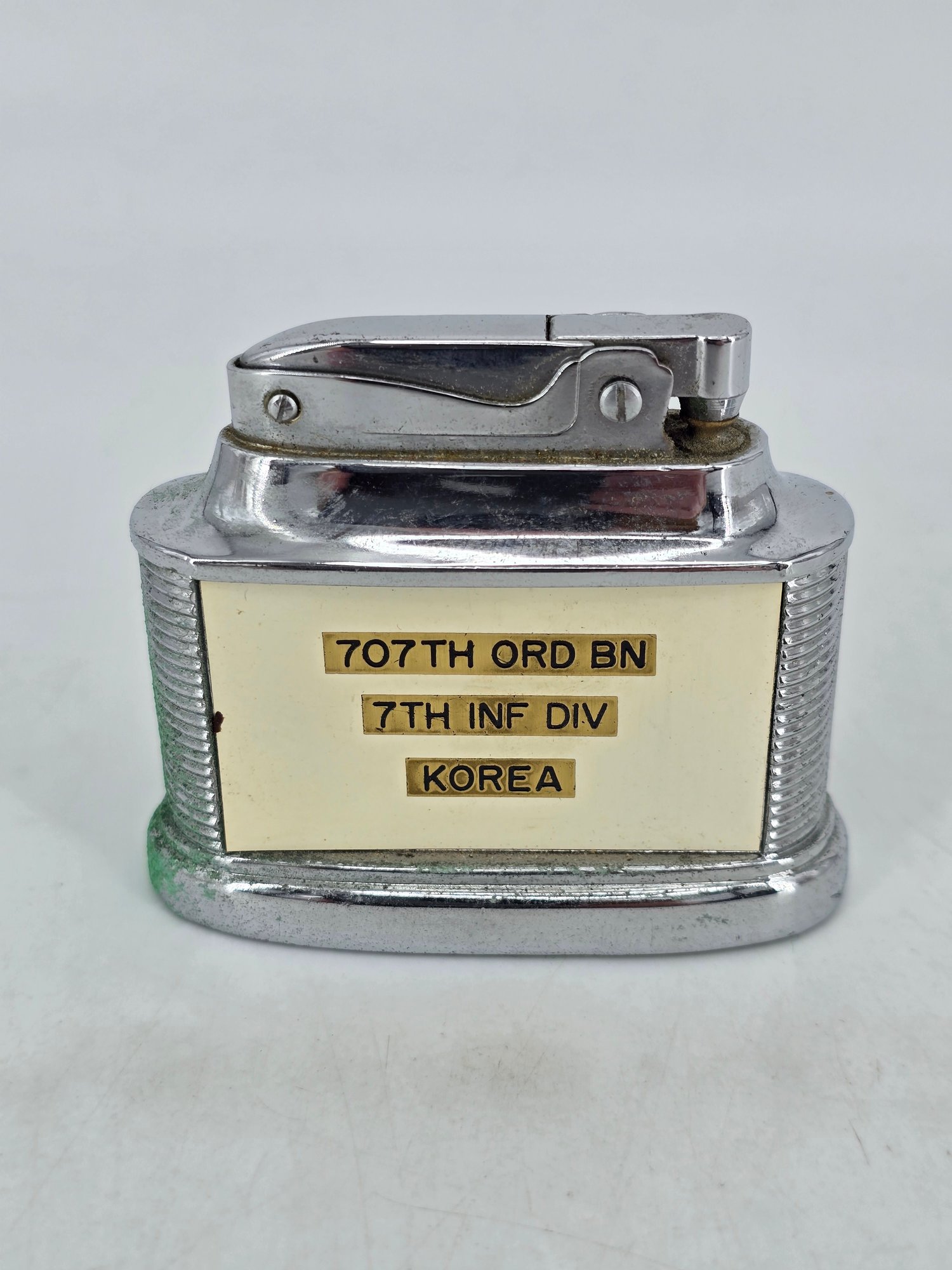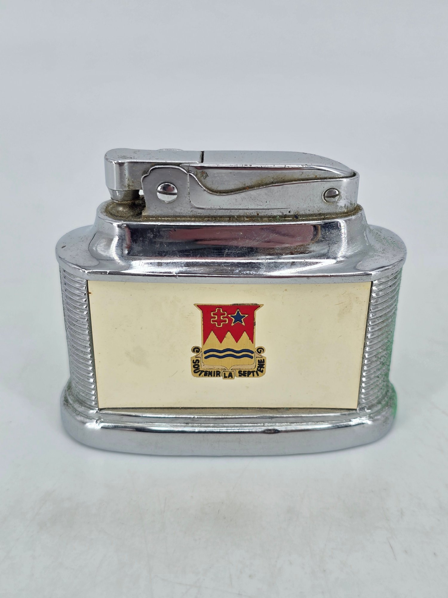 Vintage military-themed table lighter, likely a Ronson model from the 1950s or 1960s.
