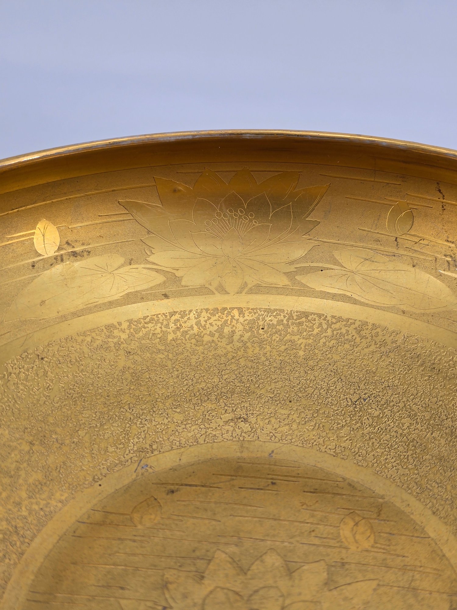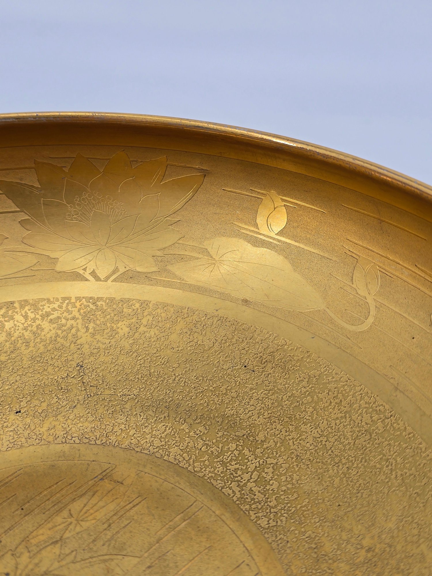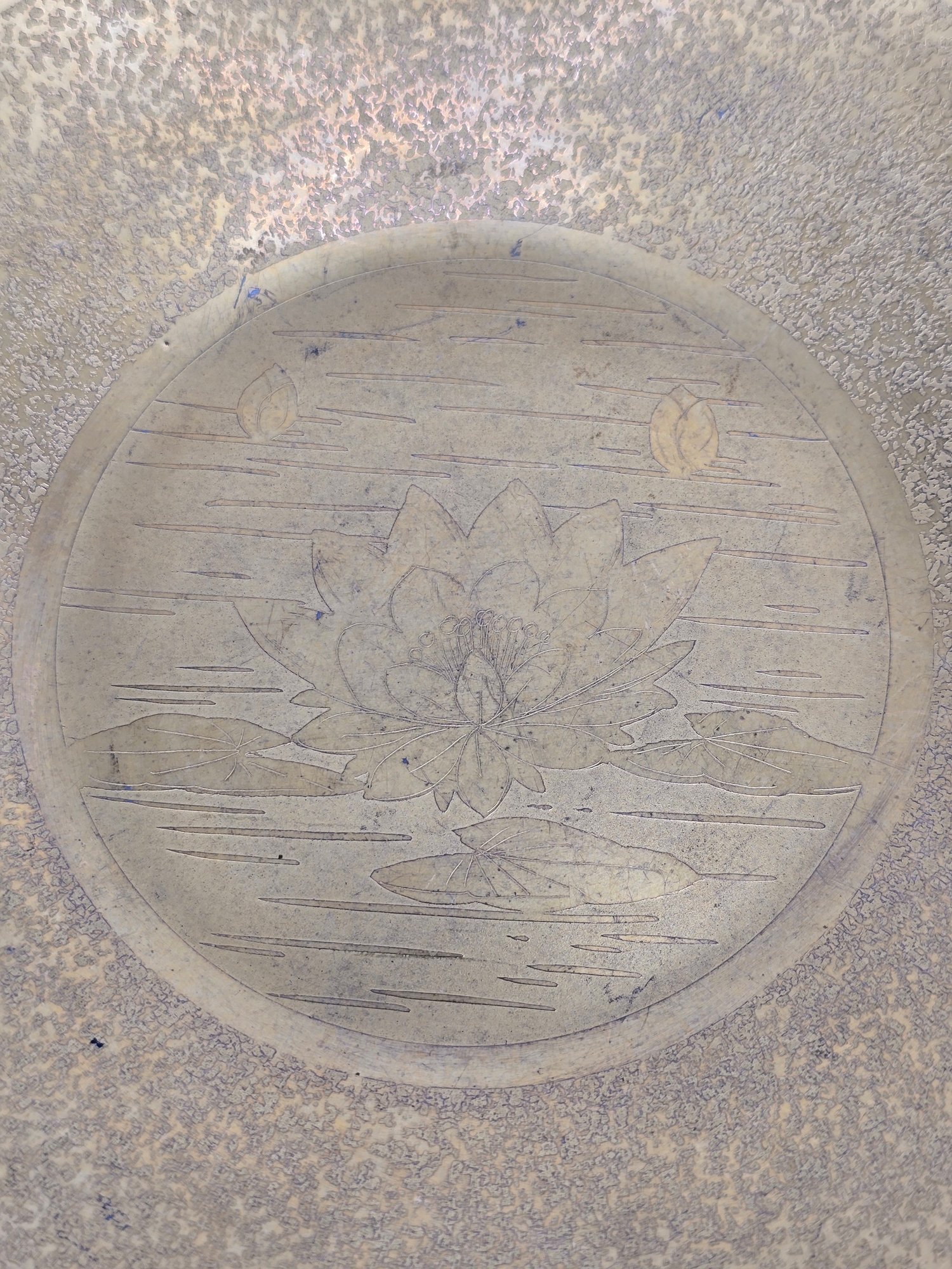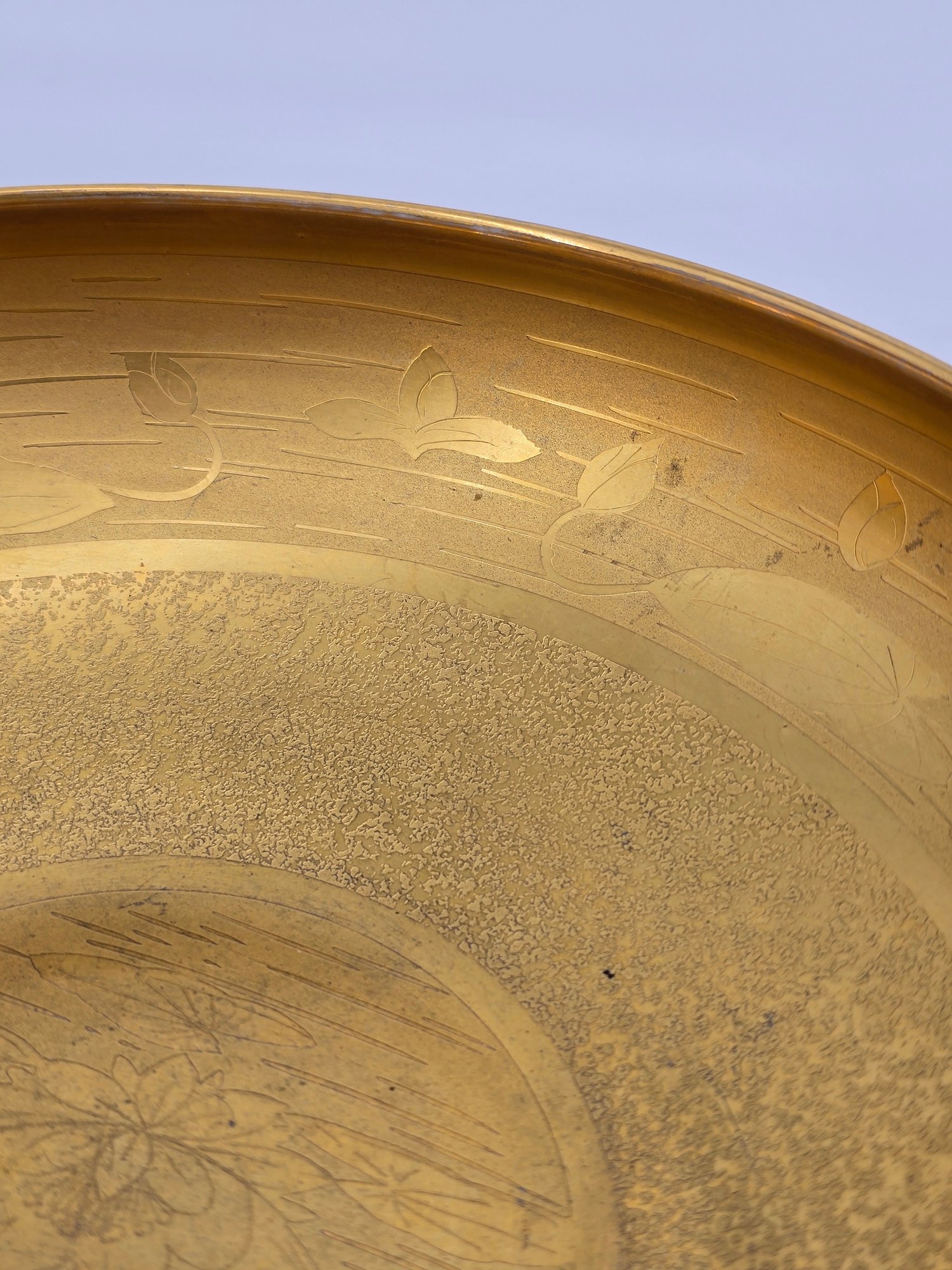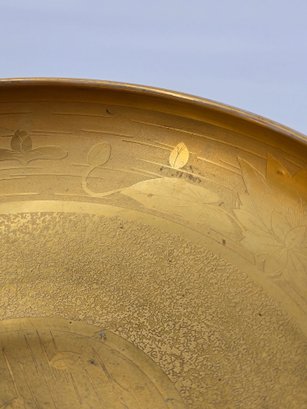 It features intricate engraved plant patterns around the body. Lotus / Water Lilly
