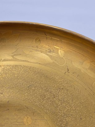 This is an old Persian brass bowl, possibly used for the "Tihur Kala" bathing ceremony.