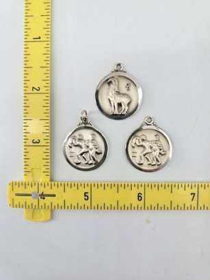 They are small, circular, coin-style pendants, often referred to as talismans or amulets. Silver has been tested and weighs 17.65g TW