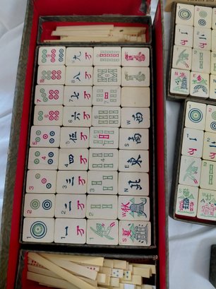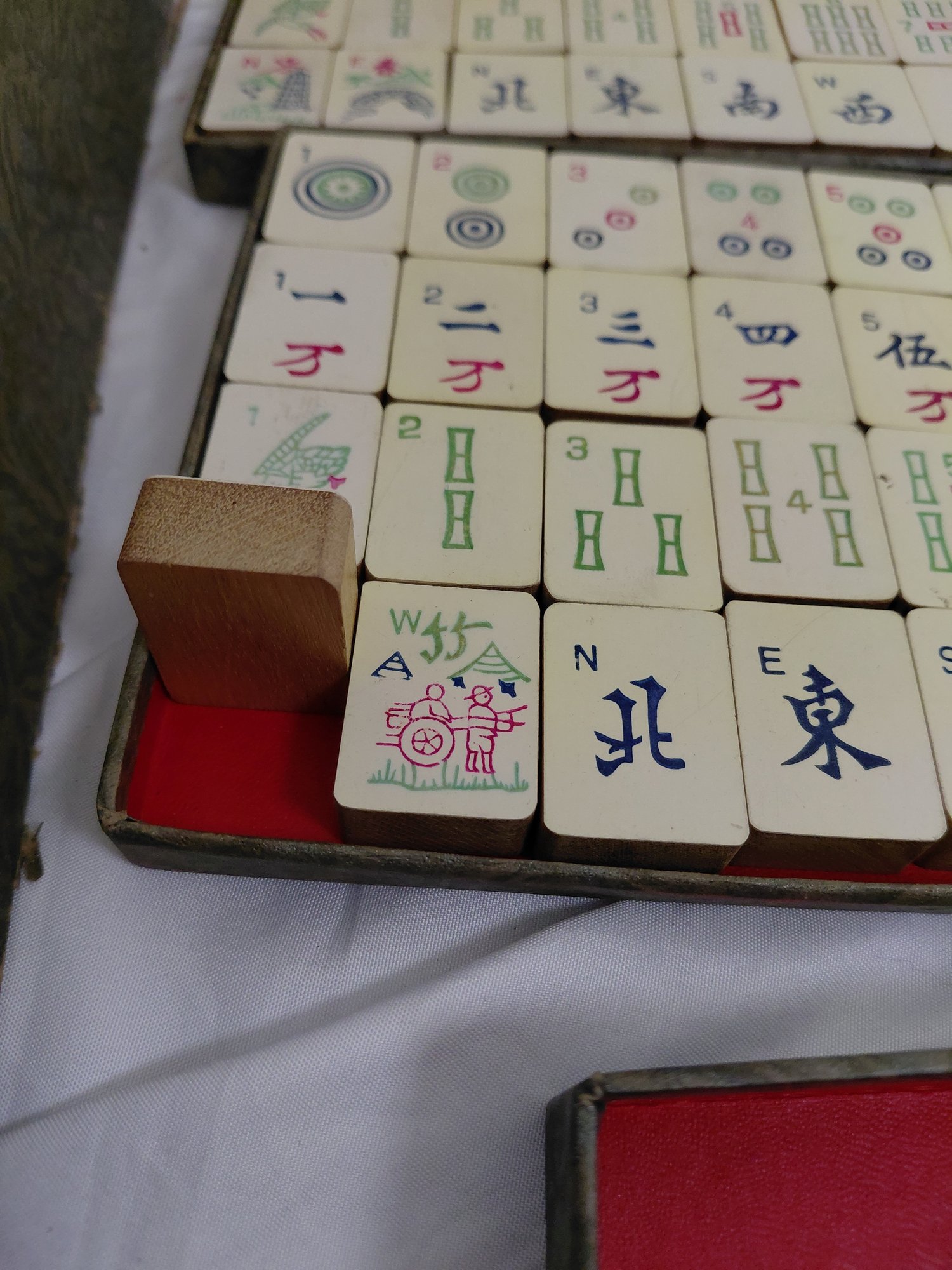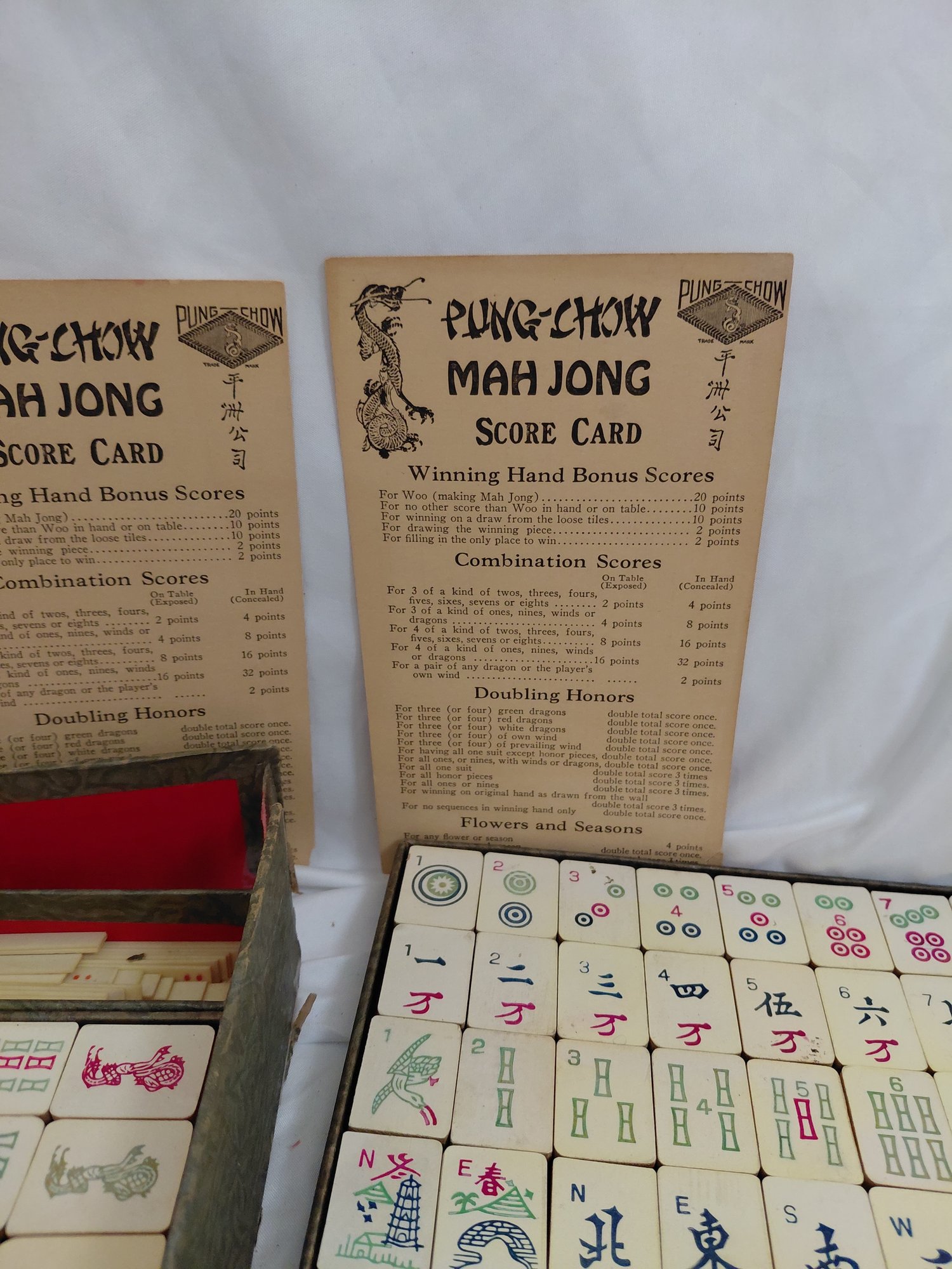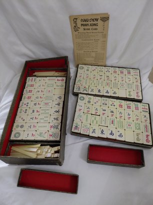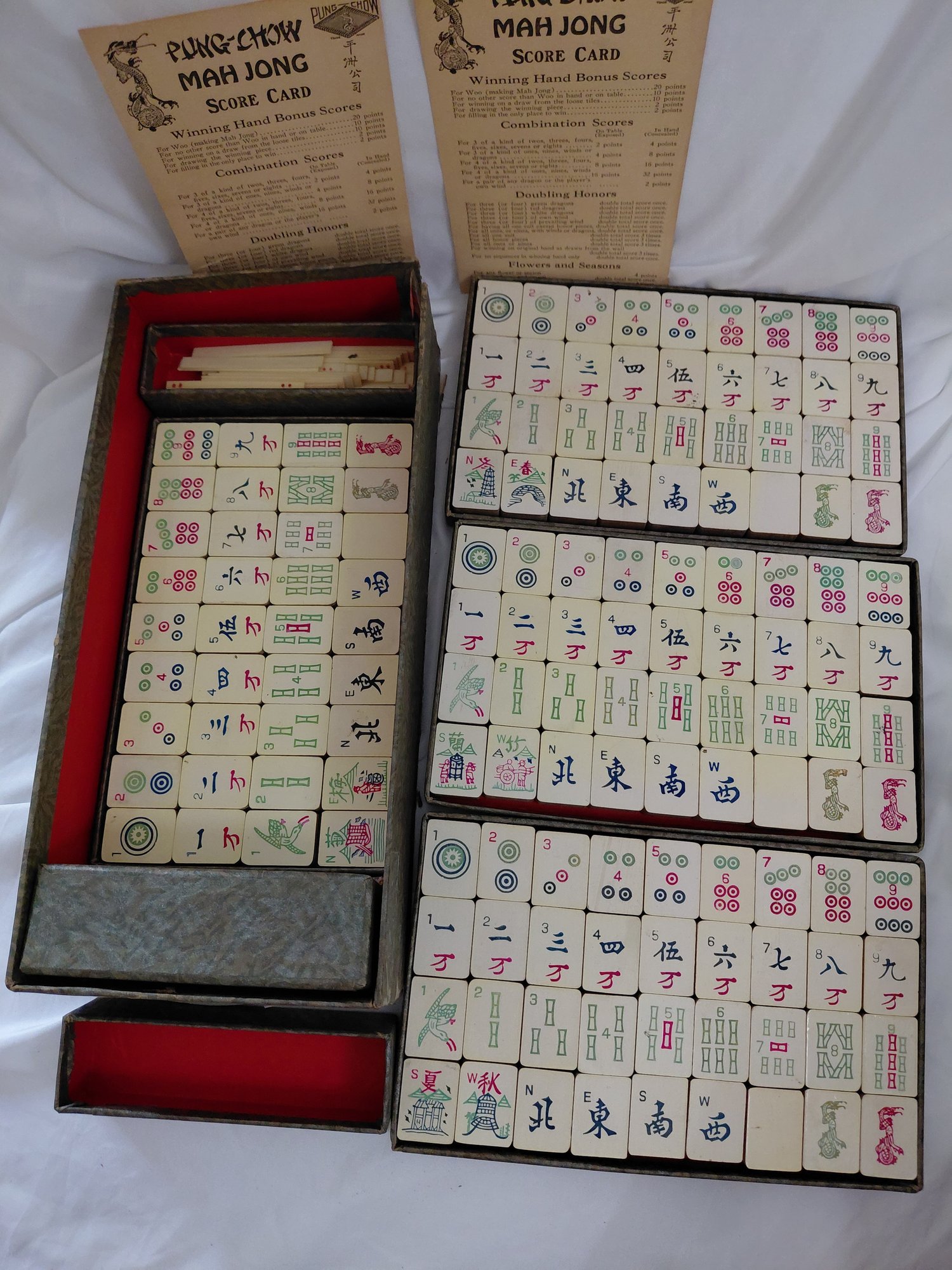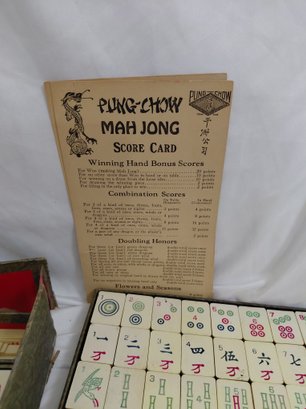 Vintage Pung-Chow Mah Jong Set From The 1920s Includes Hand-painted Tiles, And A Score Card