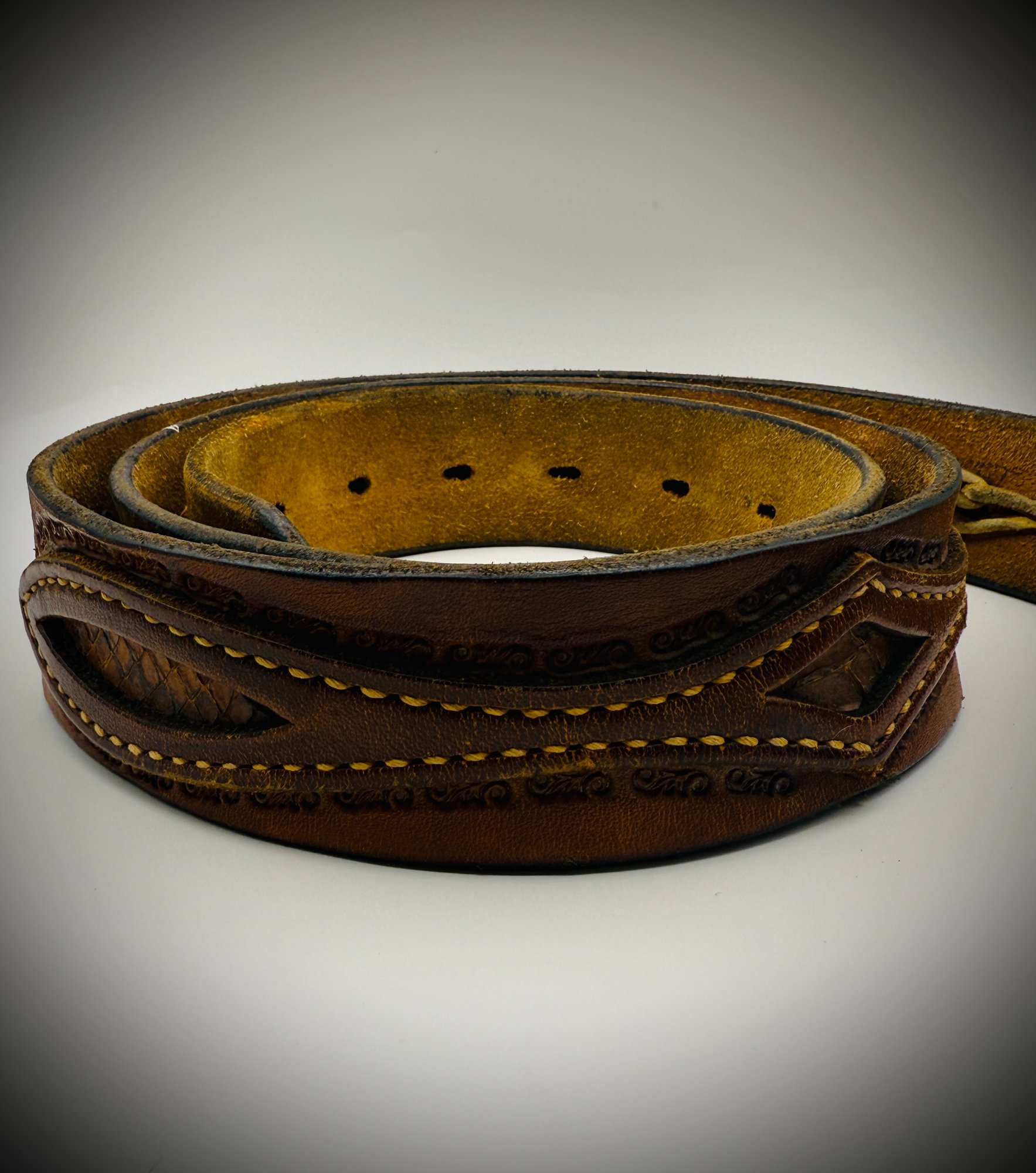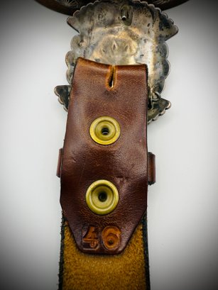 Leather: Rocky Mountain Leather Shop, Lakewood CO; size “46” stamped; double-snap buckle attachment