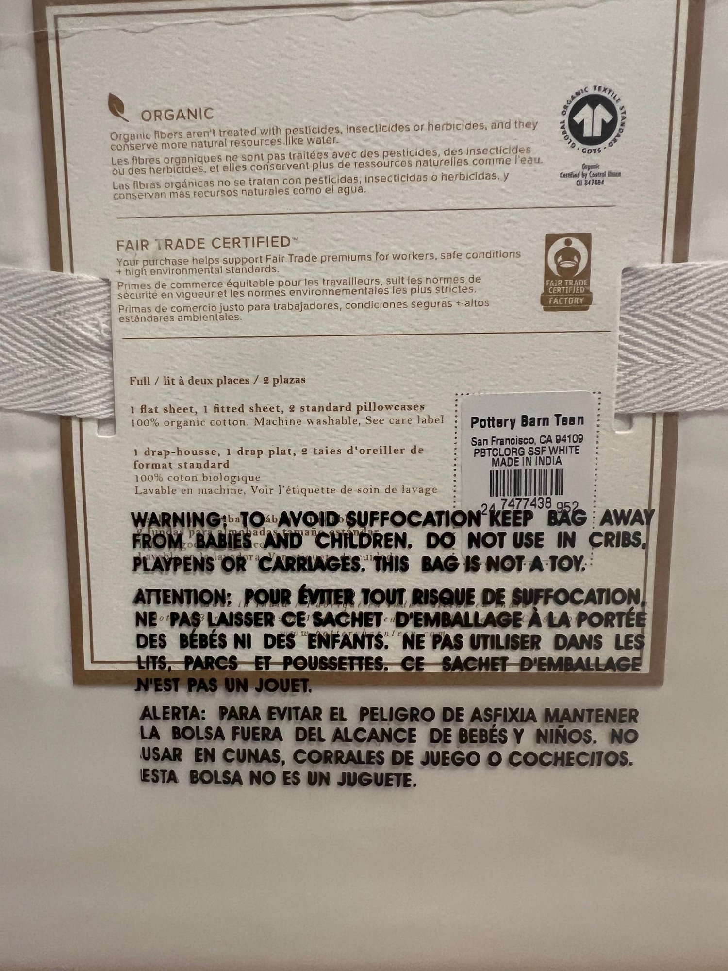 Includes flat sheet, fitted sheet, 2 pillow cases