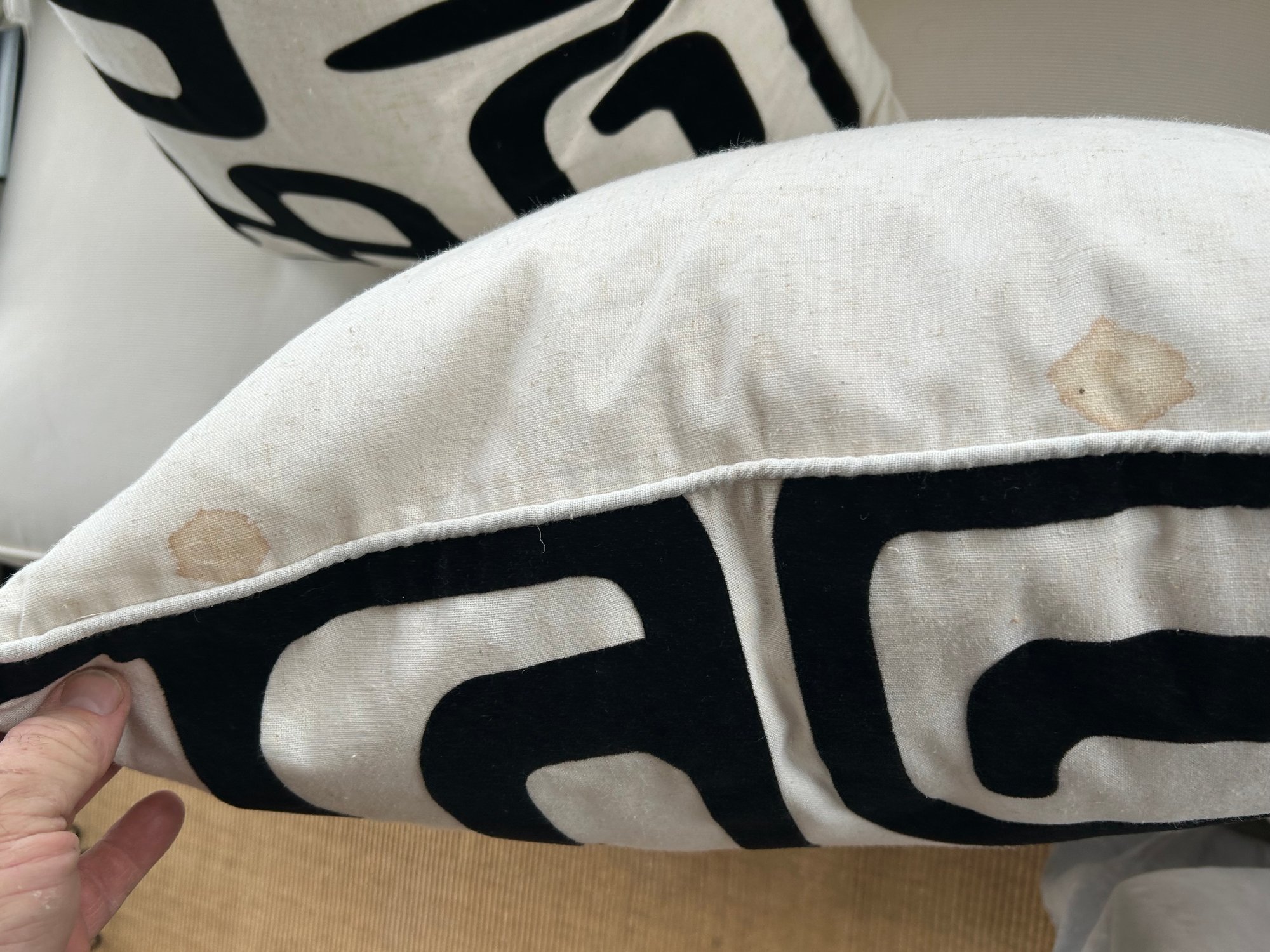 Two pillows have small stains (pictured)